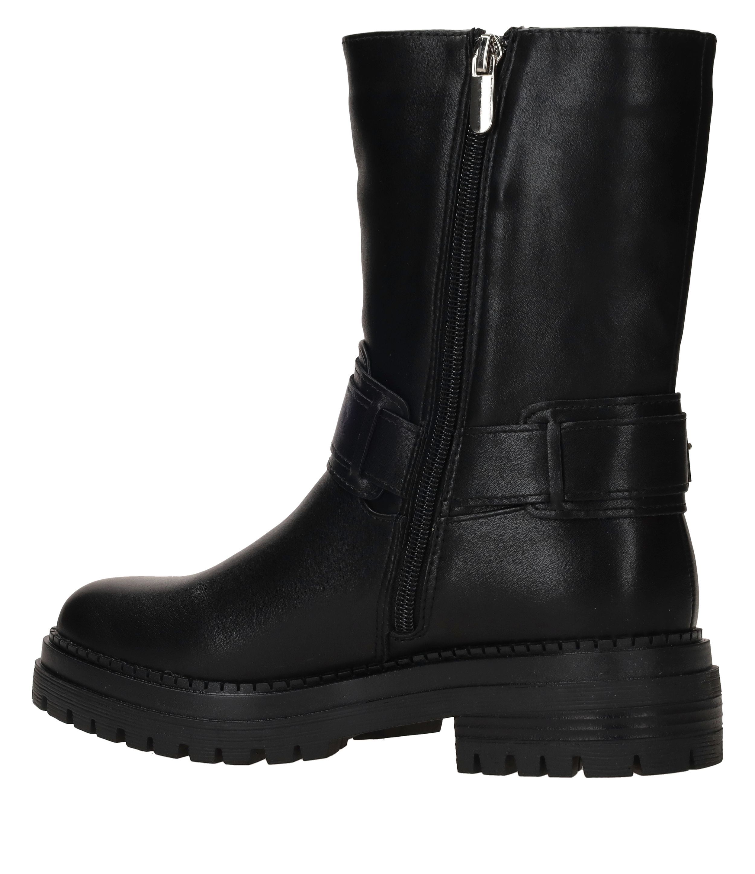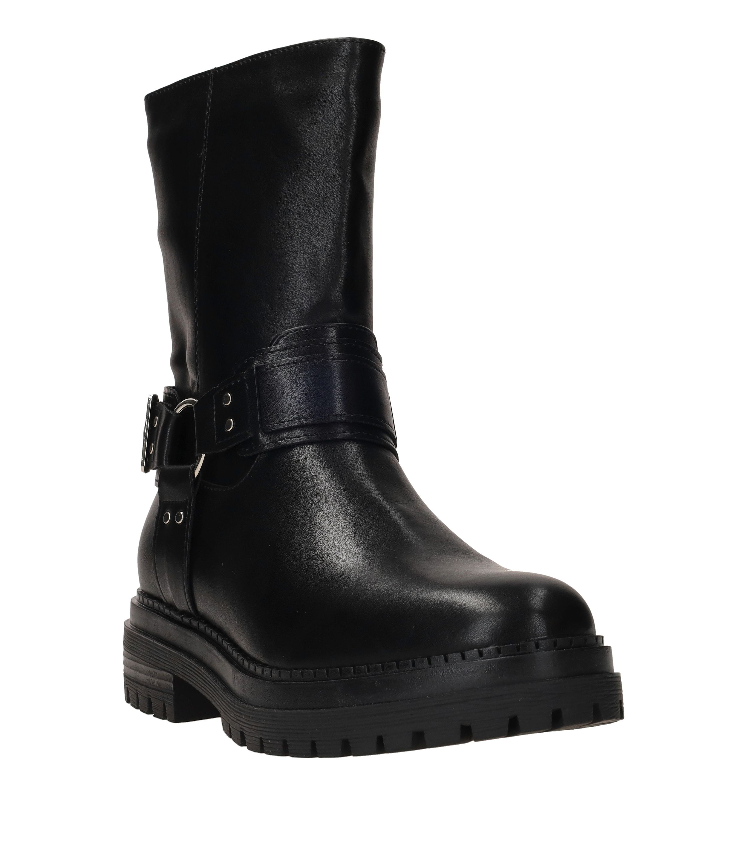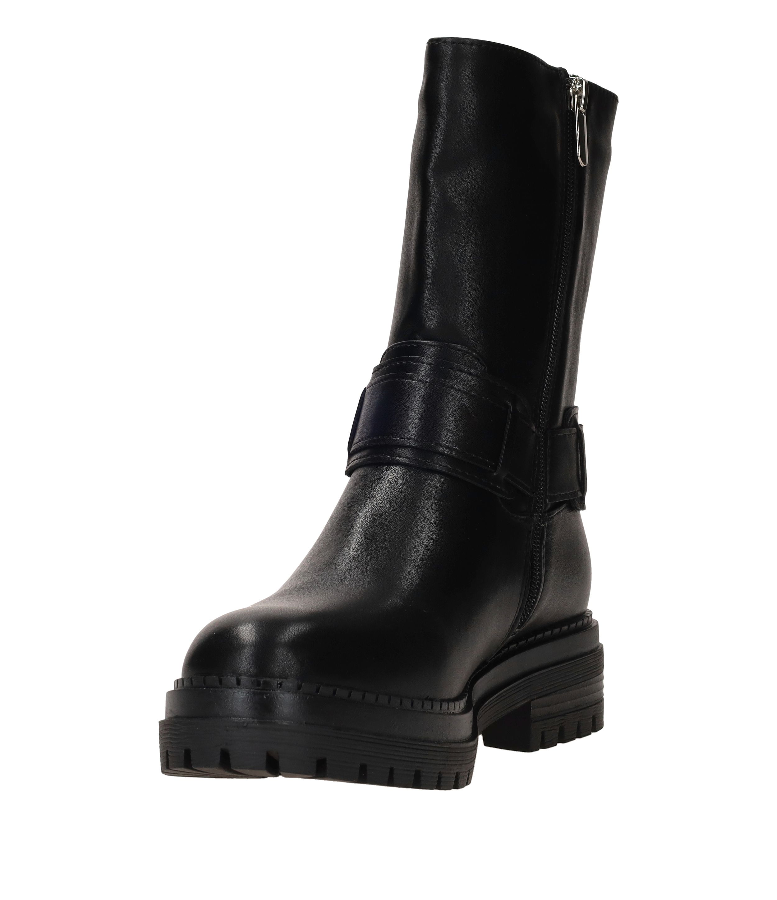 - Deze bikerboot is gemaakt van kunstleer.