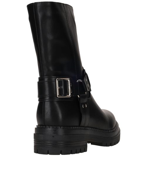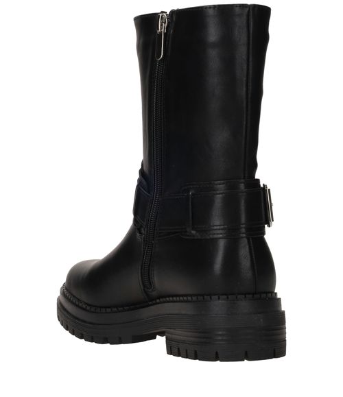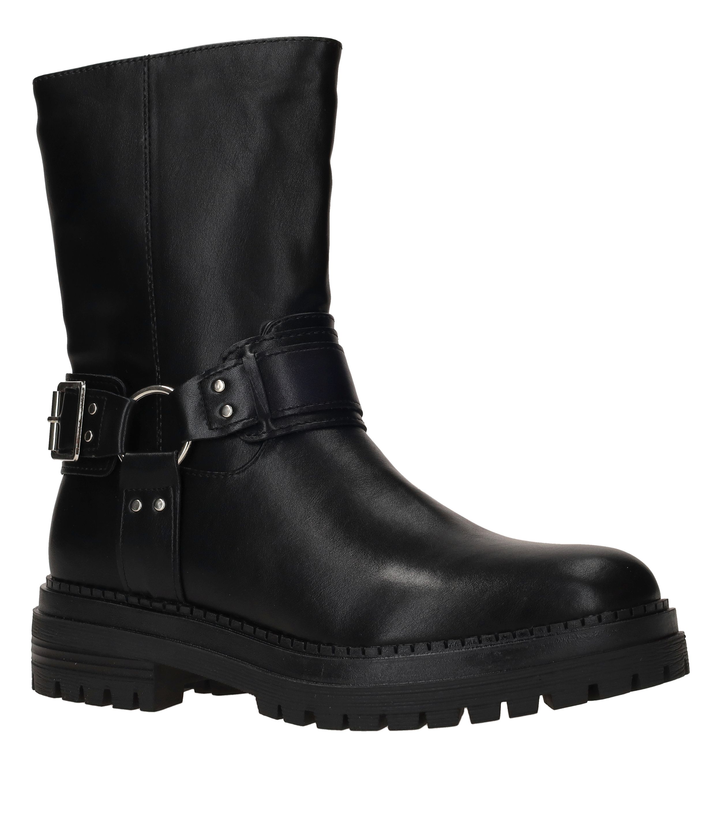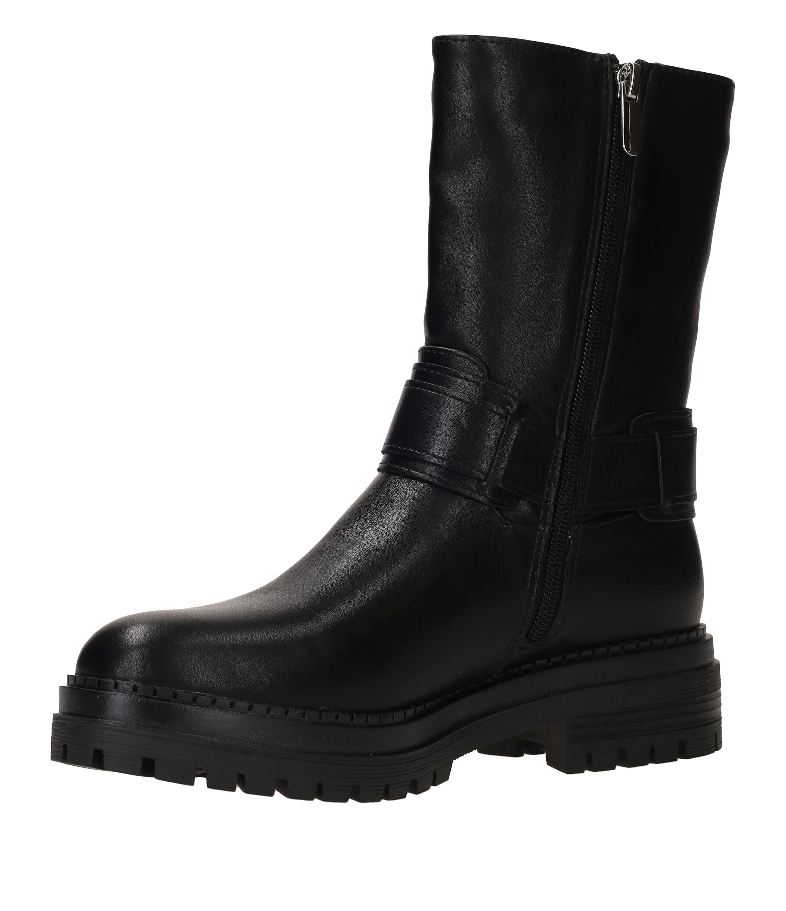 - Deze bikerboot is gemaakt van kunstleer.