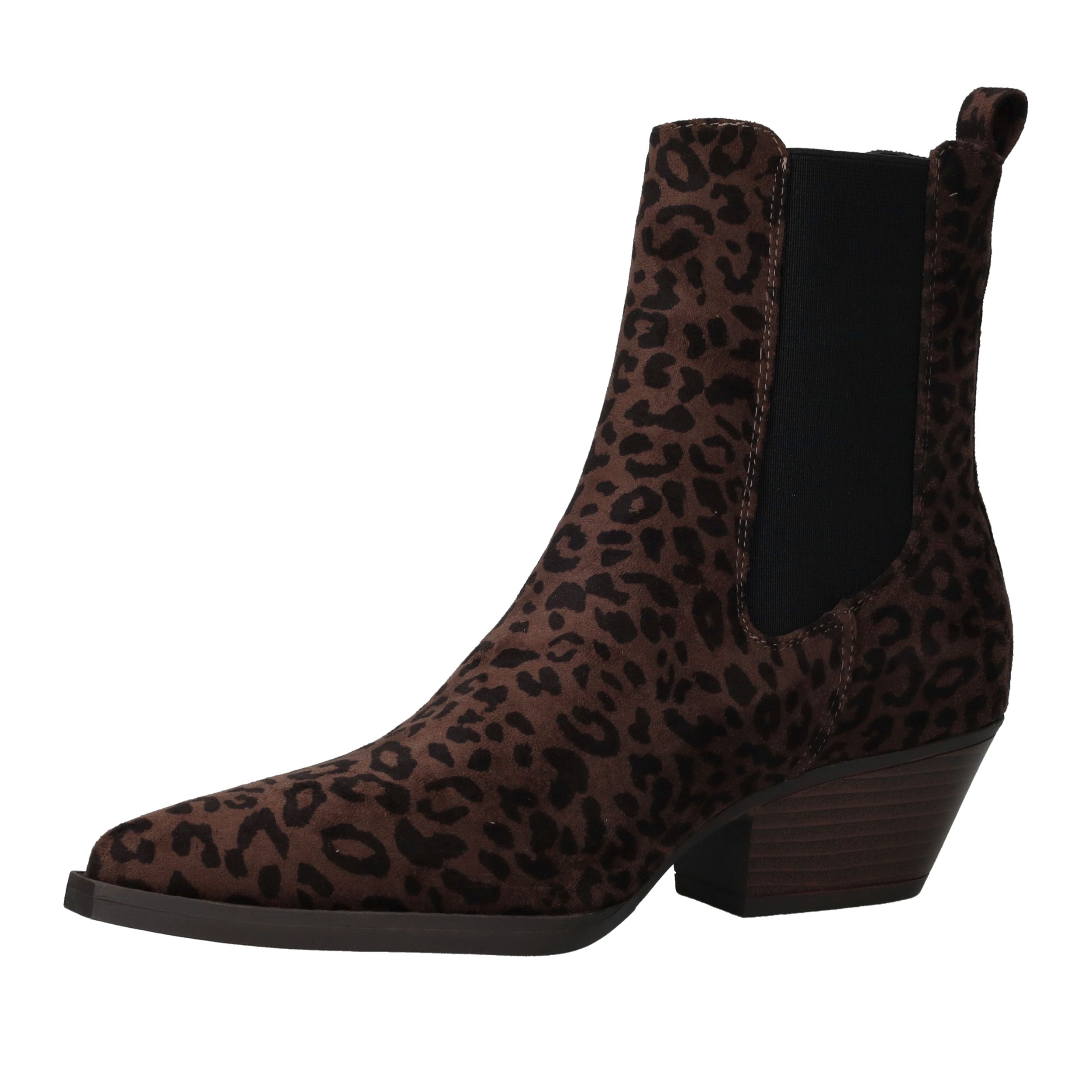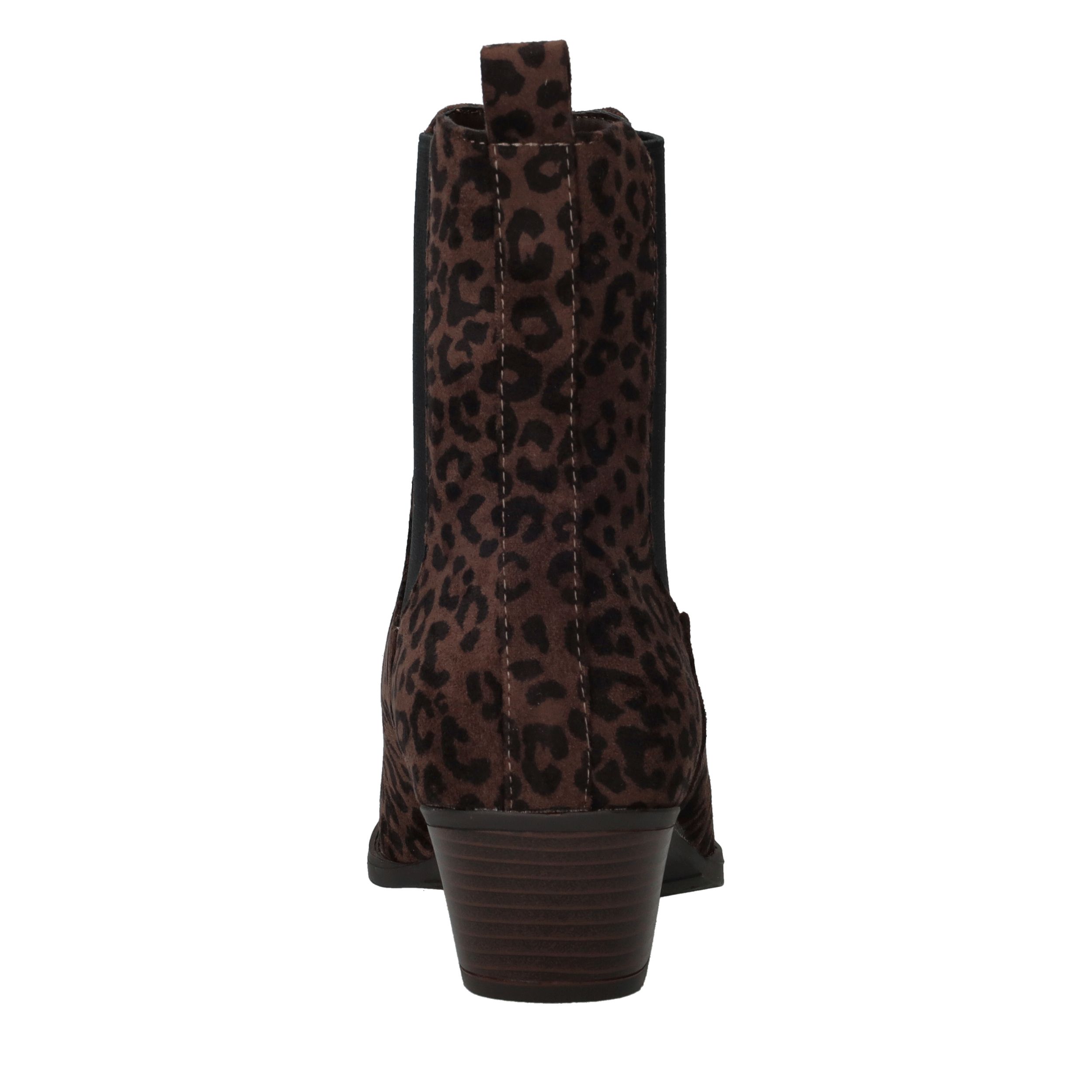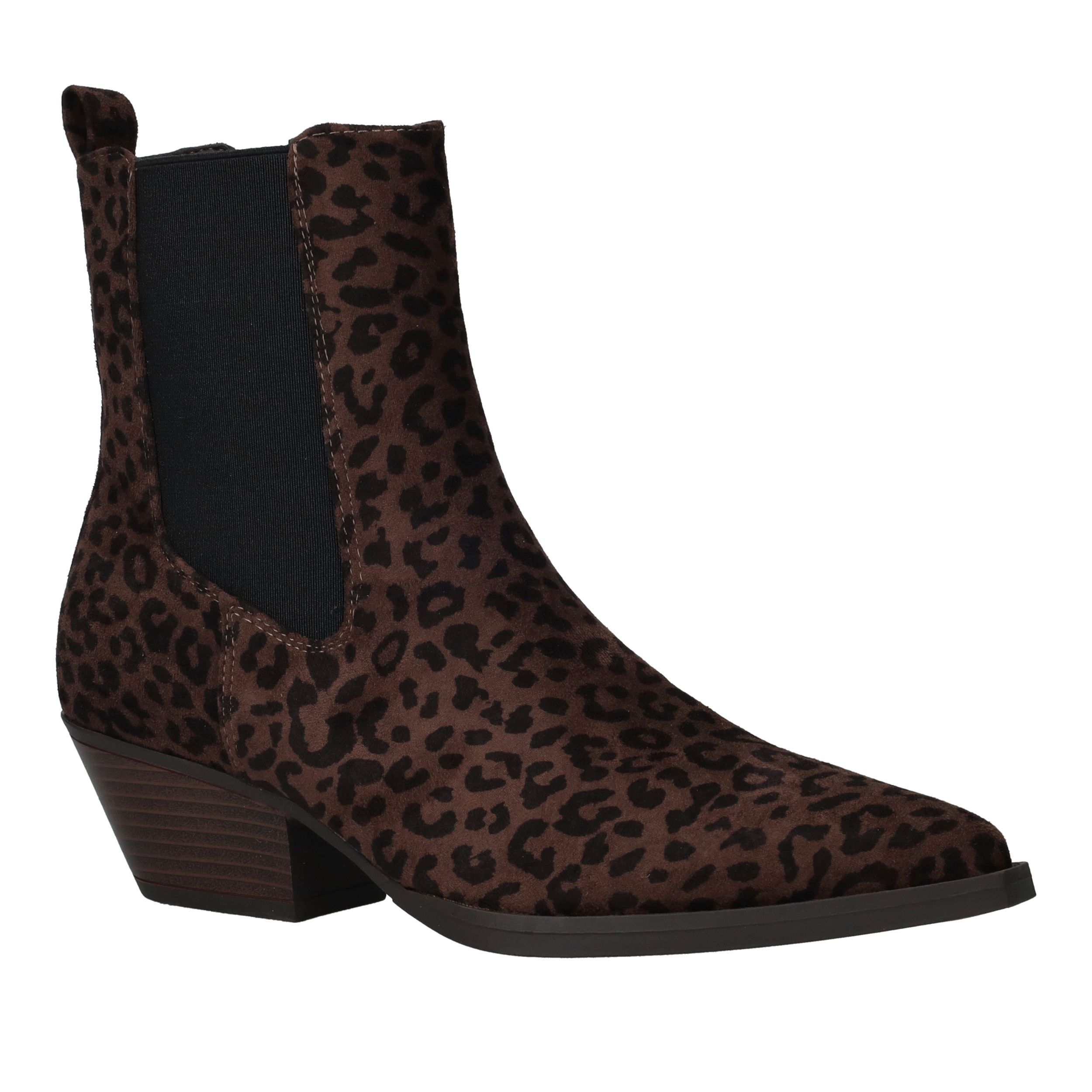 - Belangrijke kenmerken zijn de panterprint, de stevige blokhak en de modieuze puntige neus.
