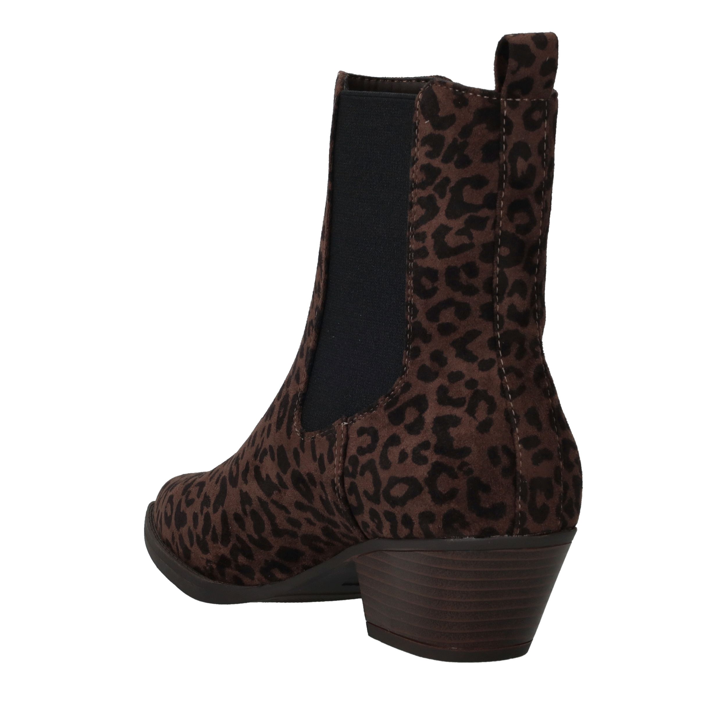 De POSH by Poelman enkellaarsjes zijn de perfecte keuze voor dames die hun outfit een trendy en speelse touch willen geven. Deze beige dames laarzen zijn uitgevoerd in kunstsuède en afgewerkt met een opvallende panterprint. De stevige blokhak en spitse neus zorgen voor een stoere en toch vrouwelijke uitstraling, ideaal voor zowel casual als feestelijke looks.