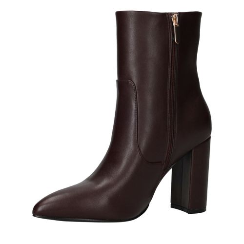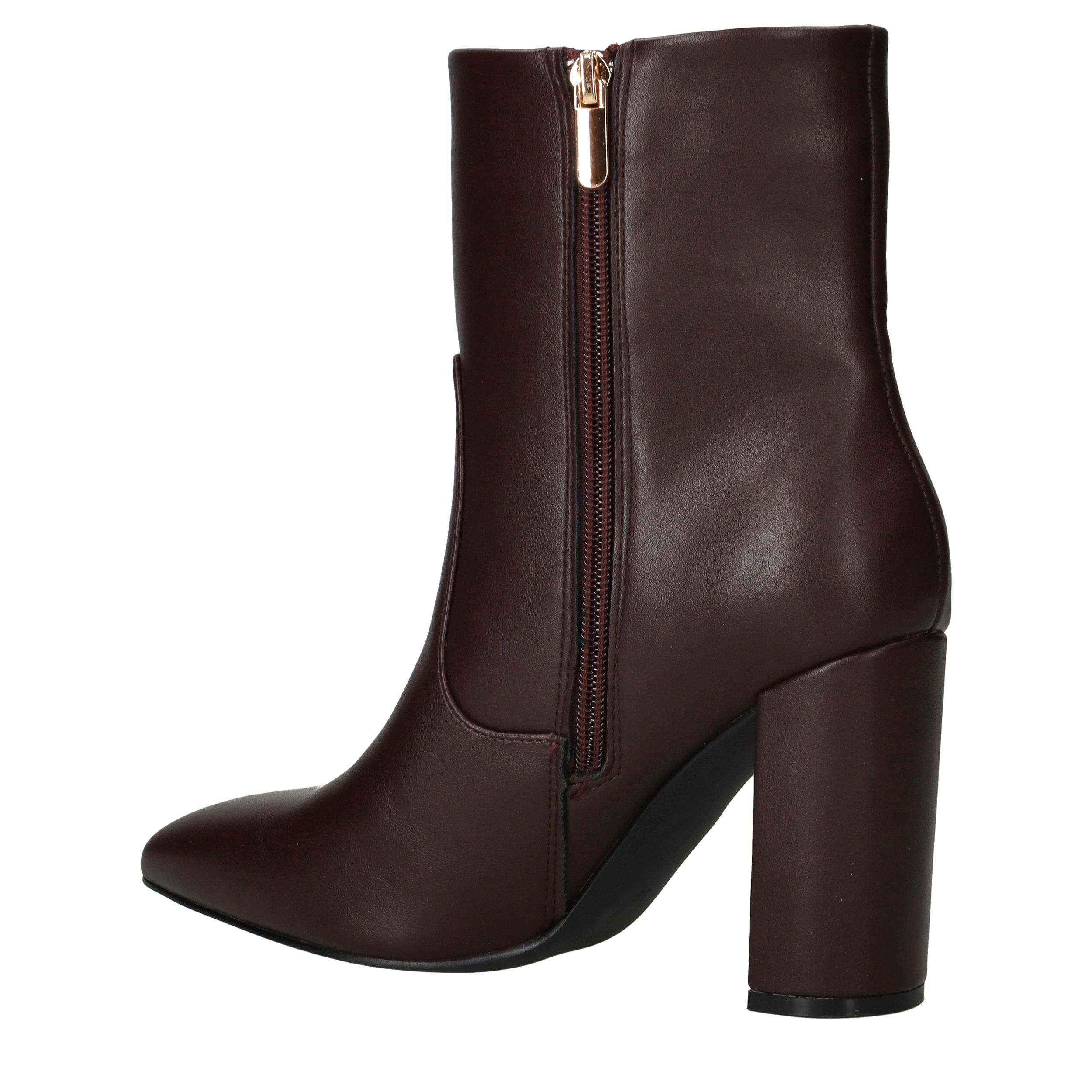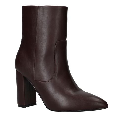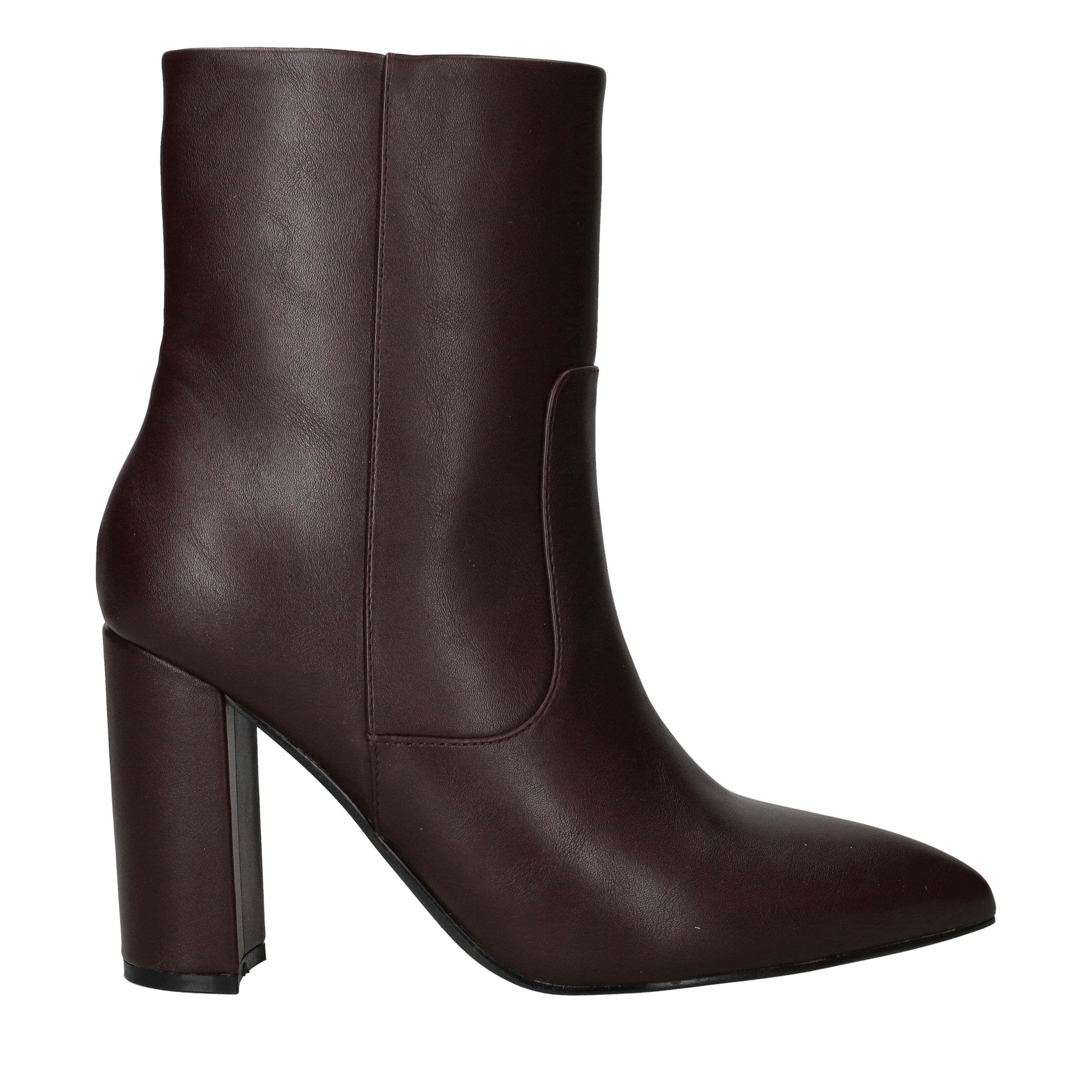 - Belangrijke kenmerken zijn de hoge blokhak, de elegante puntneus en de rijke bordeauxrode kleur.