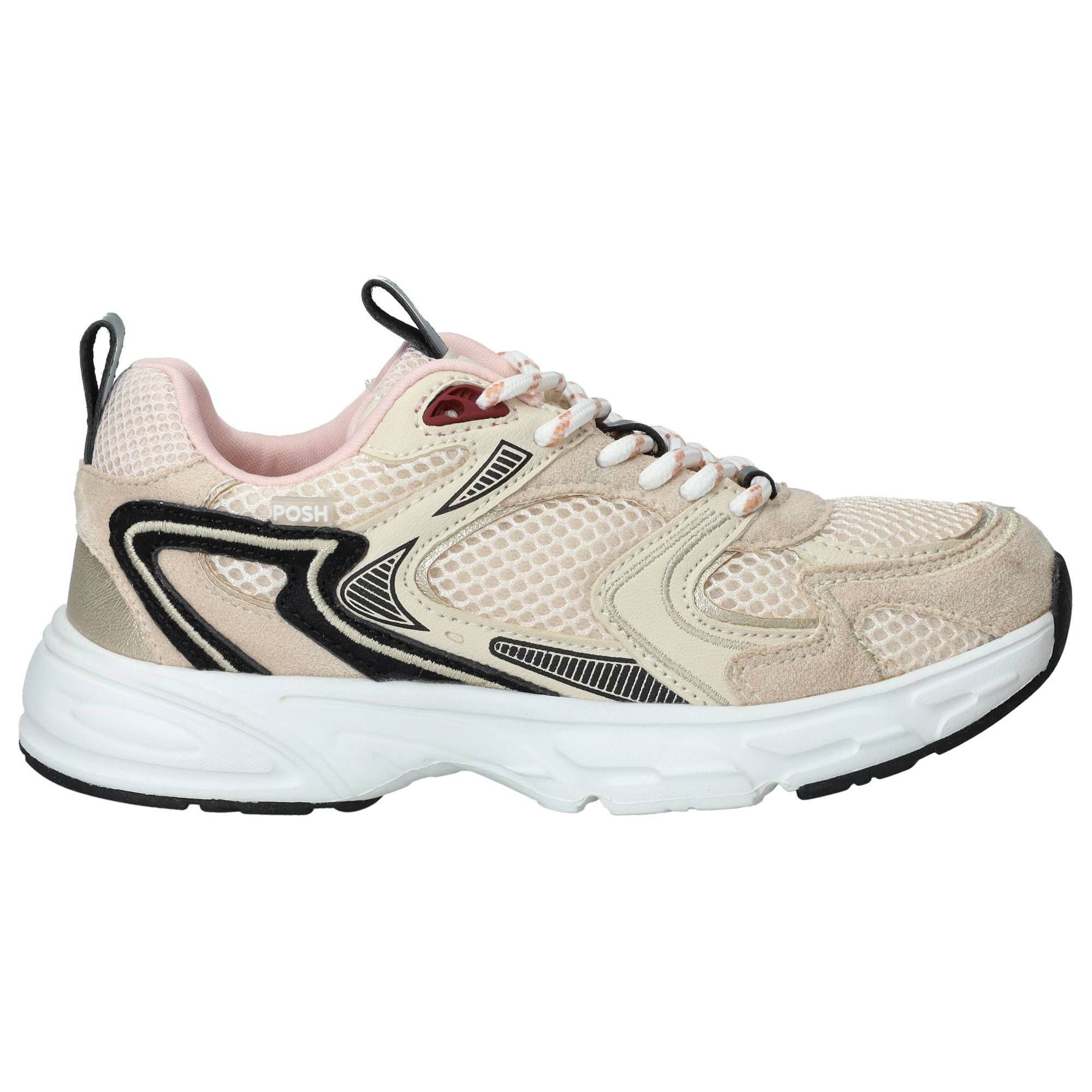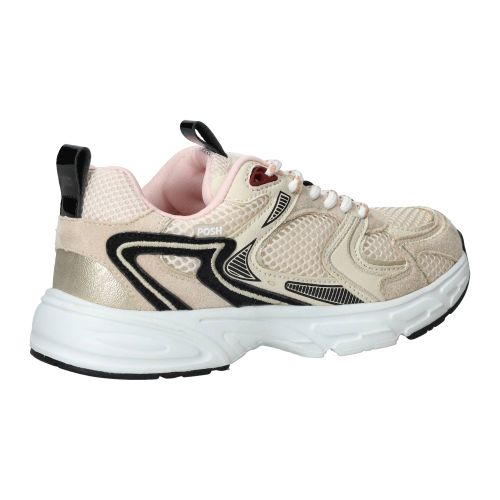 De [meisjes sneakers](/meisjes/schoenen/sneakers) van [Posh by Poelman](/meisjes/posh-by-poelman) in een mooie beige kleur zijn een fijne aanvulling voor de schoenenkast. Deze sneakers stralen een vrolijke en actieve stijl uit, perfect voor drukke dagen vol speelplezier. Het ontwerp met subtiele details en de frisse beige tint maken de schoen gemakkelijk te combineren met verschillende outfits. Tijdens het lopen bieden deze sneakers een prettige ondersteuning, waarbij de schoen zorgt voor een rustige afwikkeling van de voet. Dit draagt bij aan een comfortabel gevoel, of je nu rent, springt of gewoon wandelt.- De veters zorgen ervoor dat de schoen goed aansluit, zodat je voet stevig op zijn plek blijft tijdens elke beweging.