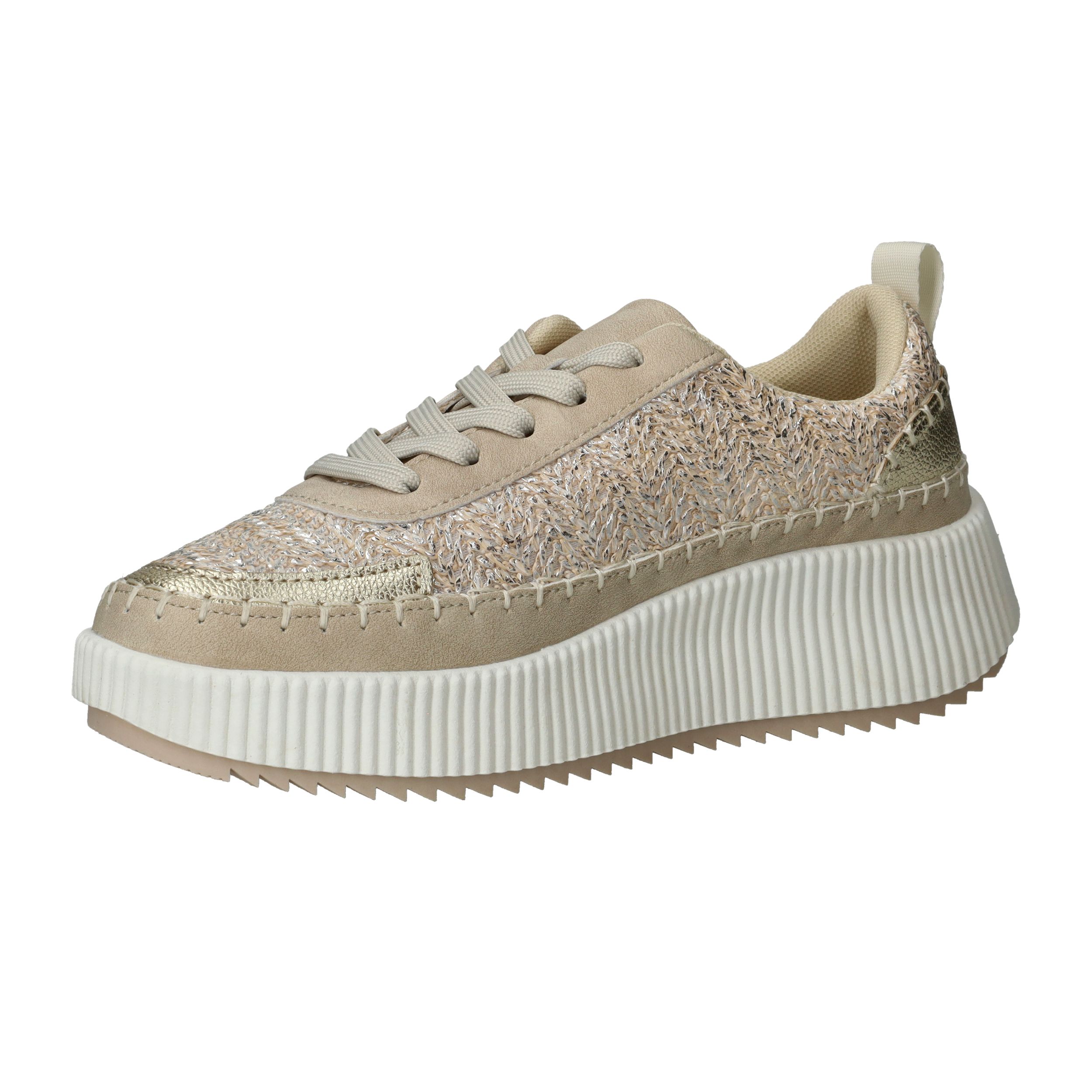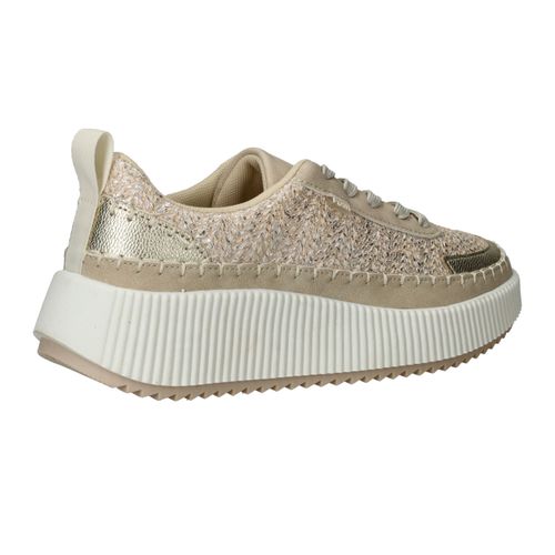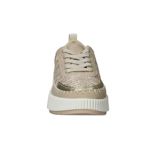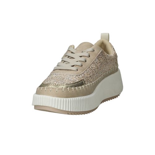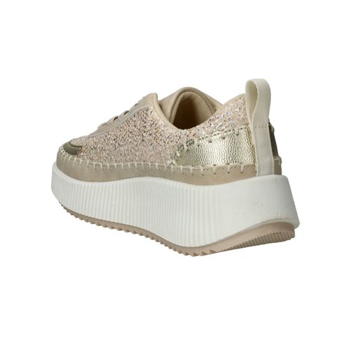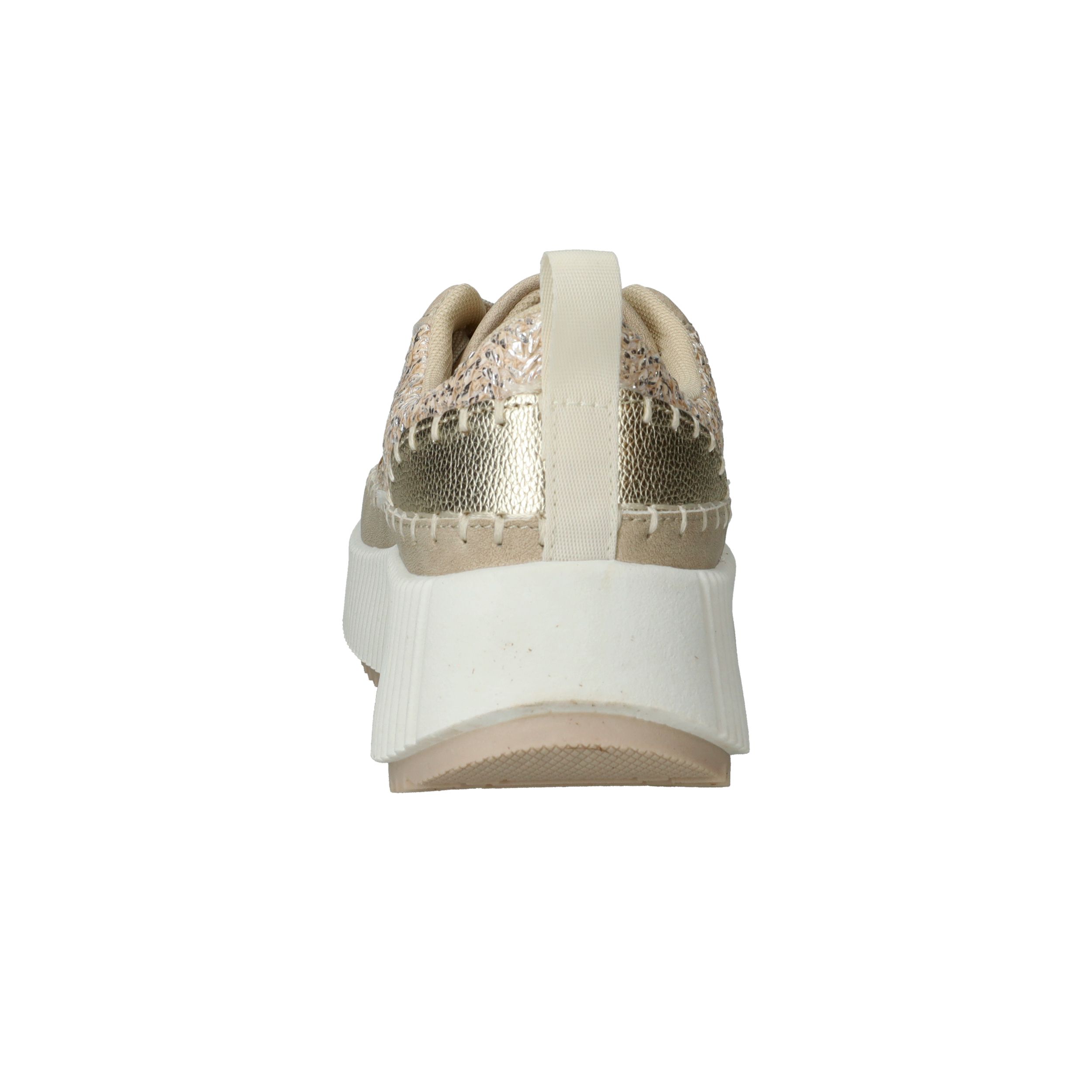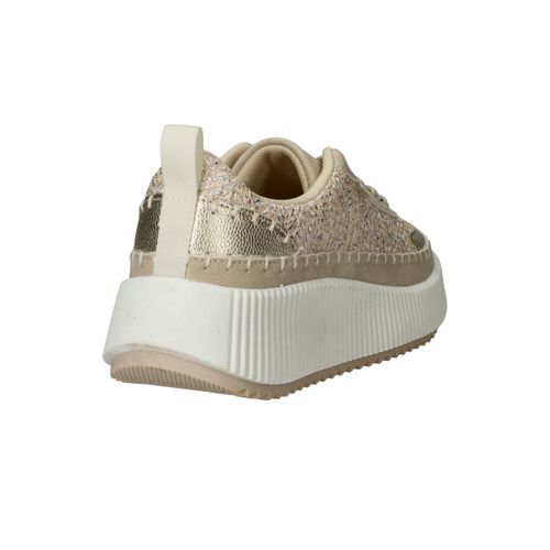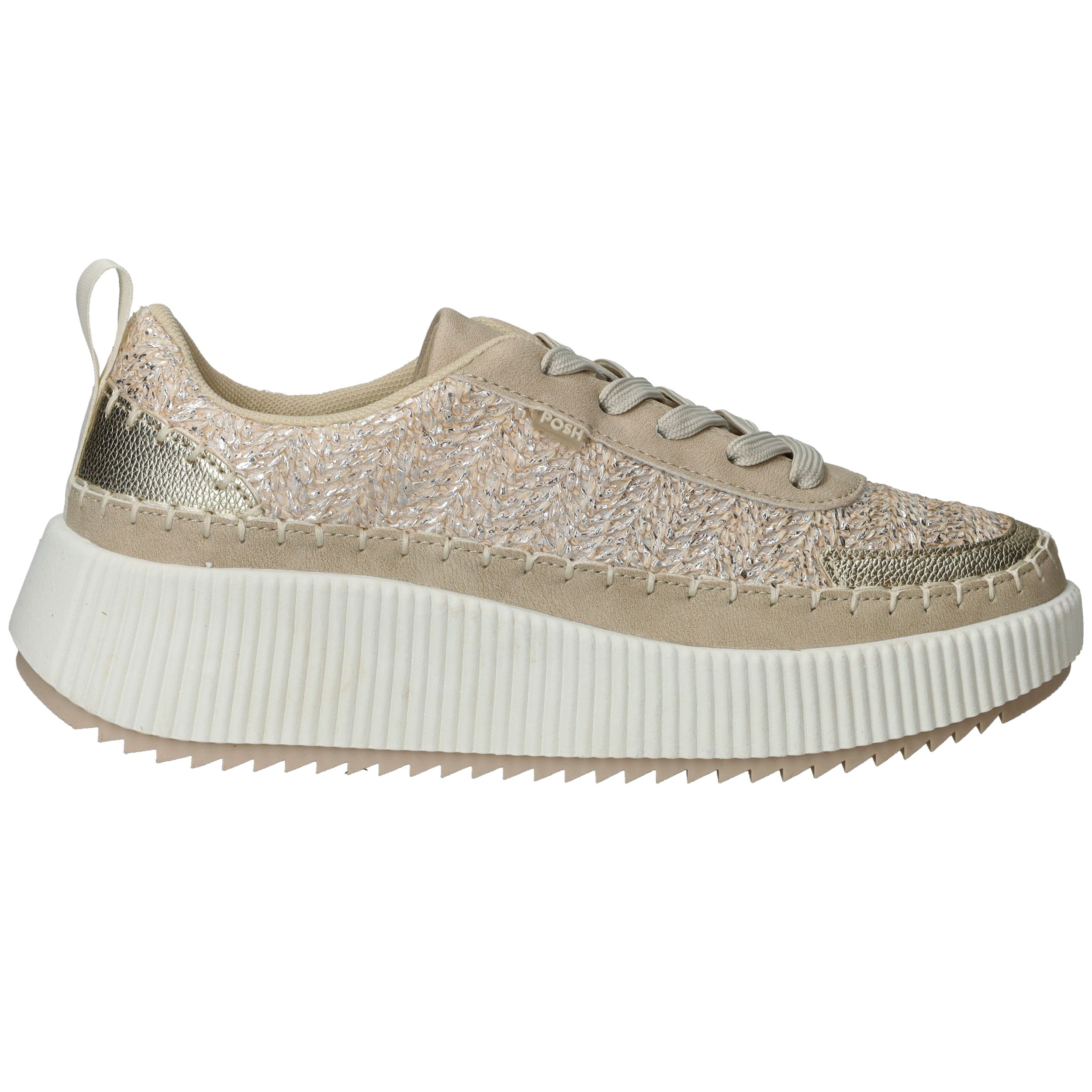 Trendy POSH by Poelman sneaker met gave ribbel platformzool! De metallic gouden sneaker is afgewerkt met een leuk sierstiksel.