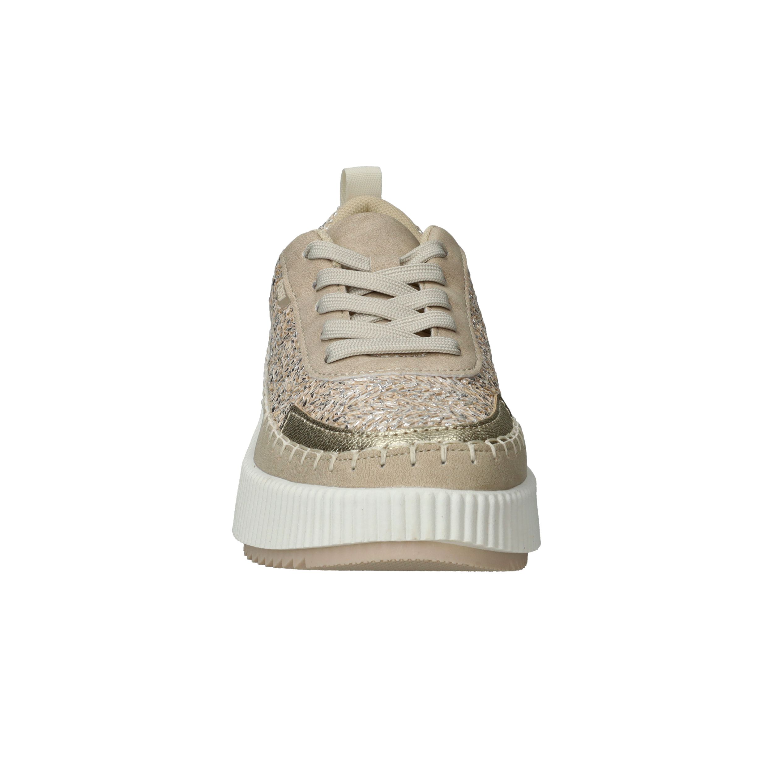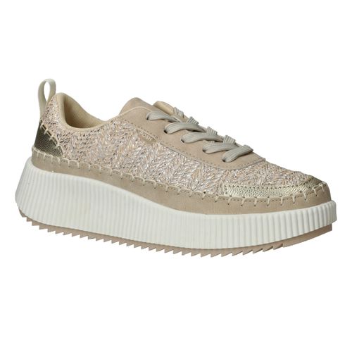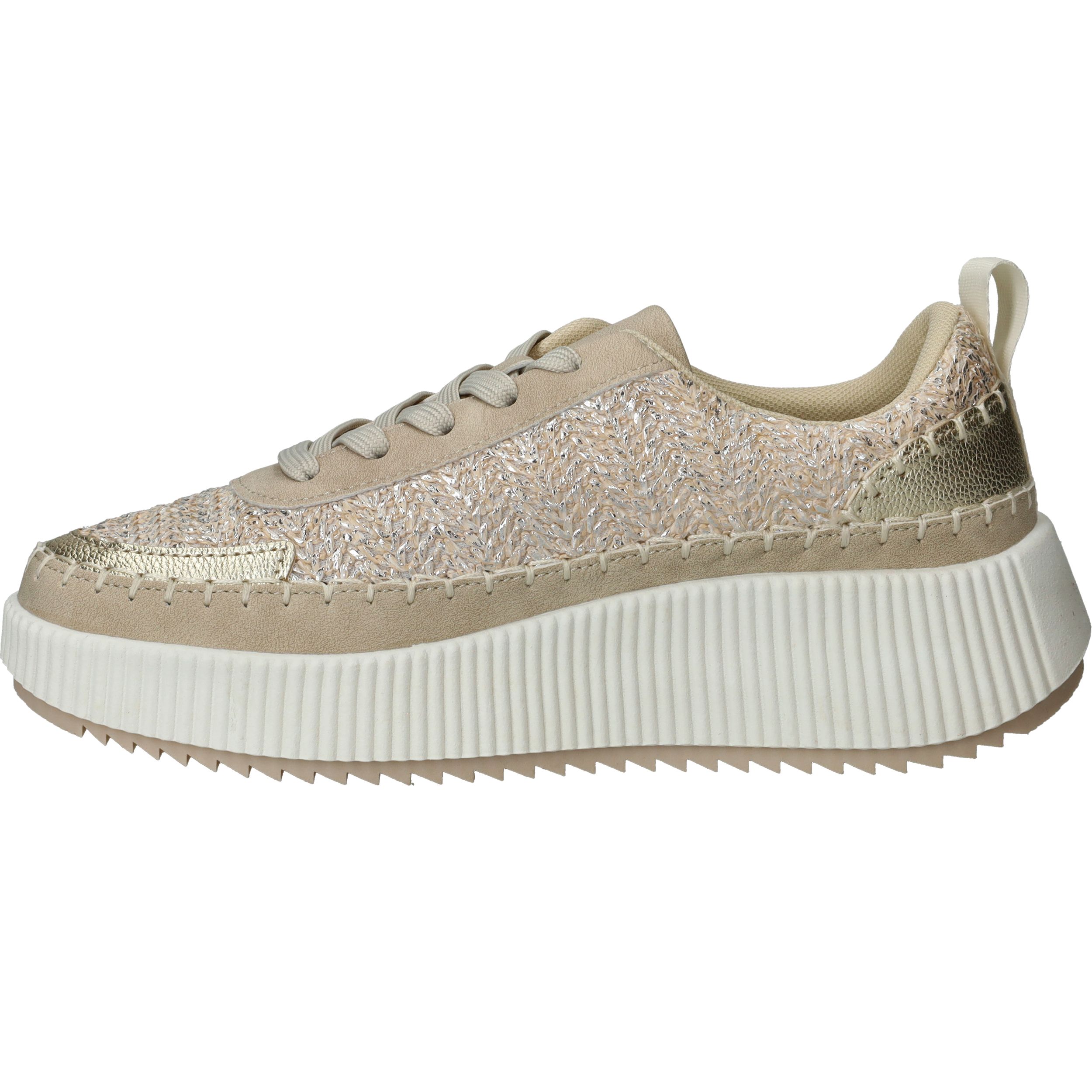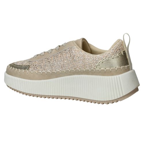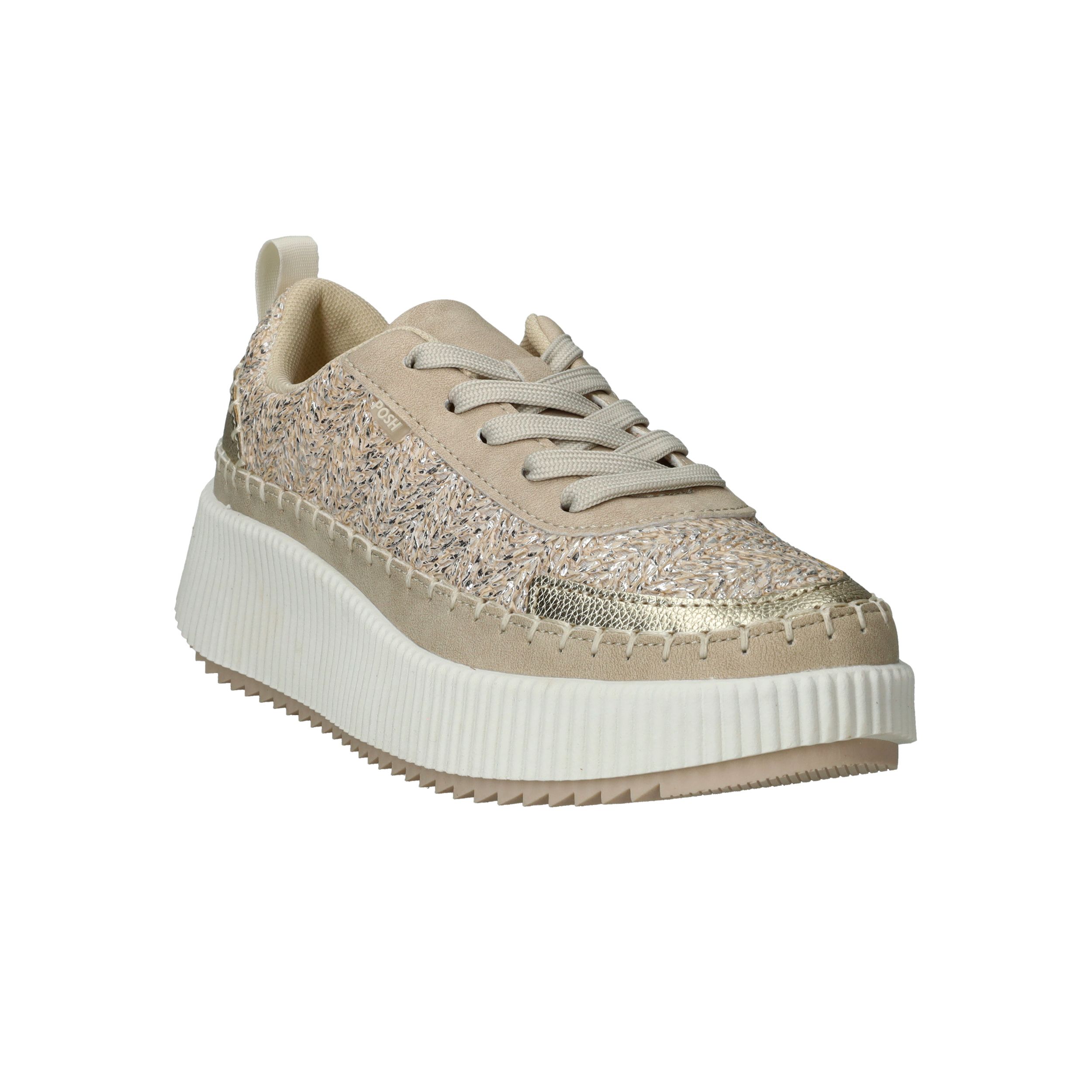 Trendy POSH by Poelman sneaker met gave ribbel platformzool! De metallic gouden sneaker is afgewerkt met een leuk sierstiksel.