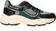 Prachtige sneaker voor dames in een groen/blauwe patrol kleur met zwarte accenten en een subtiele dierenprint van het merk POSH by Poelman.