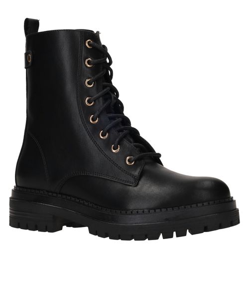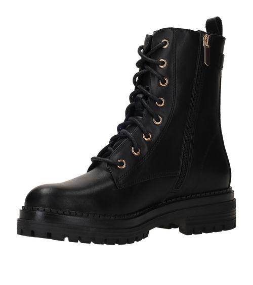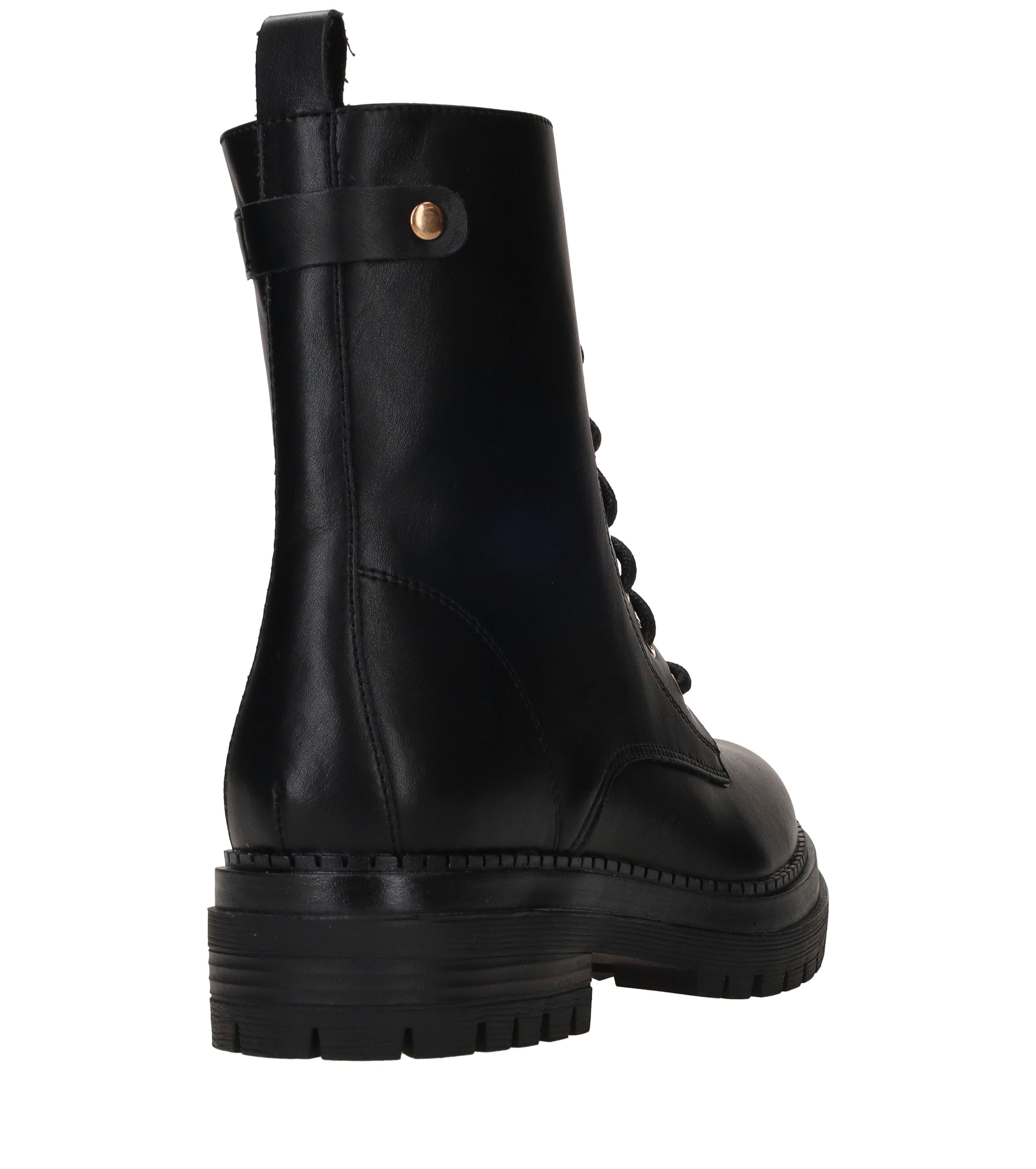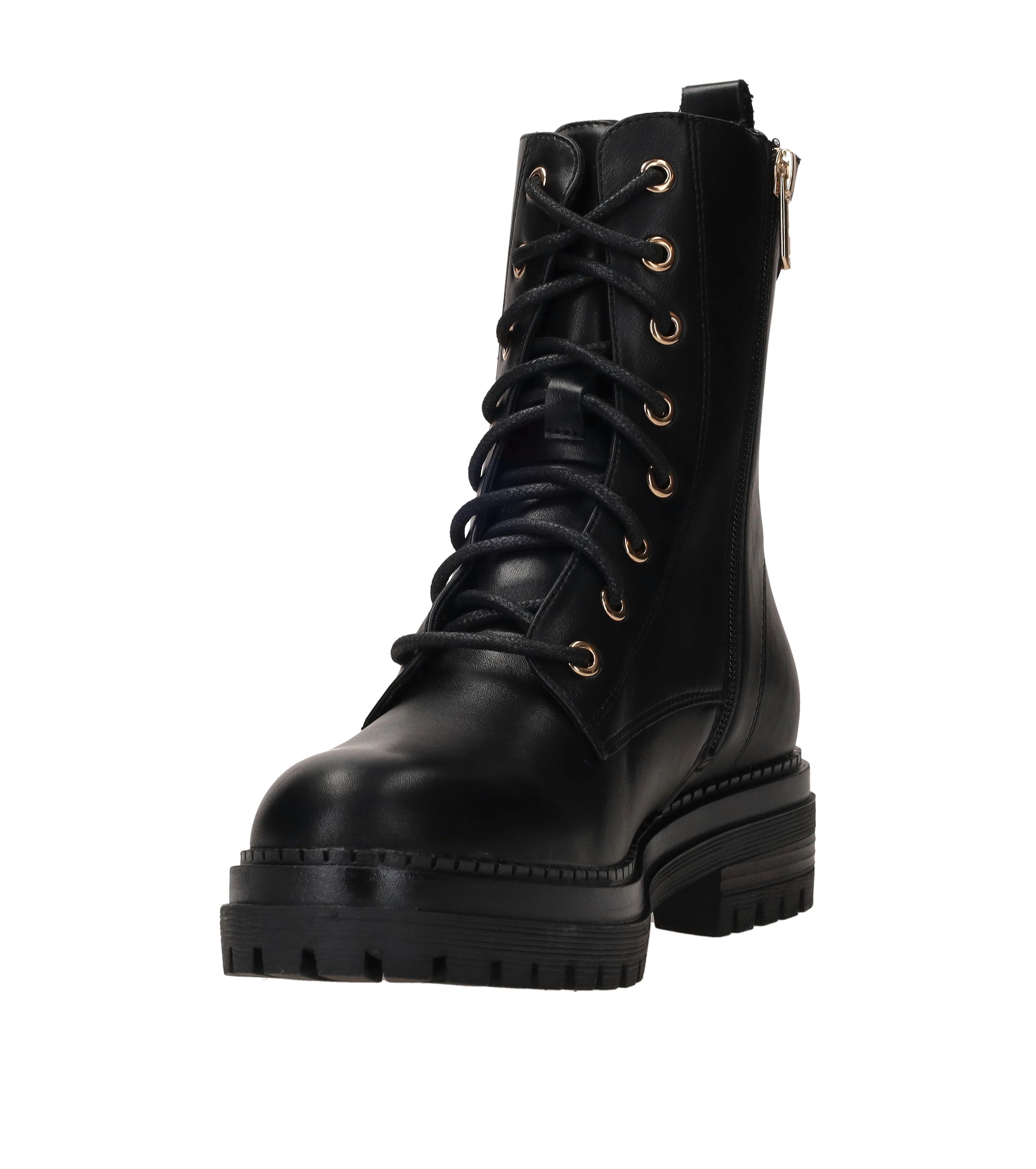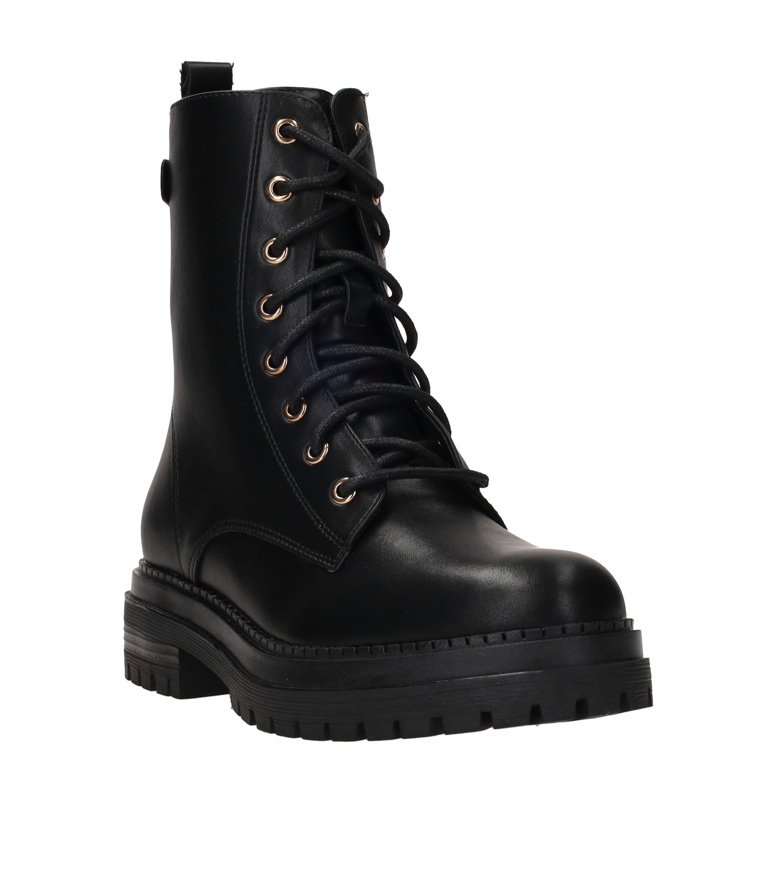 Stoere POSH By Poelman veterboot voor dames. De zwarte veterboot heeft een veter- en ritssluiting voor een makkelijke instap.