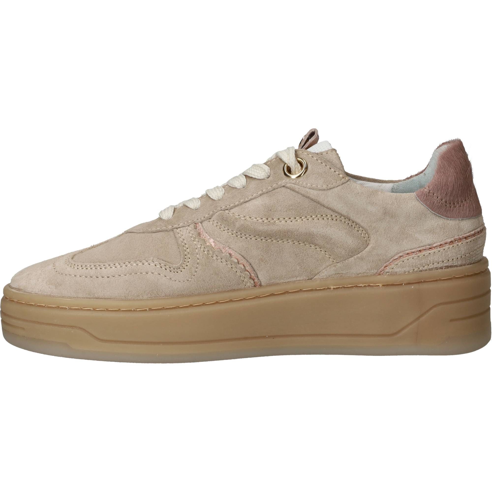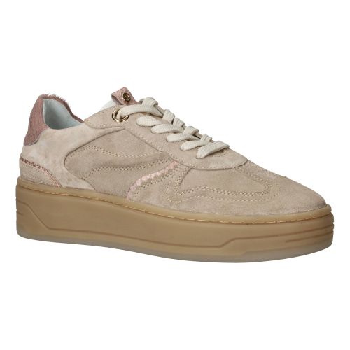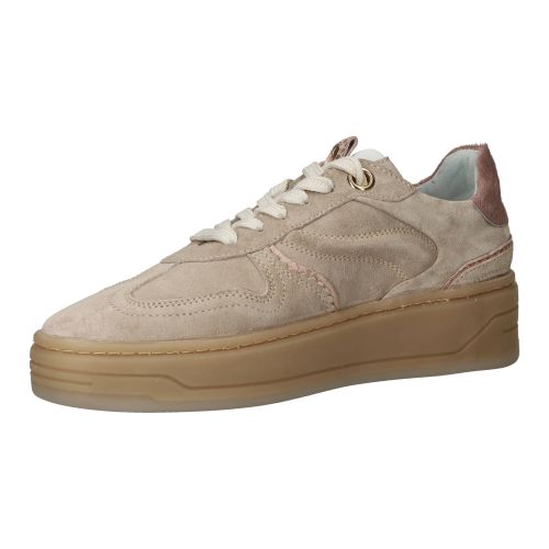 De dames sneakers van PS Poelman in een mooie beige kleur zijn een fijne toevoeging aan je garderobe. Deze schoenen hebben een stijlvolle uitstraling die veelzijdig te combineren is. Het suède bovenwerk voelt zacht aan en omsluit de voet op een comfortabele manier, terwijl de voering van leer en textiel zorgt voor een ademend gevoel. Bij elke stap ervaar je een prettige demping die de impact verzacht, wat bijdraagt aan een ontspannen loopgevoel gedurende de dag.- De vetersluiting zorgt ervoor dat je de schoen goed kunt aanpassen aan de voet, voor een stevige en persoonlijke pasvorm.