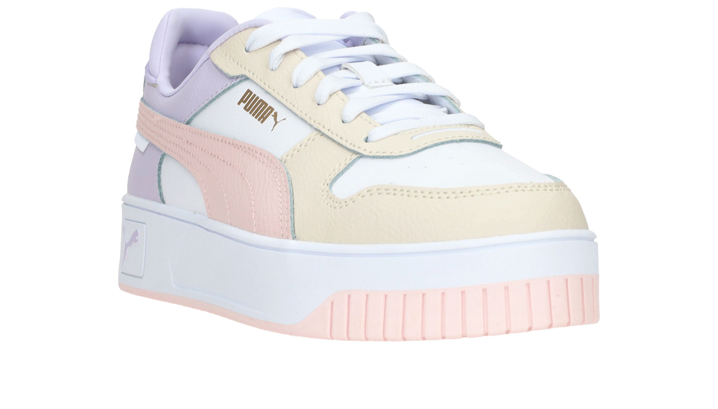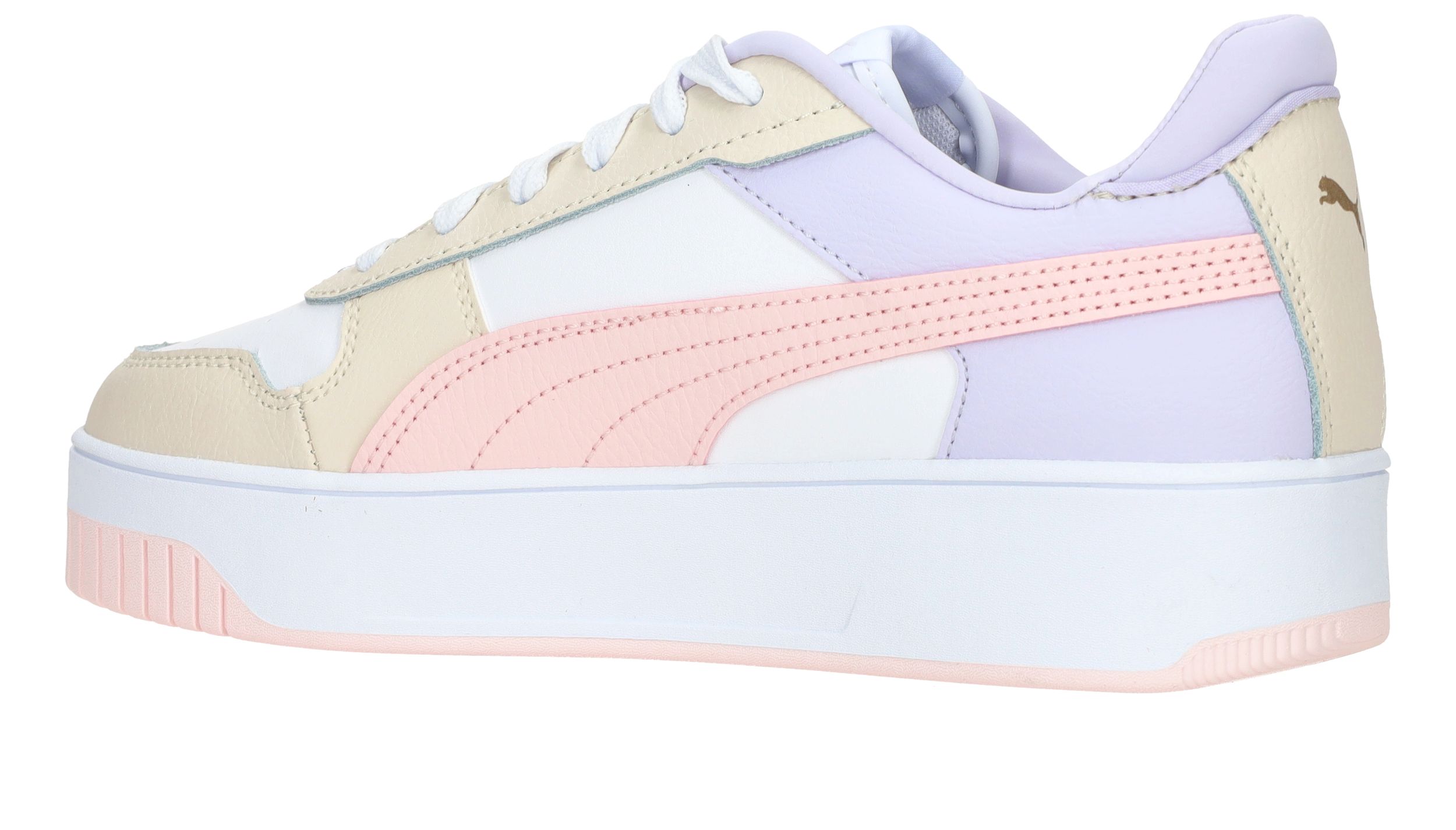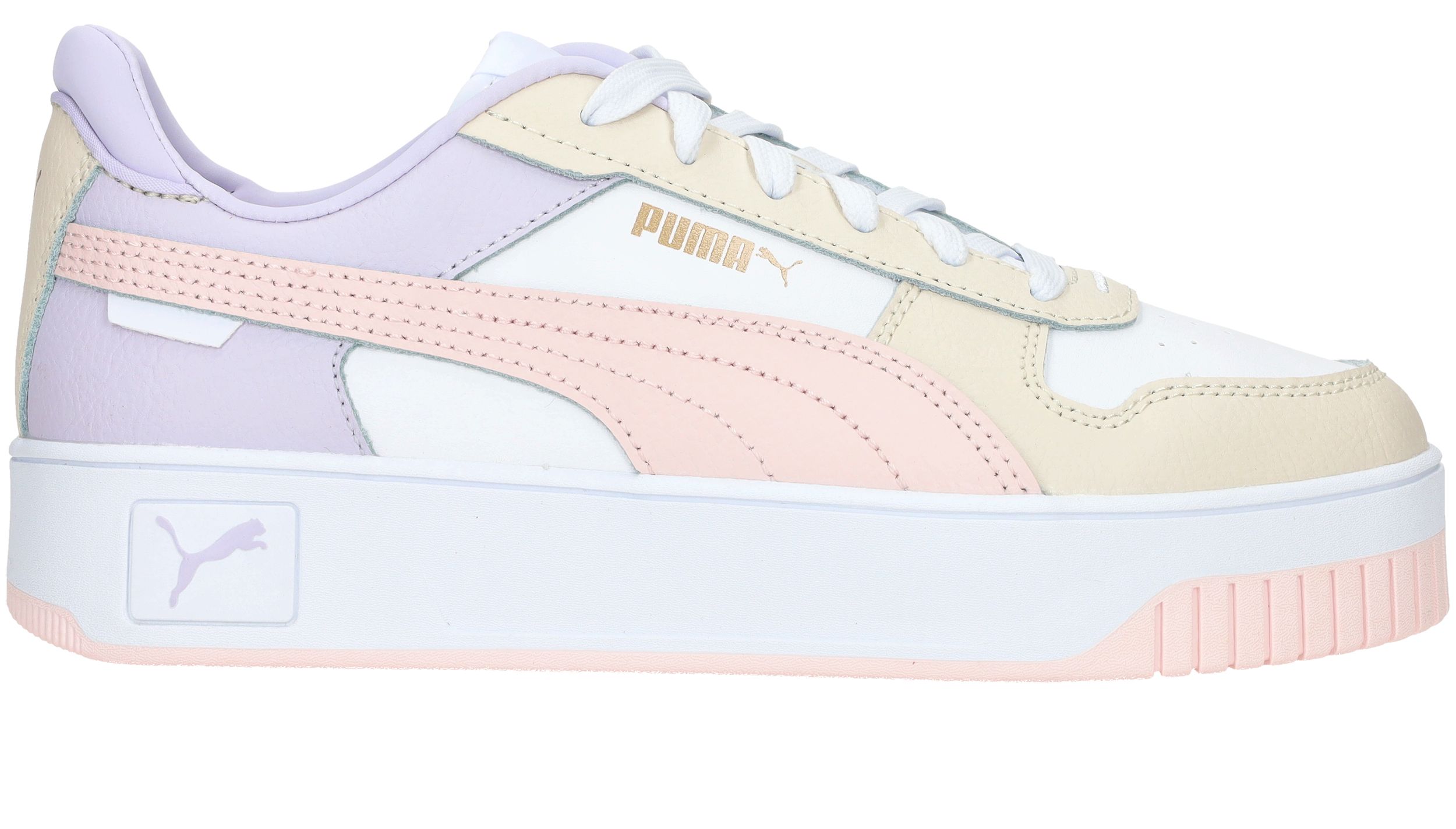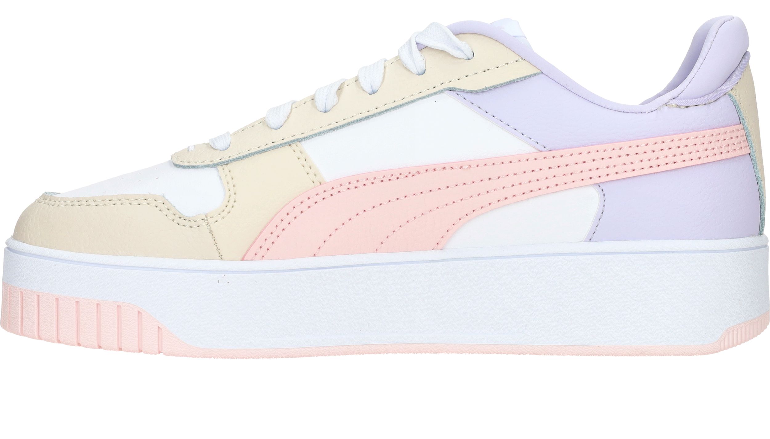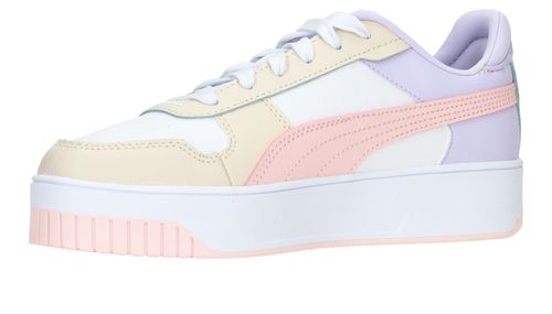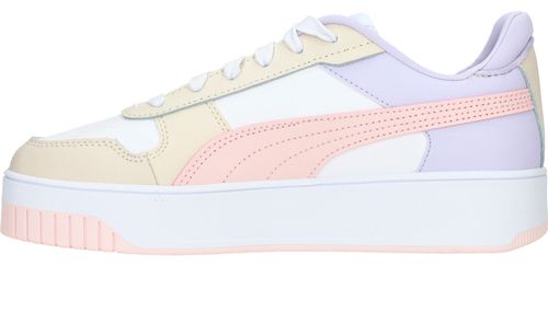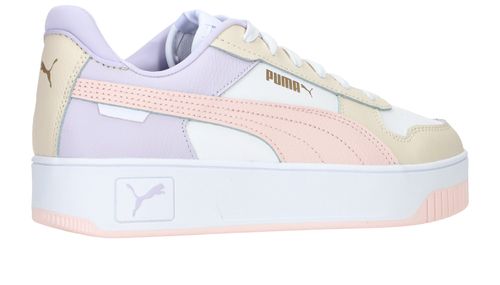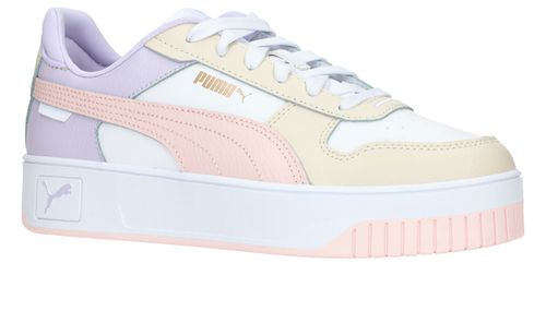 Gave Puma Carina Street sneaker voor dames in het wit met mooie pastelkleuren. Deze comfortabele damessneaker draag je het hele jaar door.