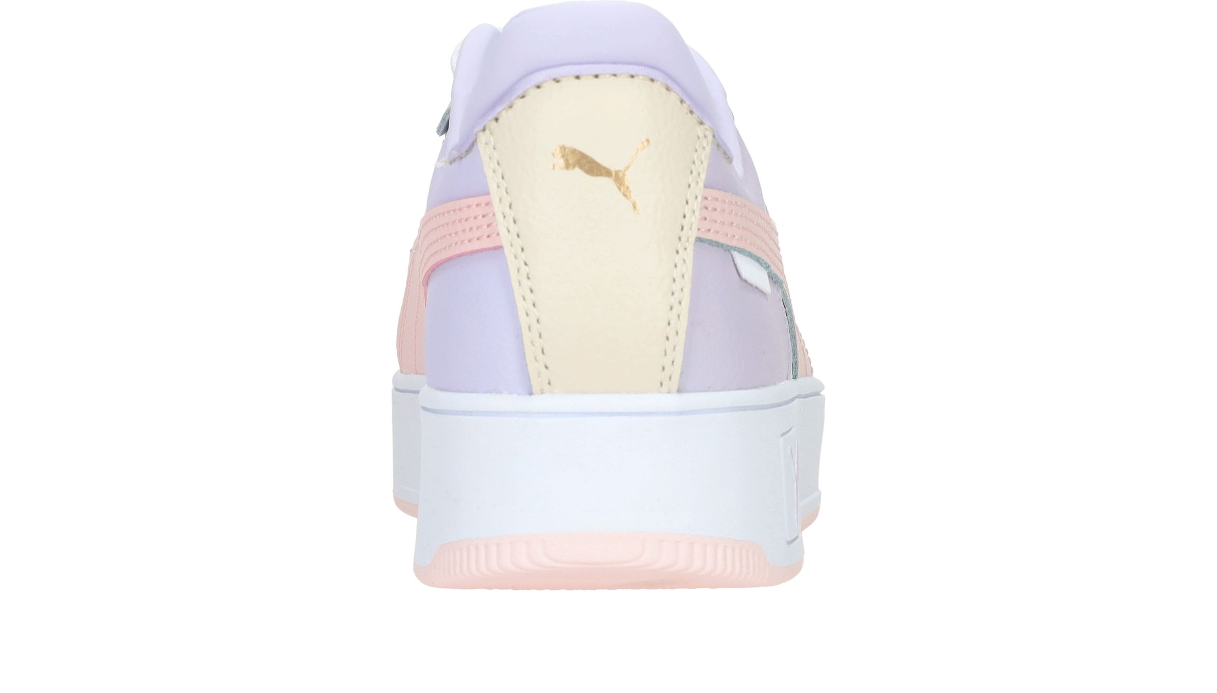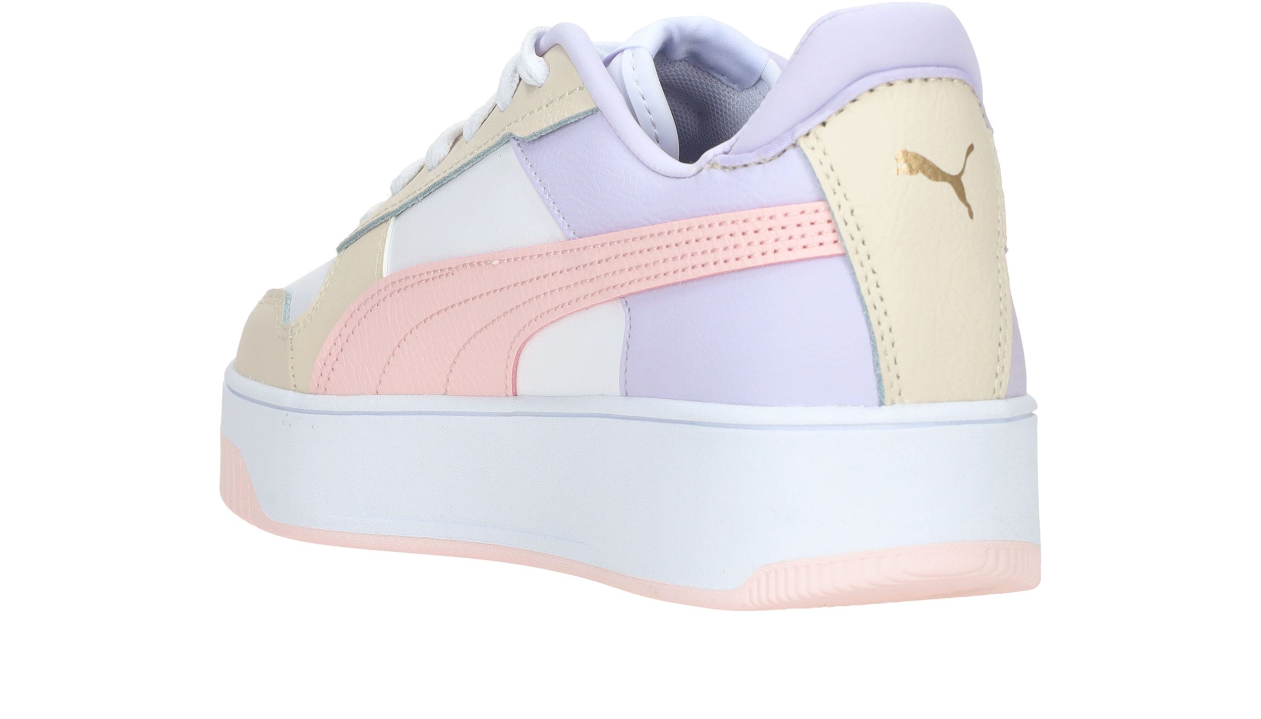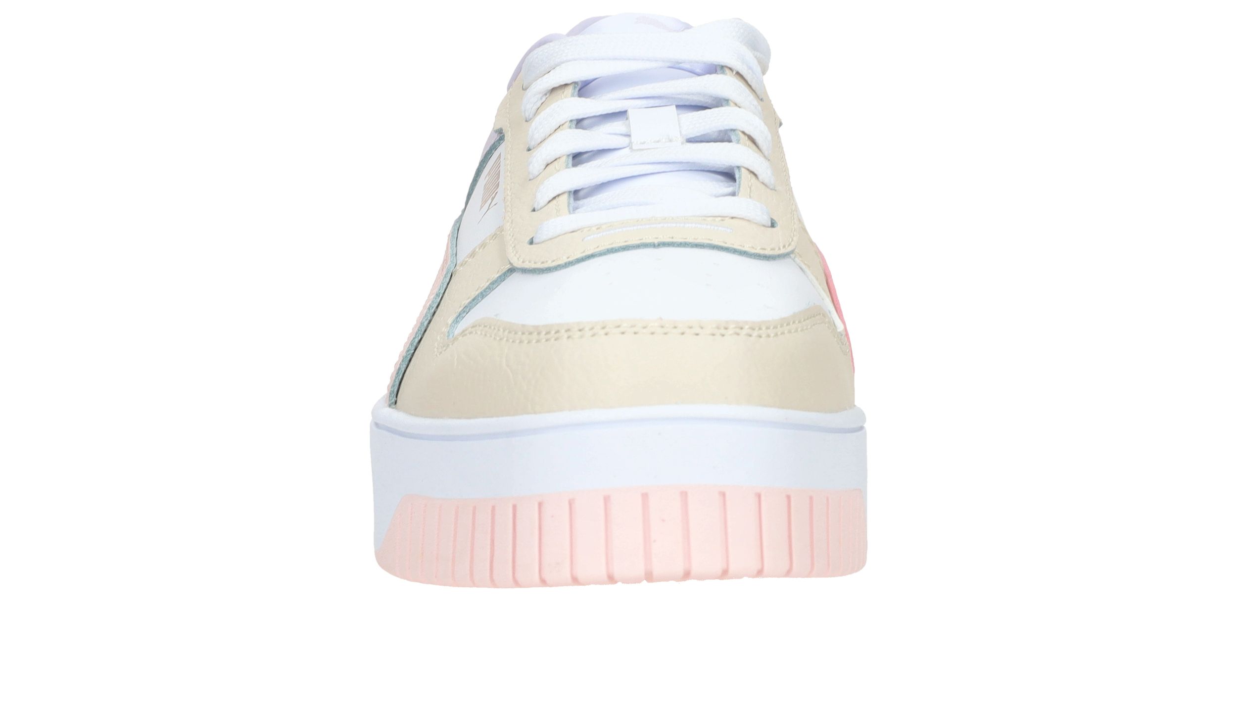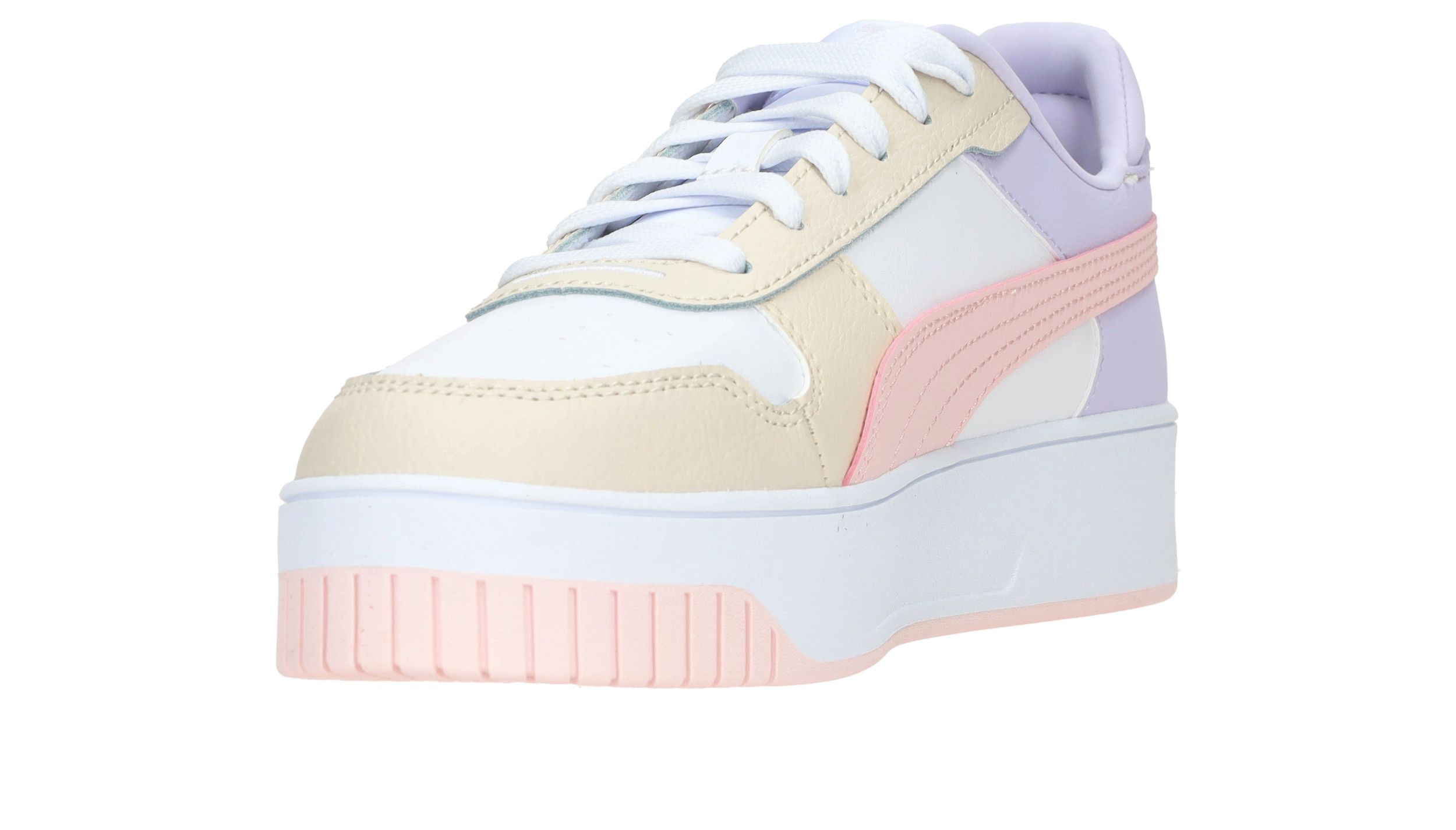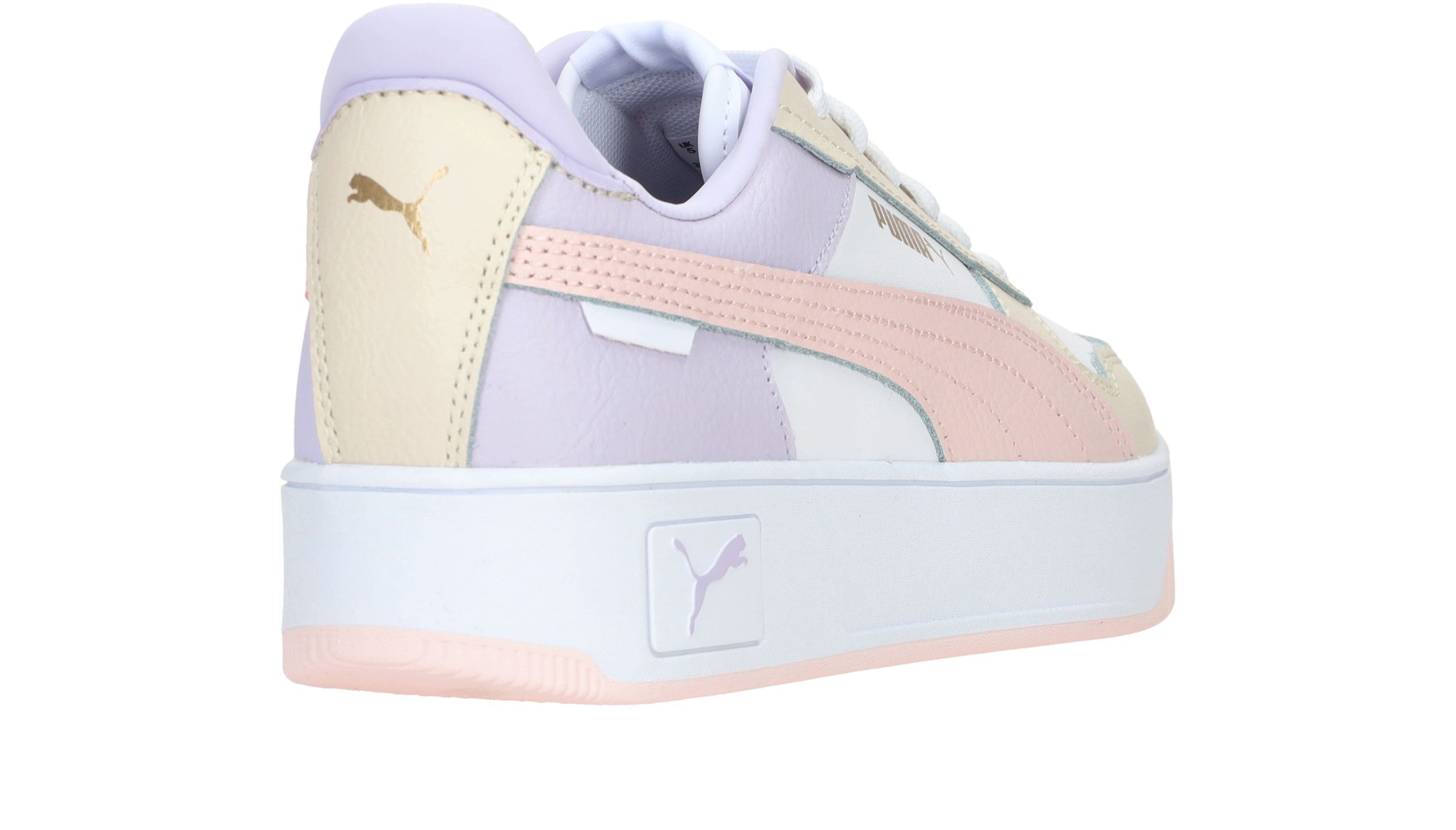 Gave Puma Carina Street sneaker voor dames in het wit met mooie pastelkleuren. Deze comfortabele damessneaker draag je het hele jaar door.
