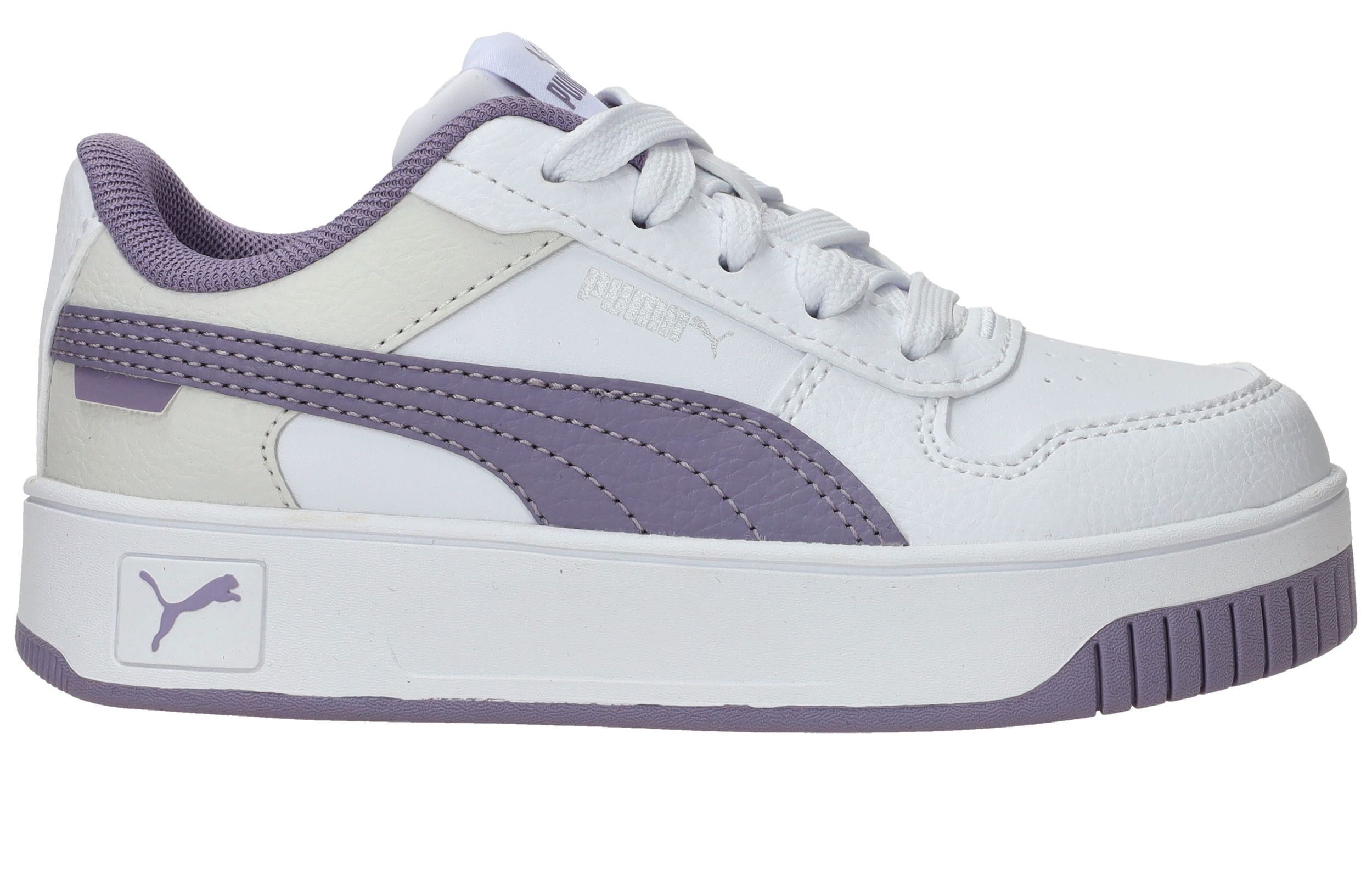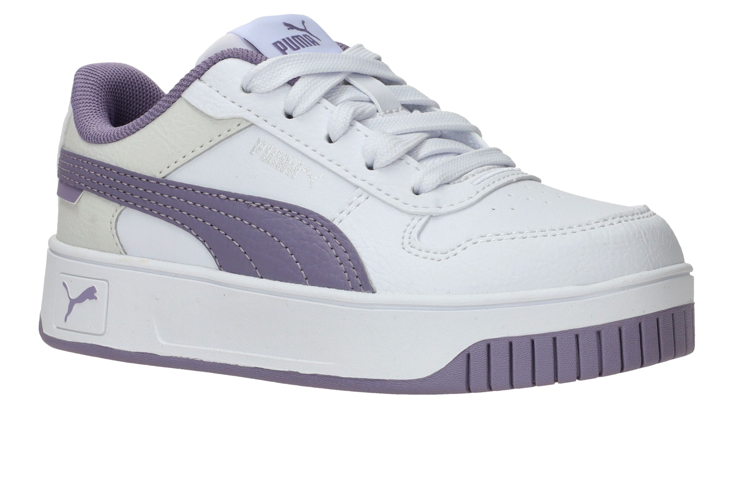 De Puma Carina Street sneaker is een gave meidensneaker in het wit met leuke paarse accenten. Deze kleurcombinatie zorgt ervoor dat hij makkelijk door te dragen is in alle seizoenen!