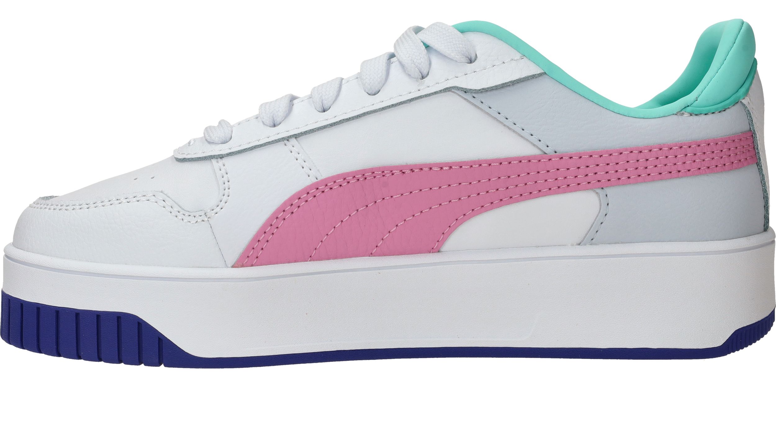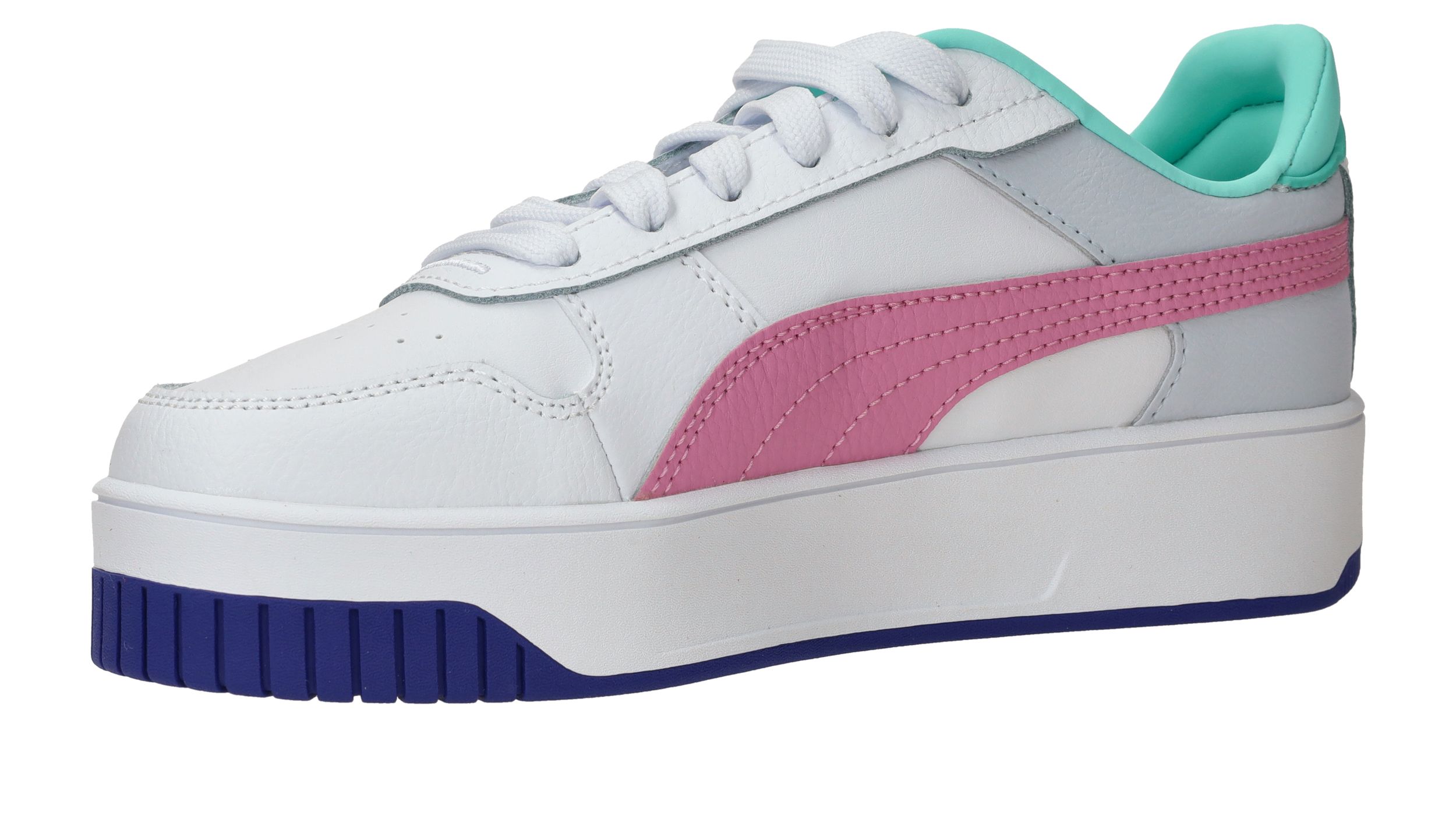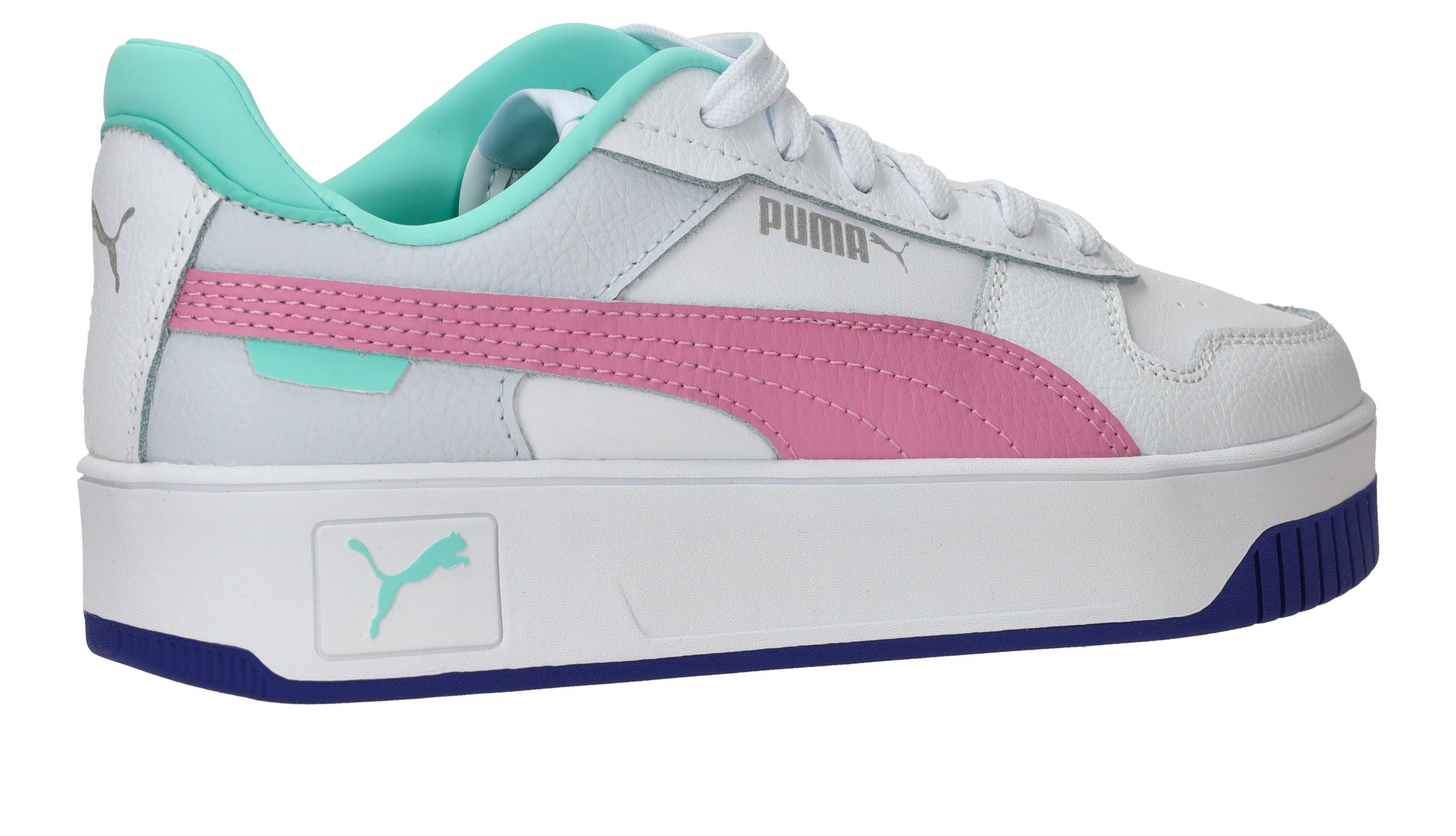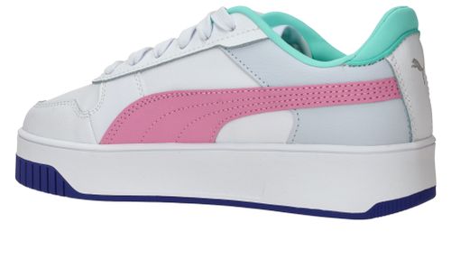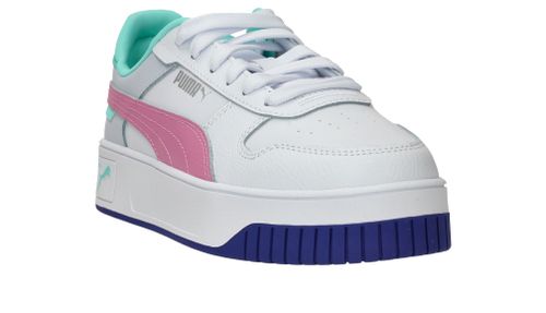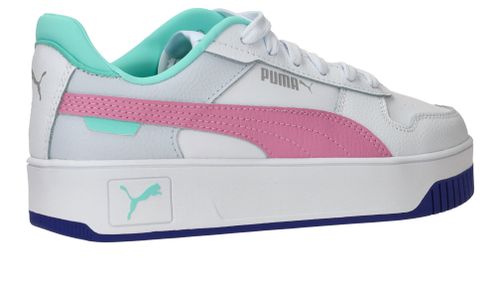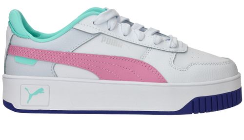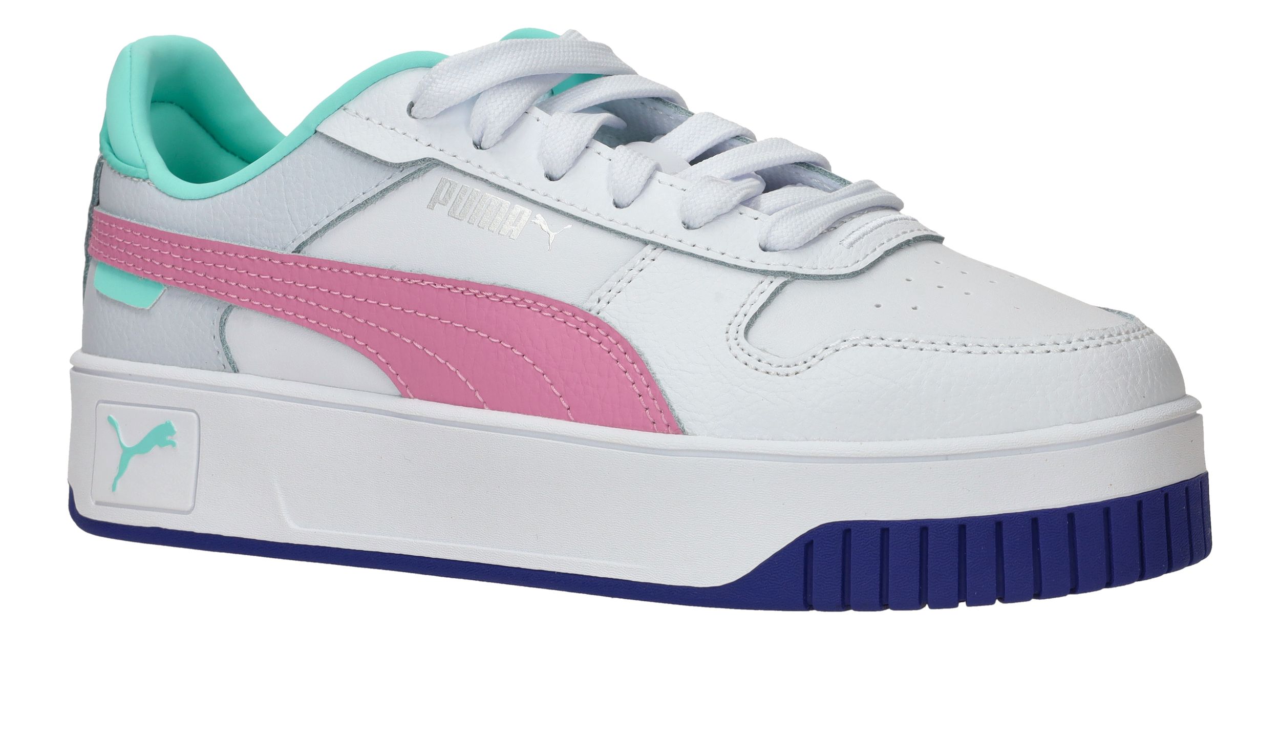De Puma Carina Street sneaker is een gave meidensneaker in het wit met mintgroen en roze accenten en een toffe blauwe zool. Deze kleurcombinatie zorgt ervoor dat hij makkelijk door te dragen is in alle seizoenen!