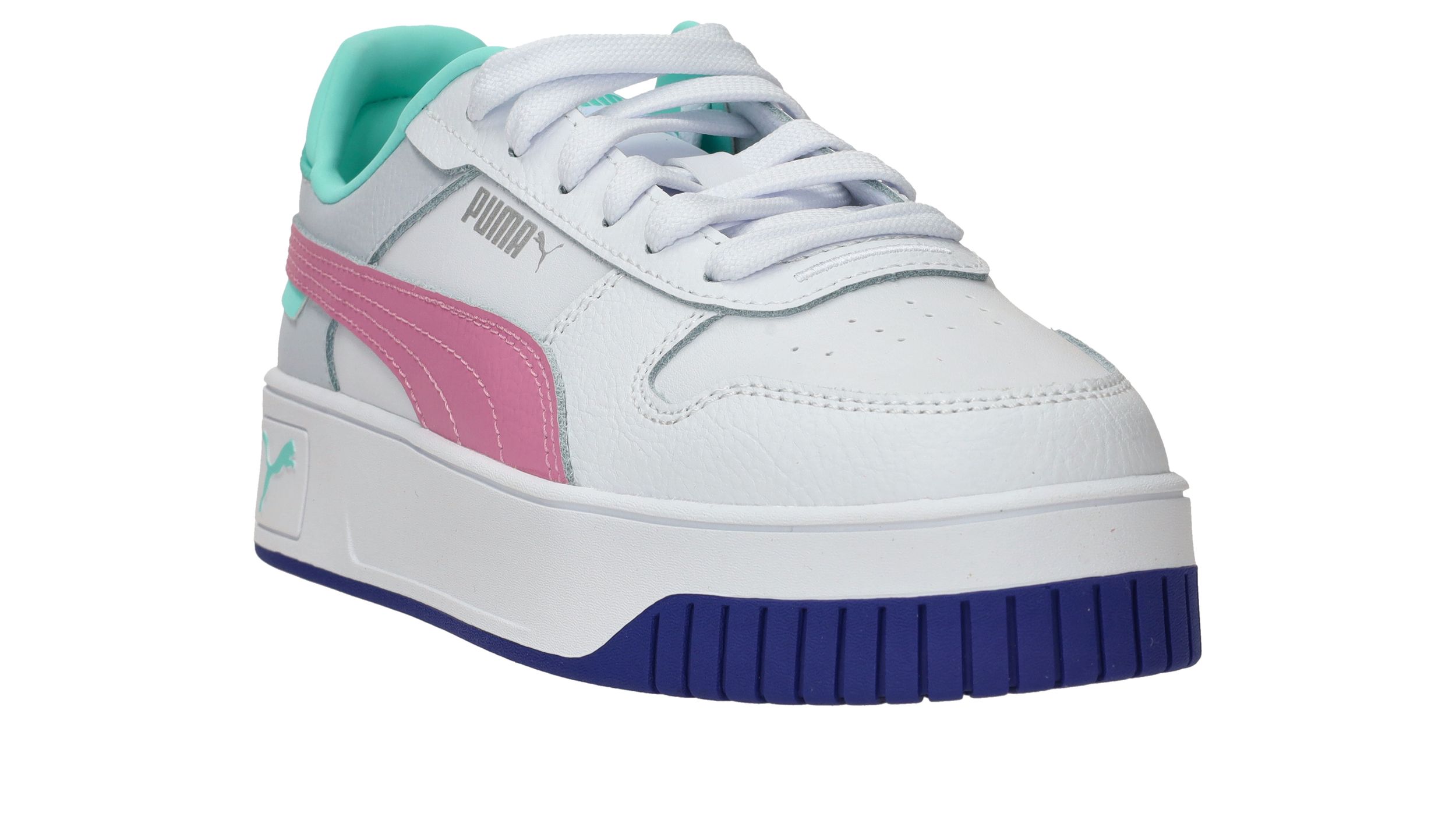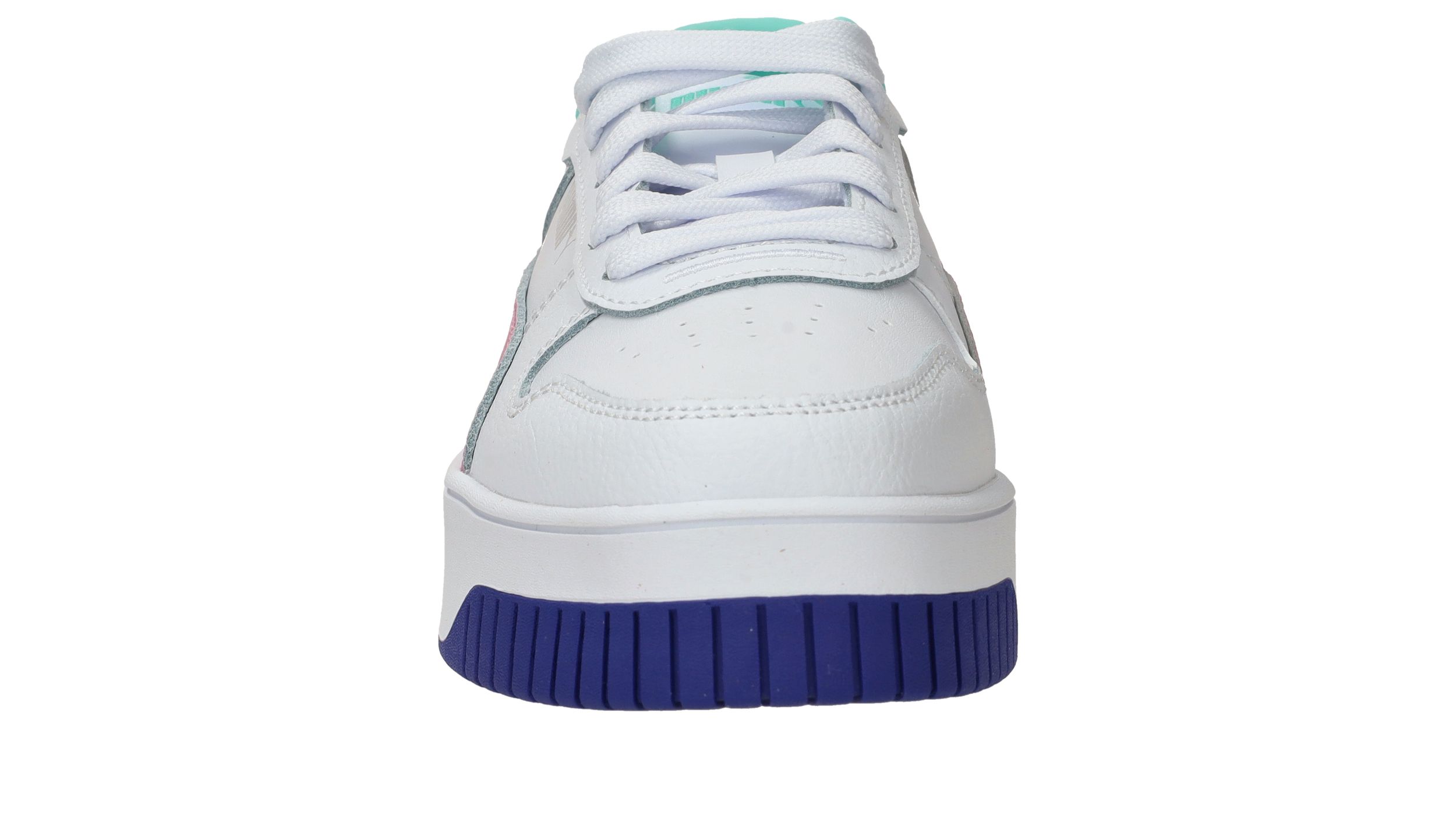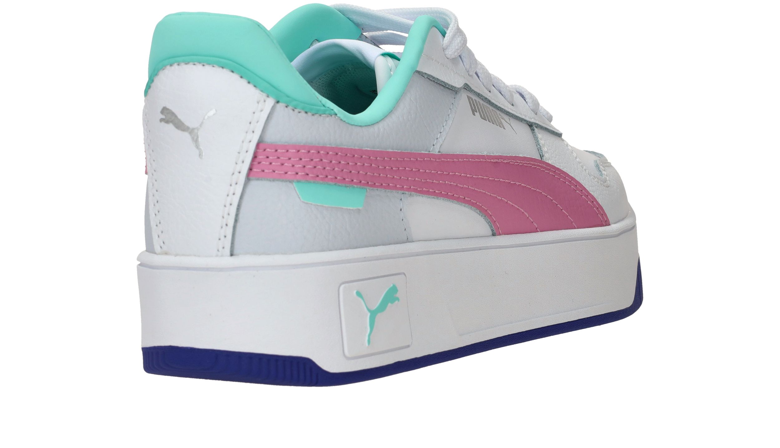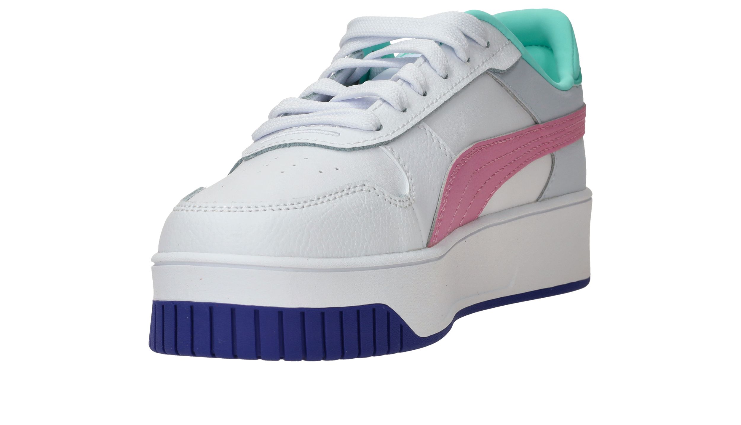 De Puma Carina Street sneaker is een gave meidensneaker in het wit met mintgroen en roze accenten en een toffe blauwe zool. Deze kleurcombinatie zorgt ervoor dat hij makkelijk door te dragen is in alle seizoenen!