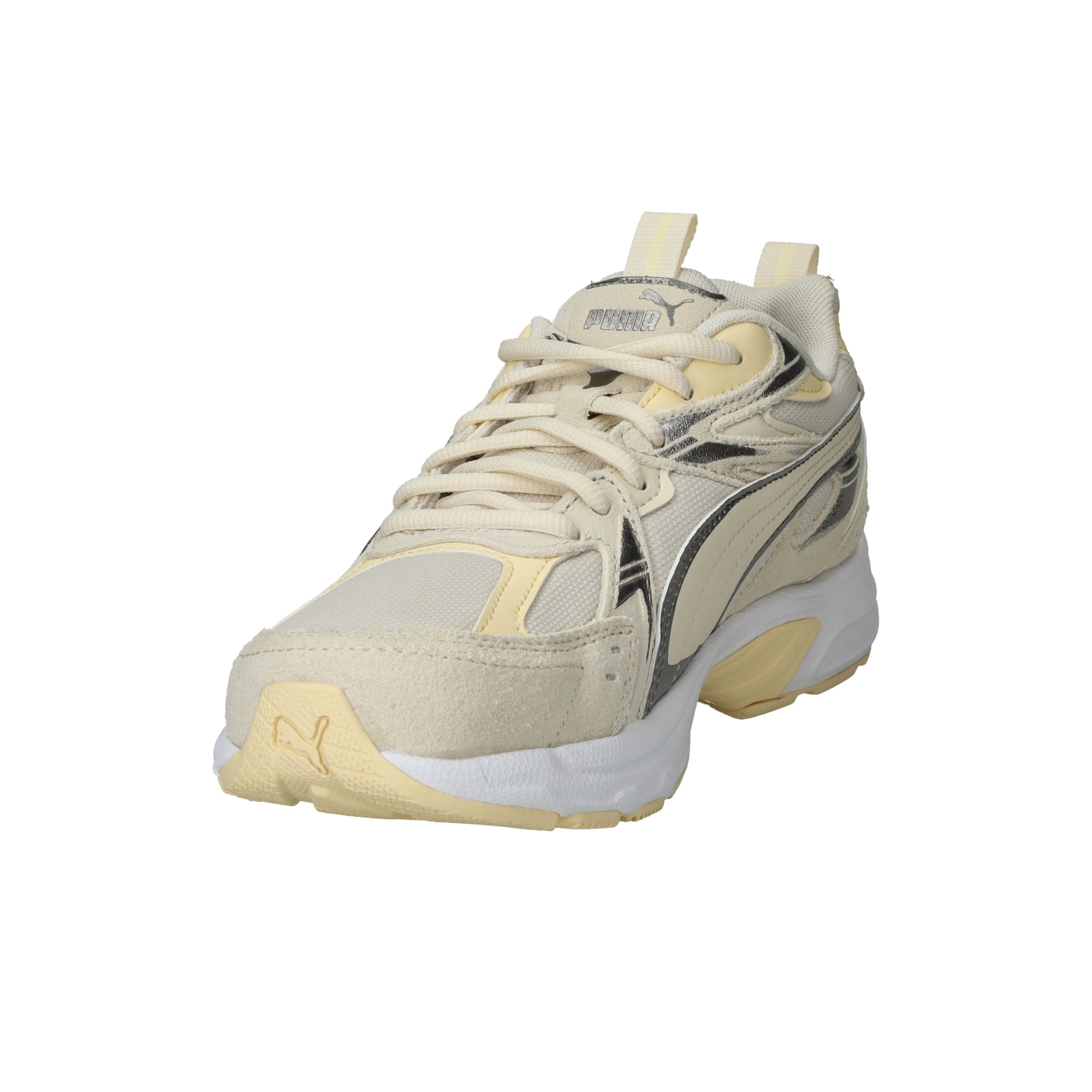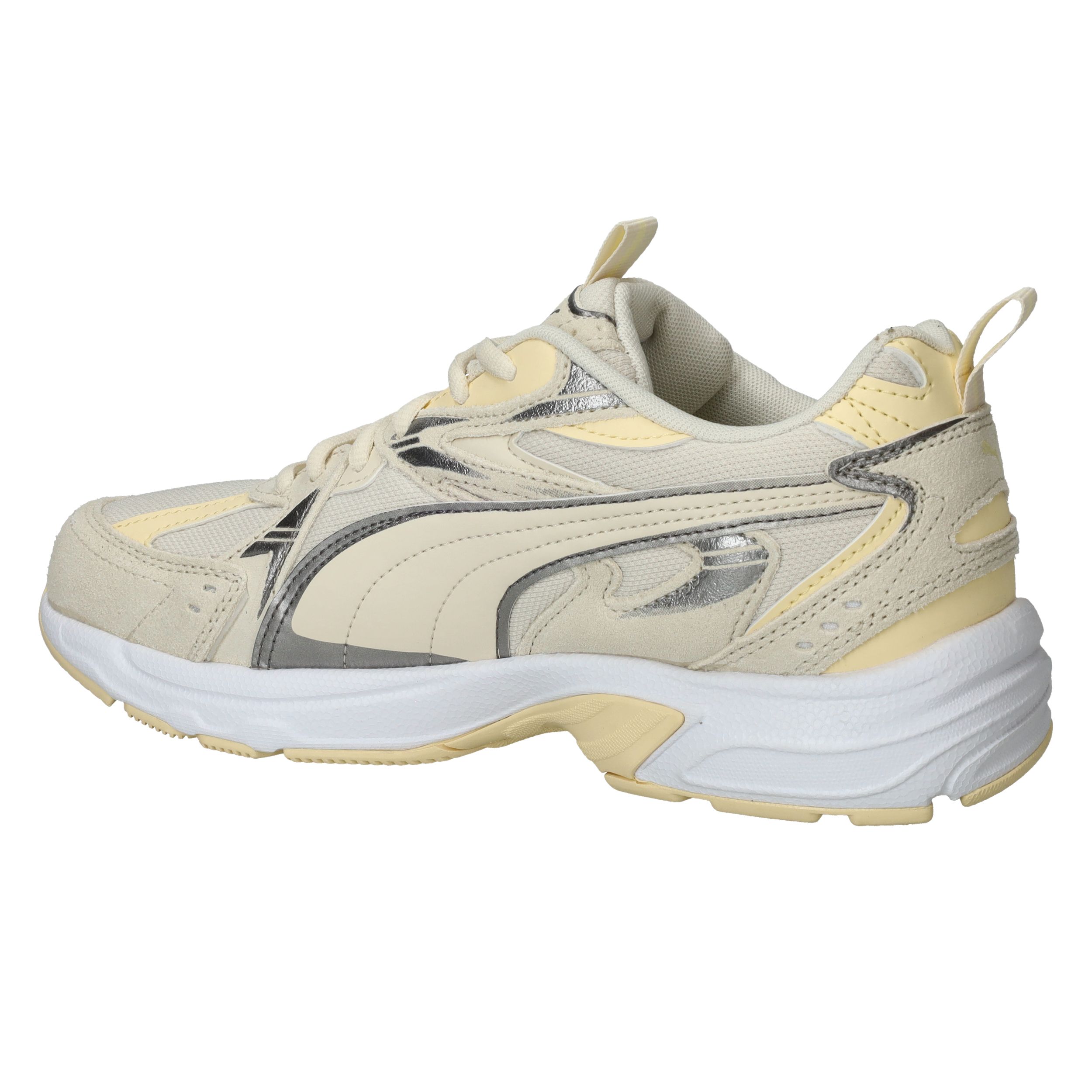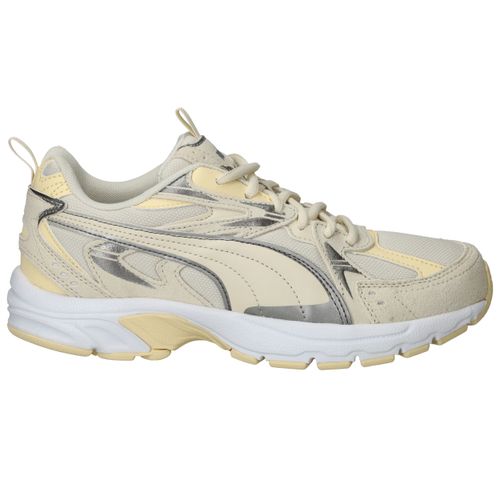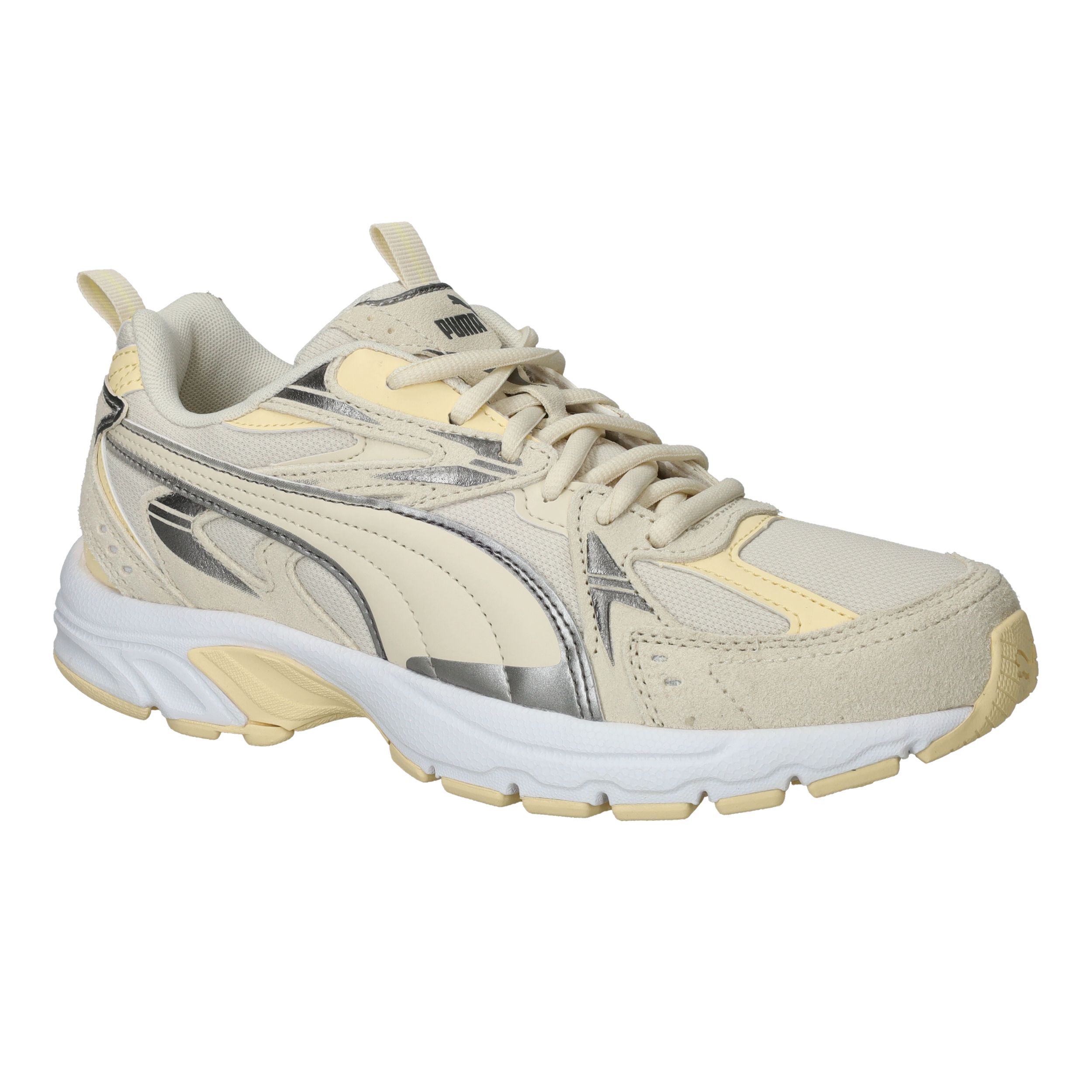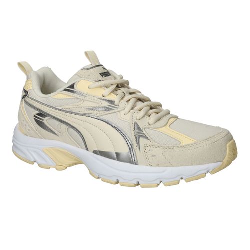 De zonnige combinatie van beige en lichtgeel zorgt voor blije voeten! De Puma Milenio Tech Suede sneaker voor dames heeft een sportieve look!