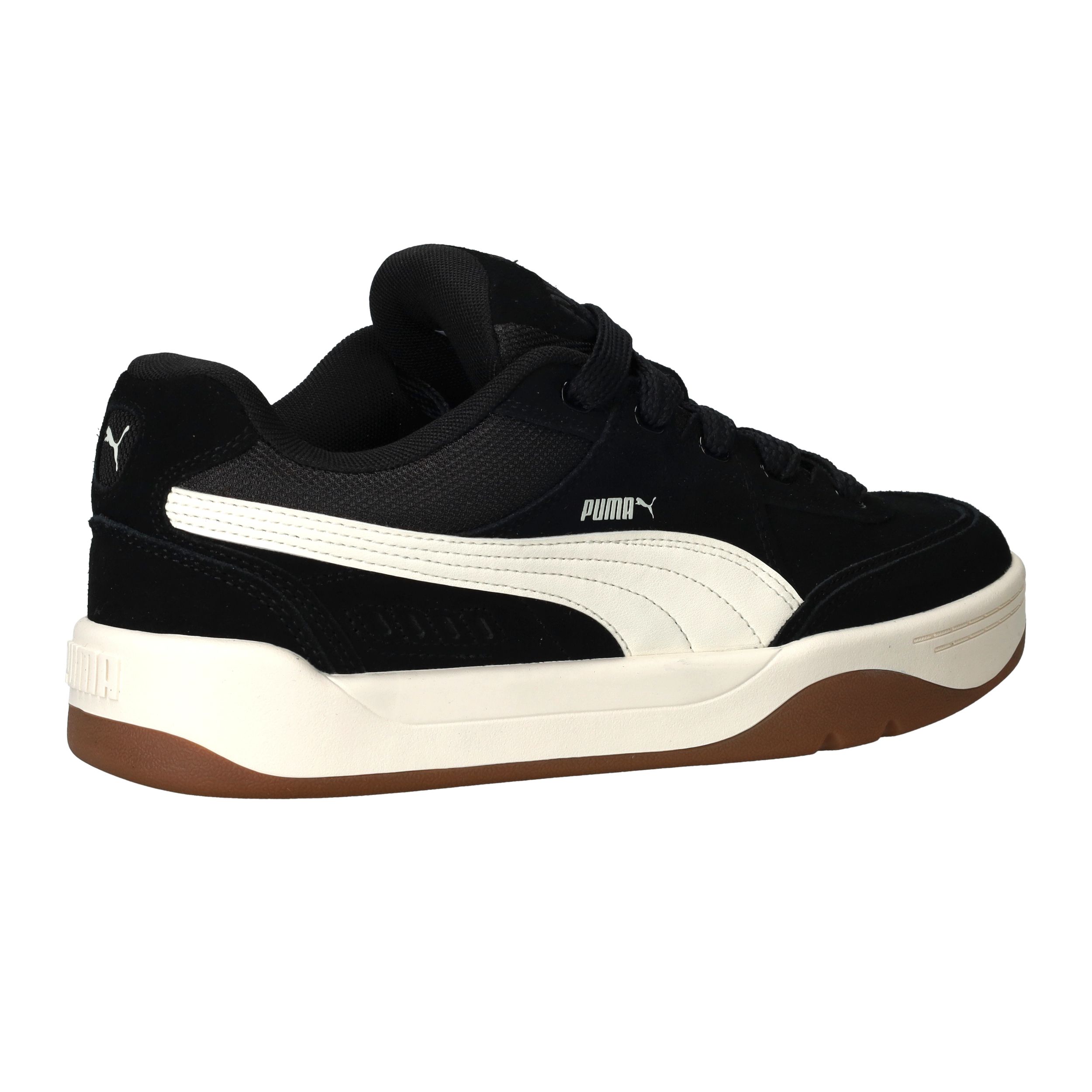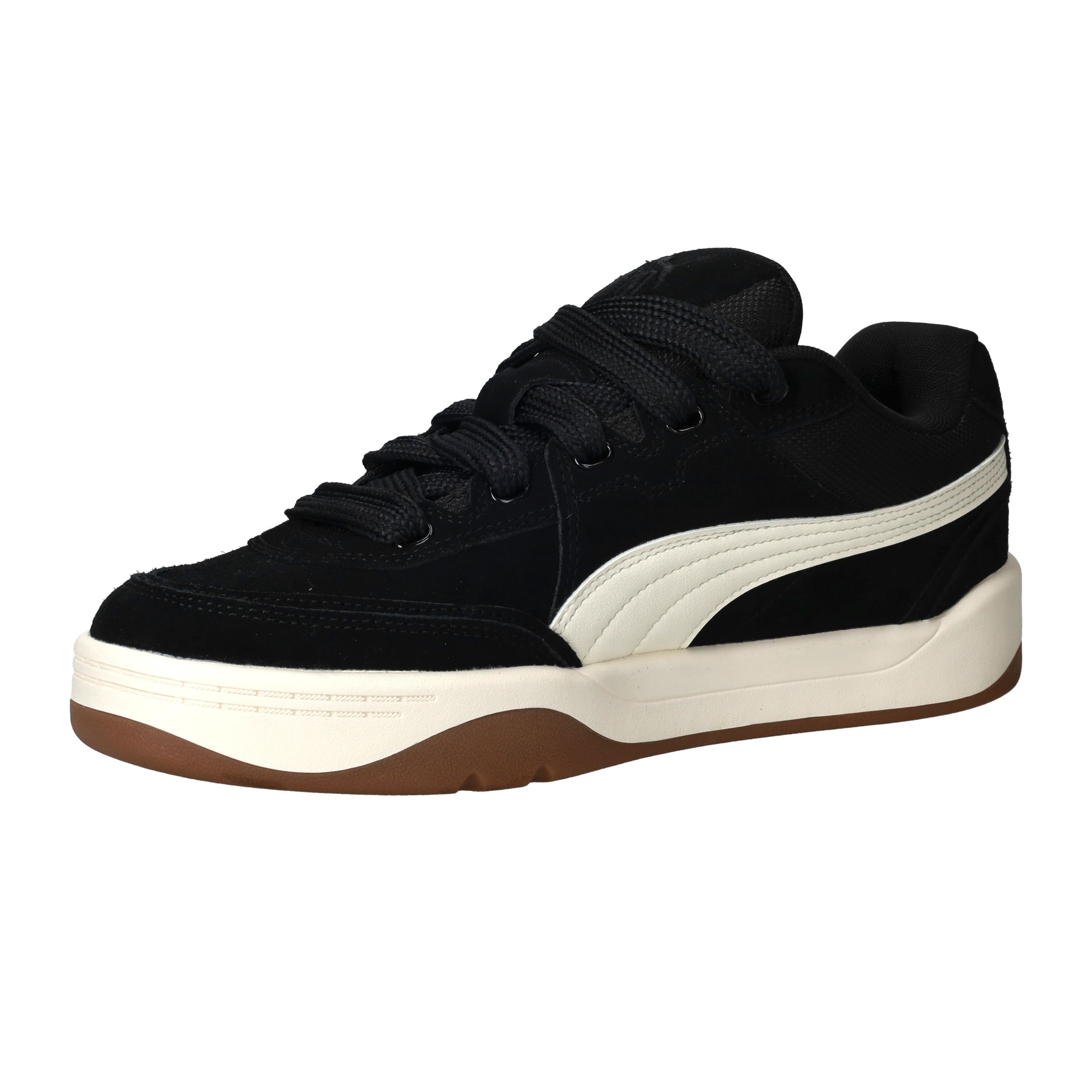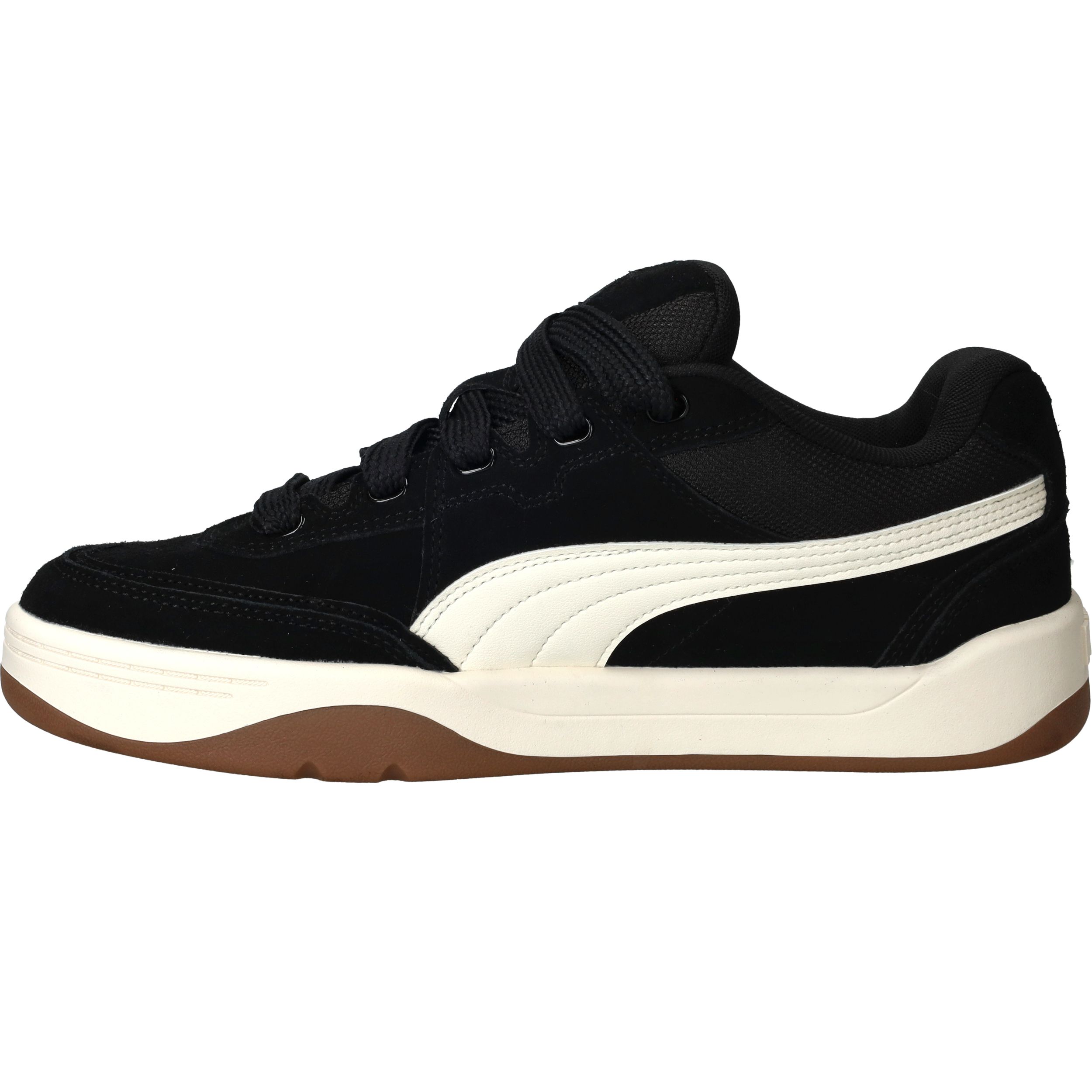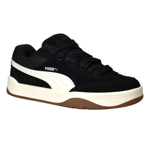 Gave zwarte Puma Park Lifestyle SK8 SD sneaker voor heren gemaakt van suède. De sneaker is extra breed gevoerd en heeft een brede katoenen veter.