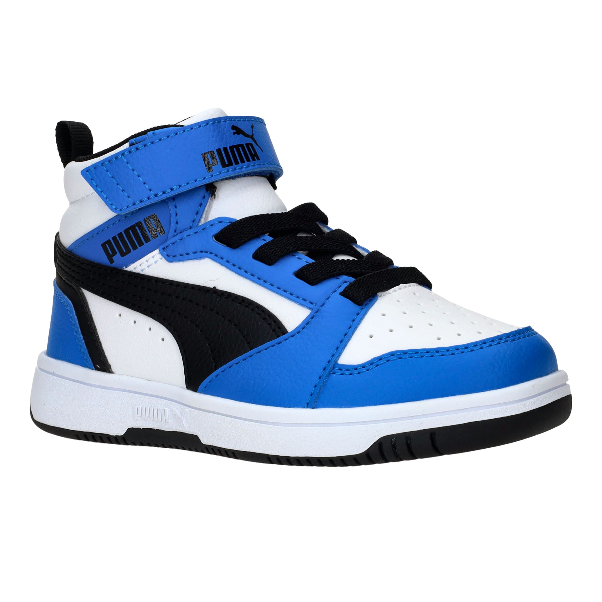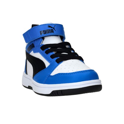 Met deze blauwe sneakers van Puma zit jouw jongen er sportief én comfortabel bij. De Rebound V6 Mid is uitgevoerd in verschillende tinten blauw met een frisse witte zool. Het halfhoge model met klittenband zorgt voor optimale ondersteuning en een gemakkelijke instap. Gemaakt van onderhoudsvriendelijk kunstleer, ideaal voor elke dag.
