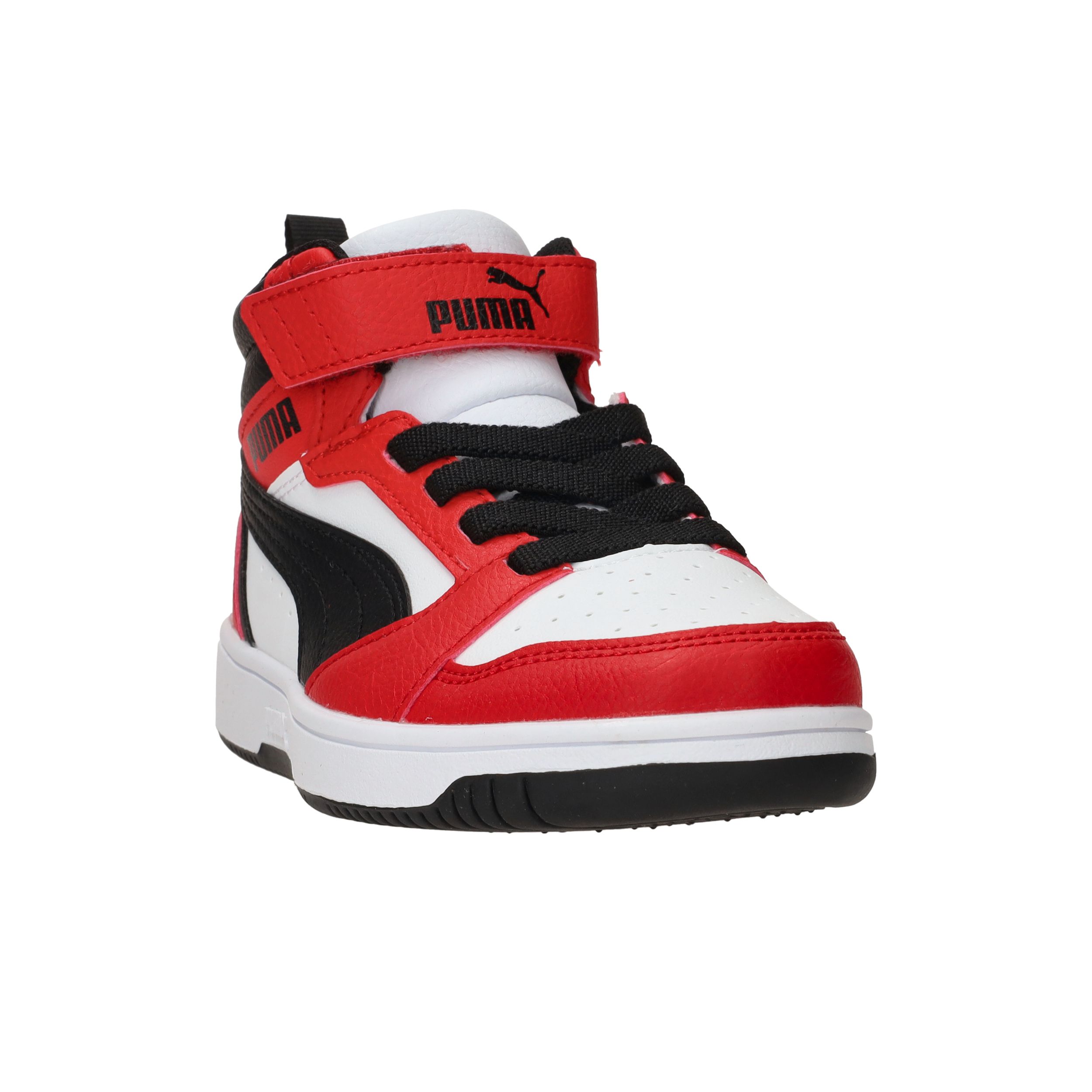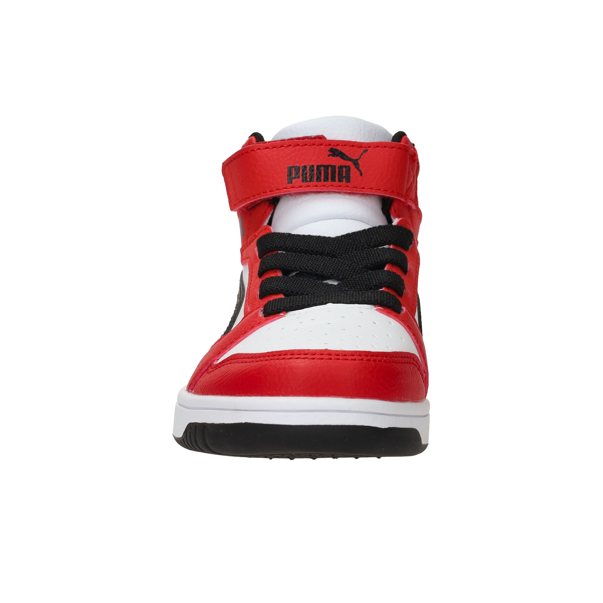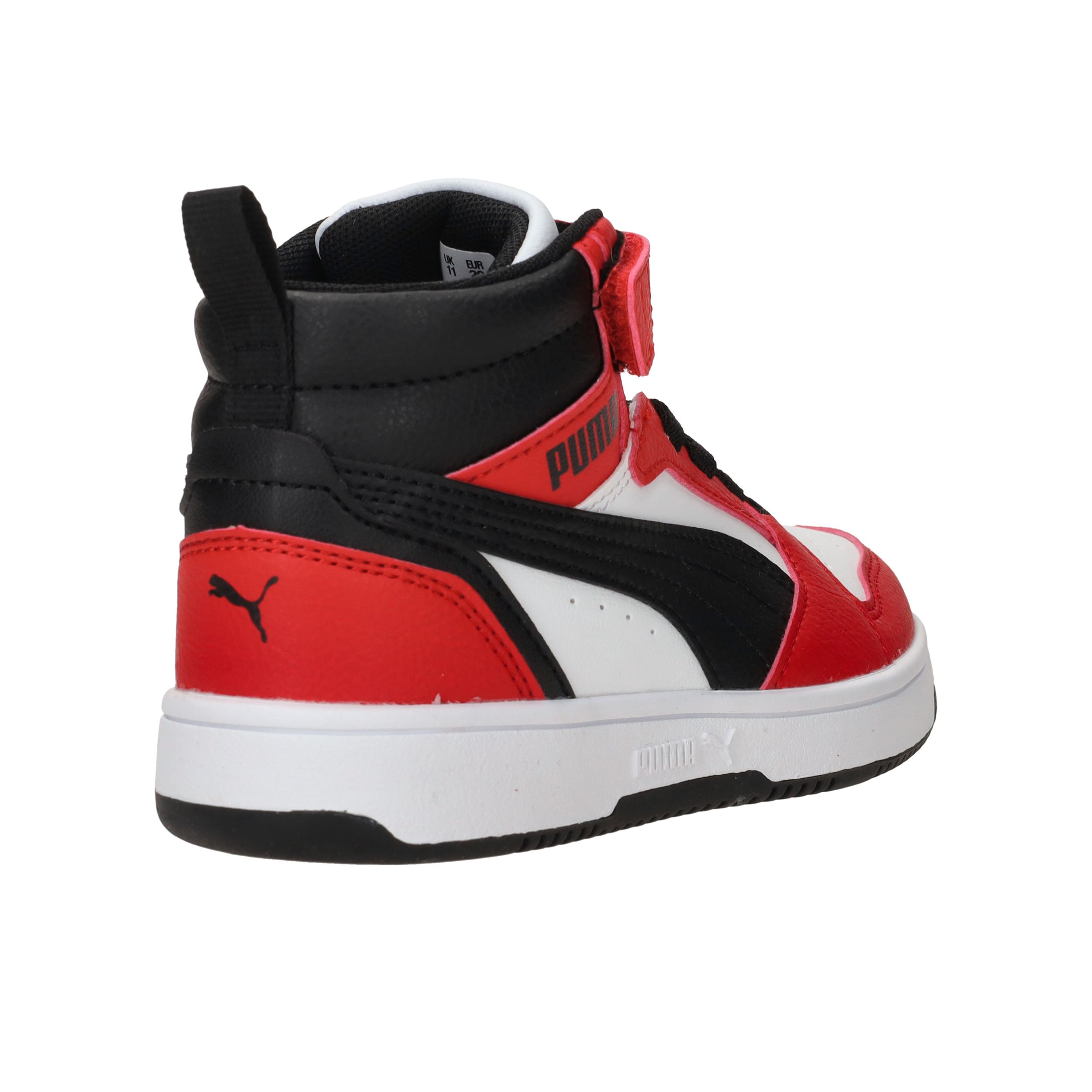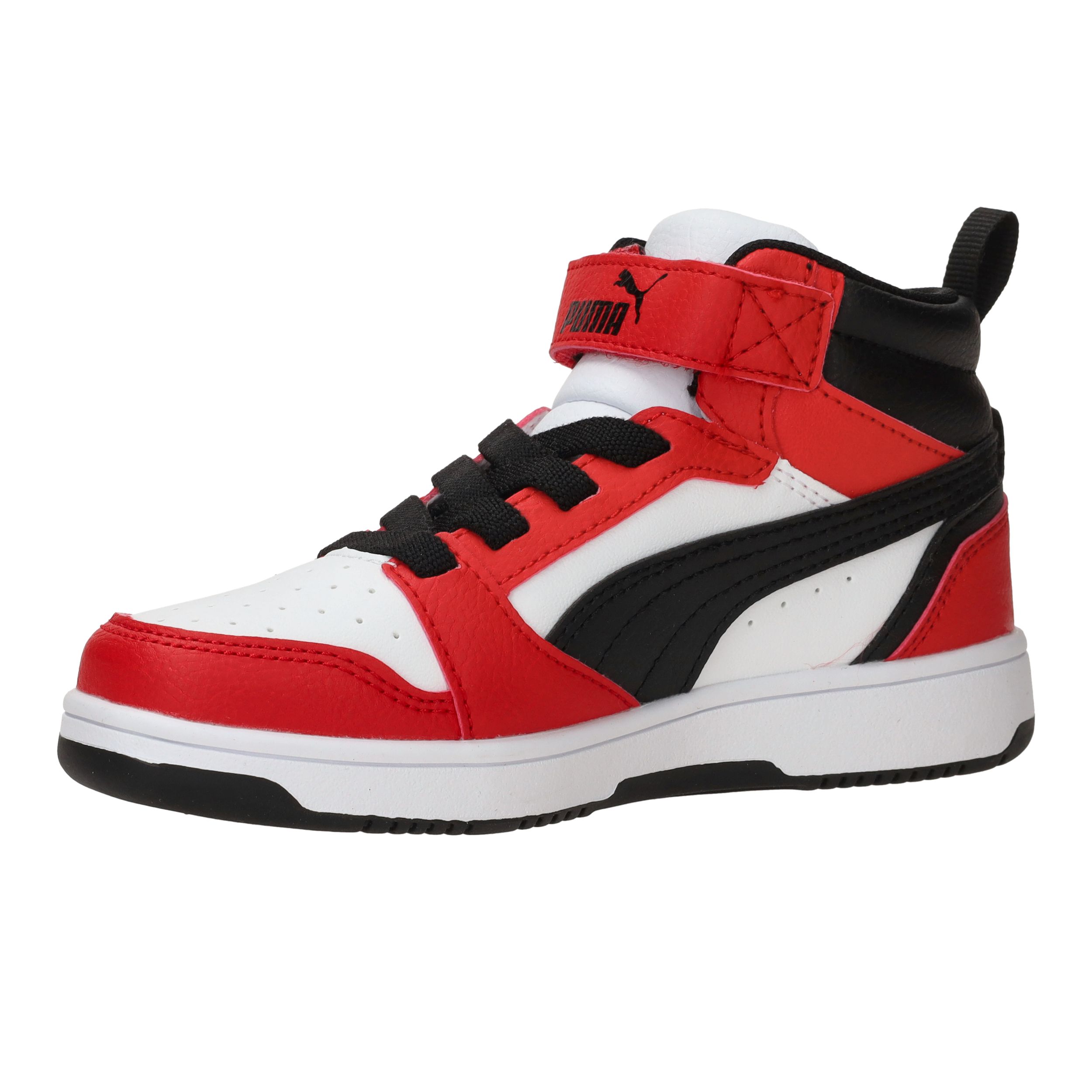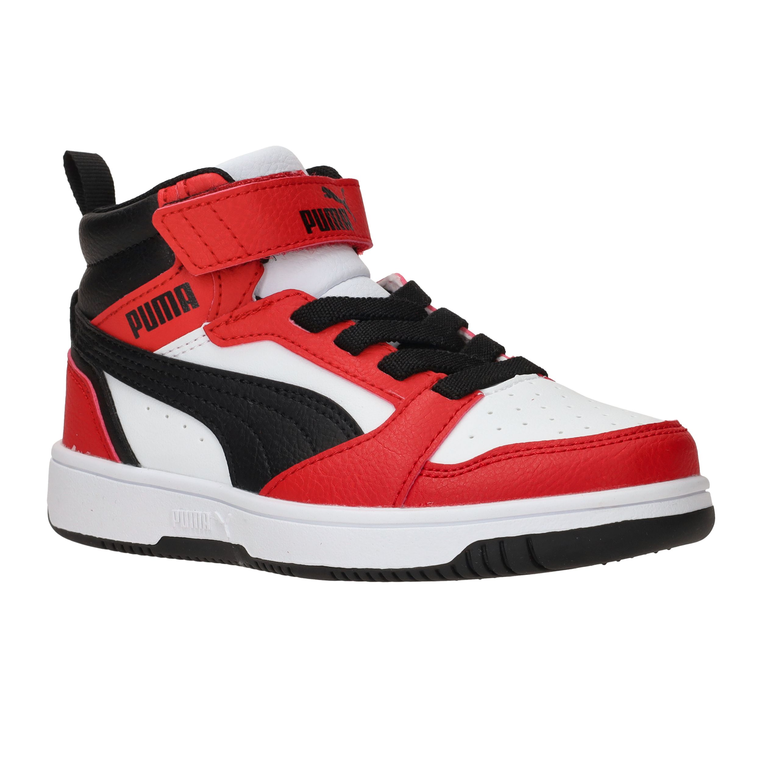 De sneakers van Puma zijn stoer, sportief én praktisch. Deze Rebound V6 Mid is uitgevoerd in rood, wit en zwart en heeft een comfortabele pasvorm voor jongens. Dankzij de hoge schacht en de stevige sneaker-stijl met klittenbandsluiting zijn ze makkelijk aan te trekken en bieden ze extra steun bij het spelen en rennen. Het kunstleer is stevig en onderhoudsvriendelijk.