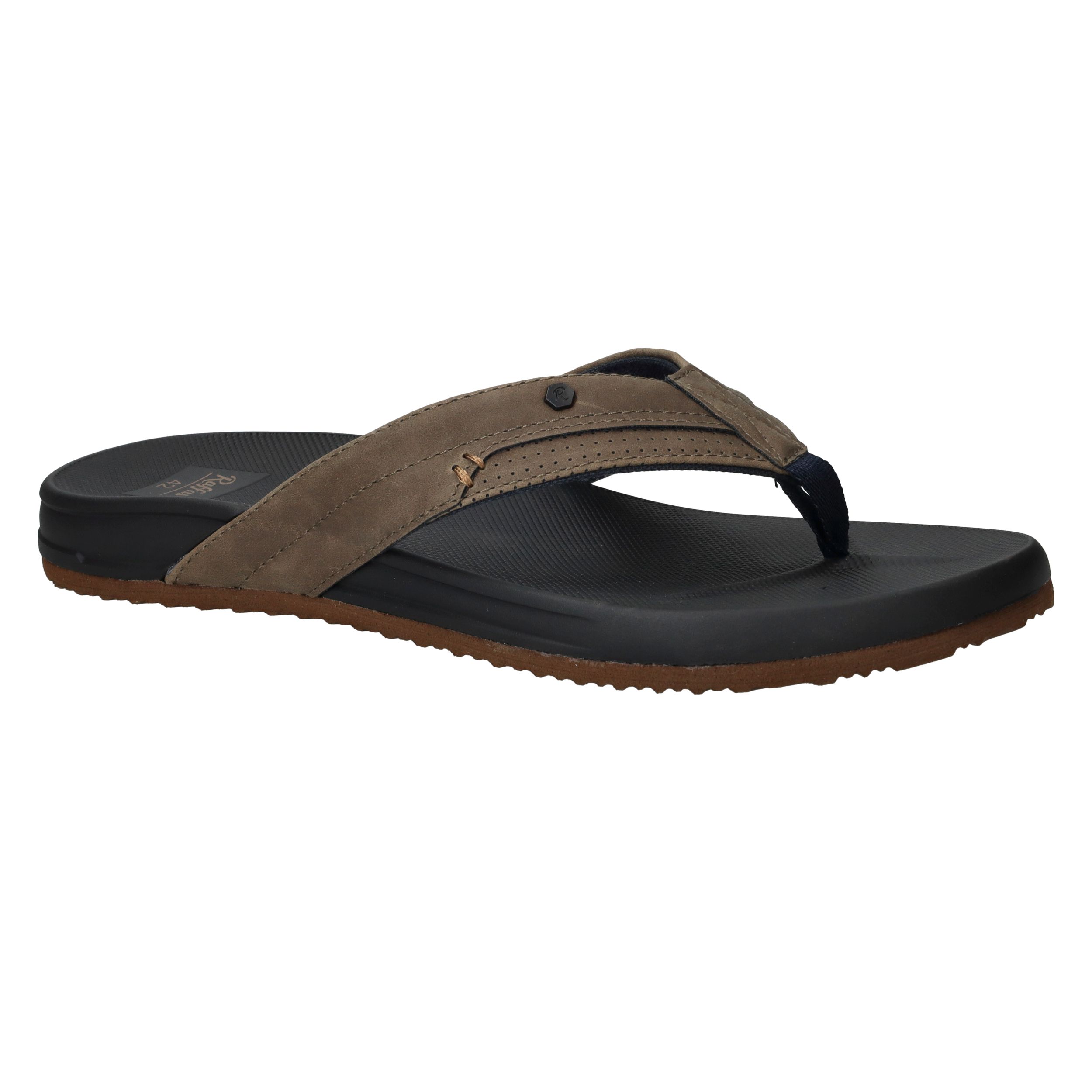 Deze casual heren slippers van Raffas zijn de perfecte keuze voor zomerse dagen. Het khaki kunstleer in combinatie met het zwarte voetbed geeft een stoere, moderne uitstraling. Dankzij de normale voetbreedte G en de zachte afwerking bieden deze slippers direct comfort vanaf het eerste moment dat je instapt.