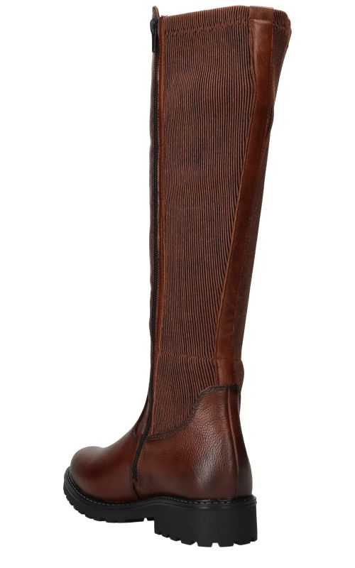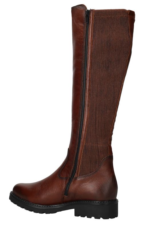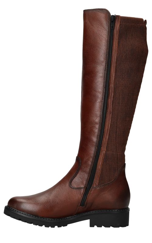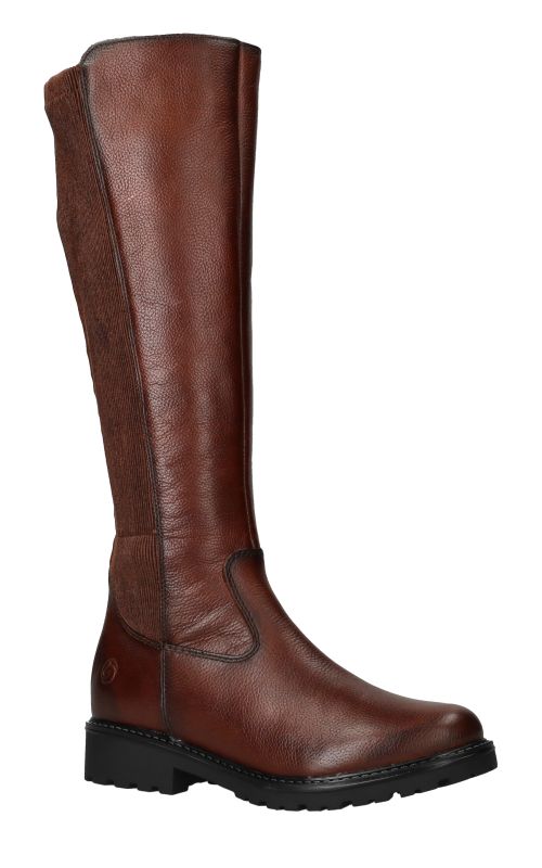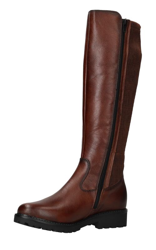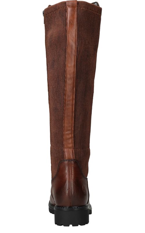 Deze stijlvolle Remonte laarzen in bruin leer en kunstleer zijn een tijdloze aanvulling op je schoenencollectie. De hoge schacht met vario-inzet zorgt voor een elegante pasvorm die zich aanpast aan verschillende kuitbreedtes. Dankzij de stevige zool geniet je van stabiliteit en comfort. Met de comfortabele voetbreedte G zijn deze laarzen ideaal voor dames die praktisch gemak en stijl willen combineren.