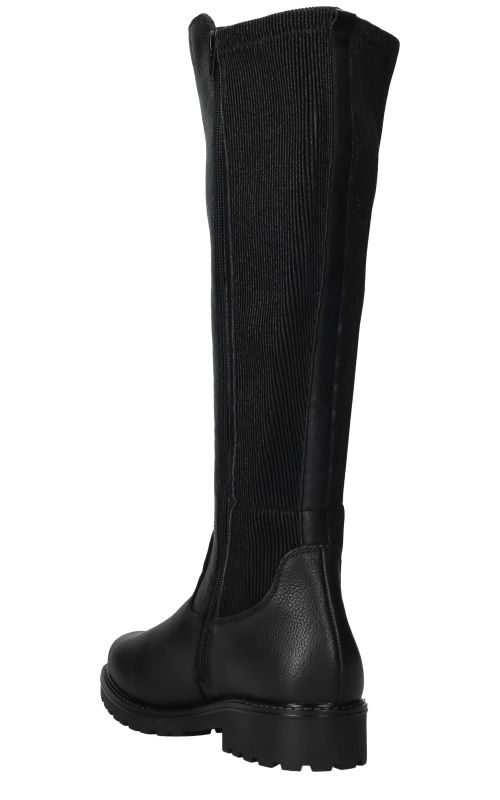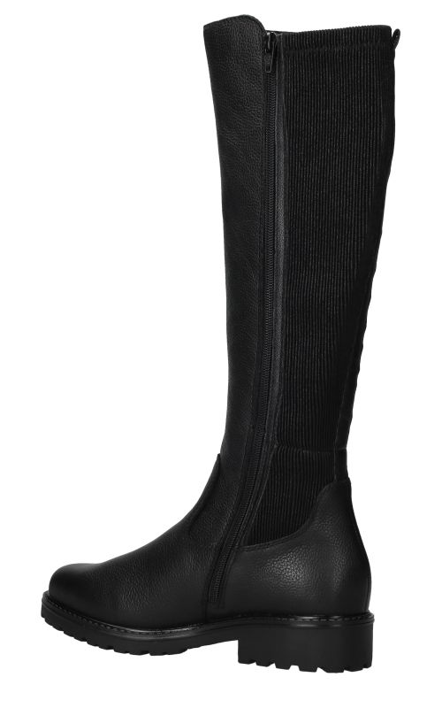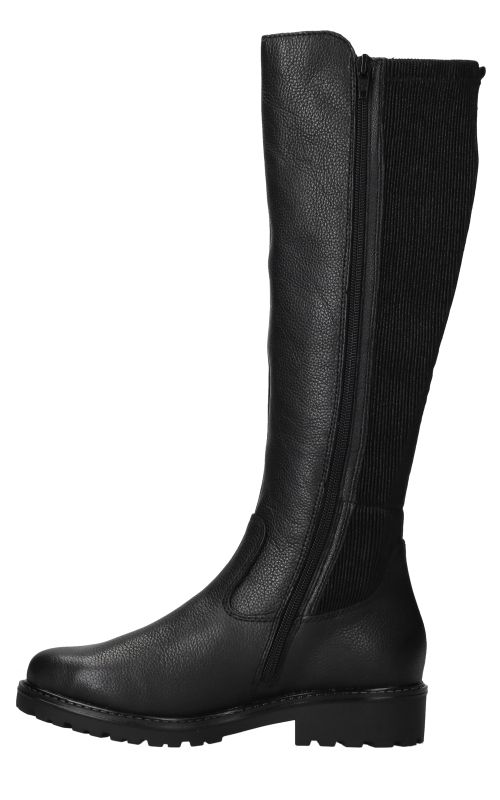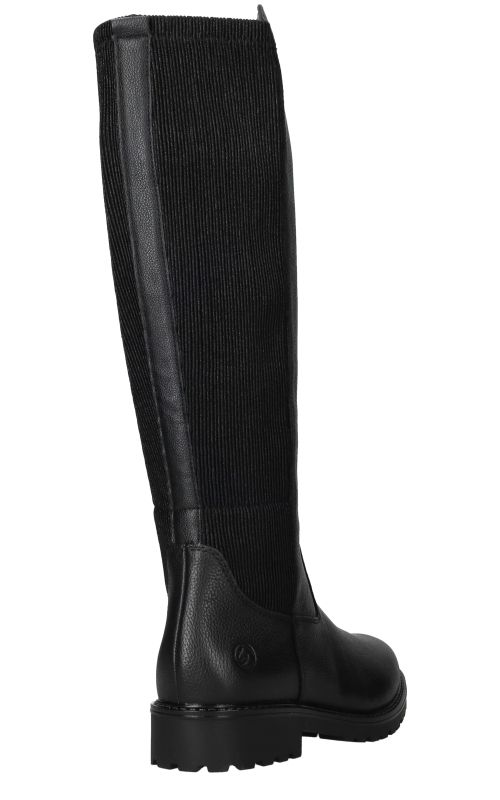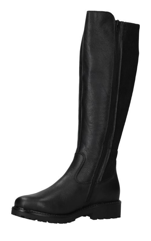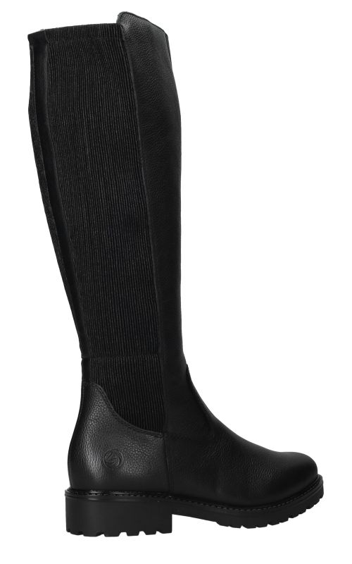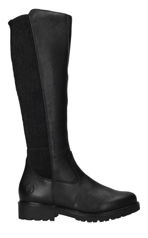 Deze elegante Remonte laarzen in zwart leer en kunstleer zijn een tijdloze keuze met een moderne twist. De hoge schacht met vario-inzet zorgt voor een perfecte pasvorm bij verschillende kuitbreedtes. De stevige zool biedt grip en stabiliteit, terwijl de comfortabele voetbreedte G zorgt voor draagcomfort. Perfect voor dames die kiezen voor elegantie en praktisch gemak.