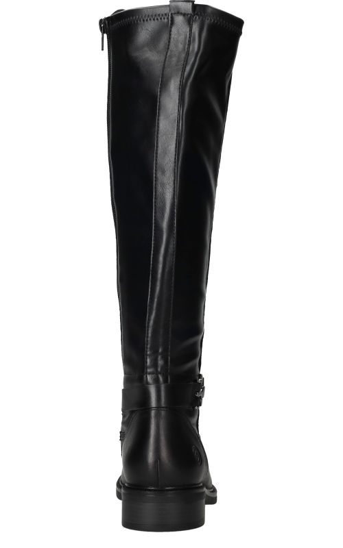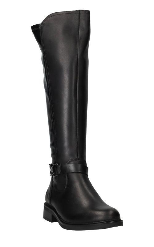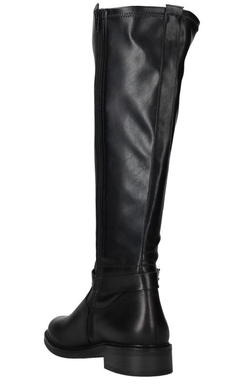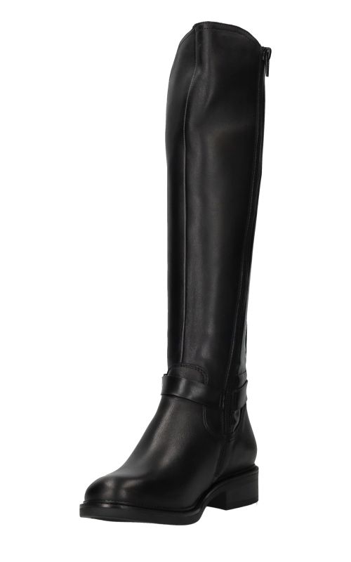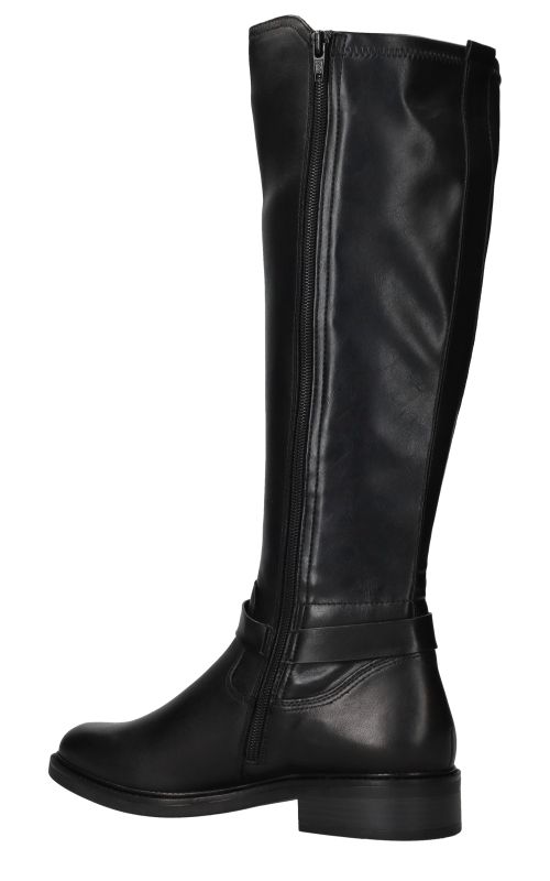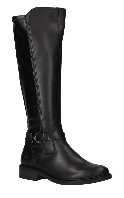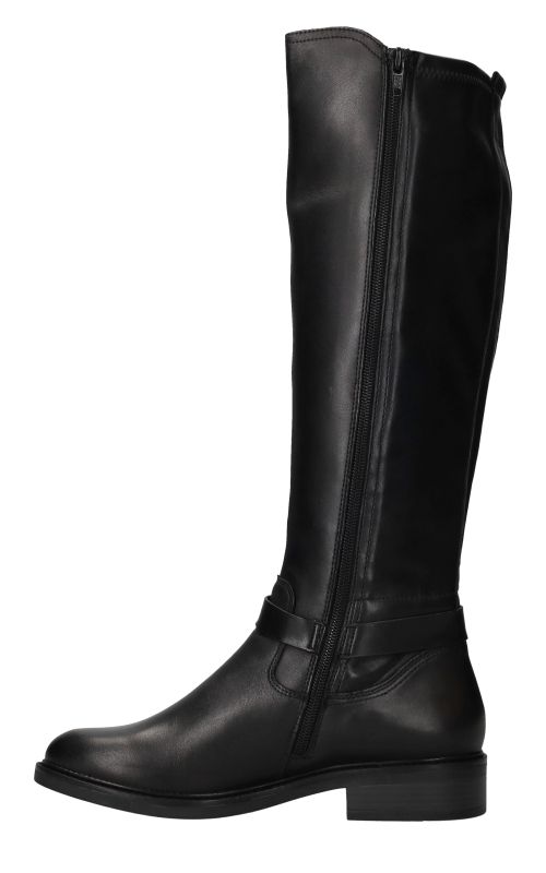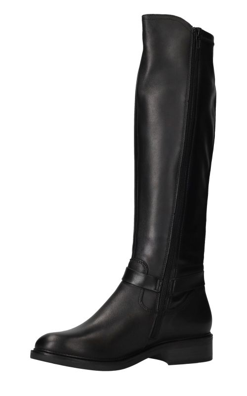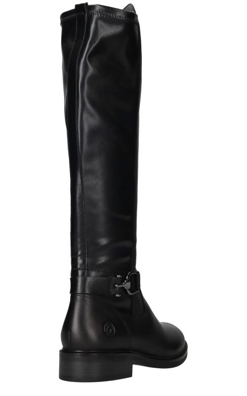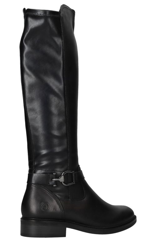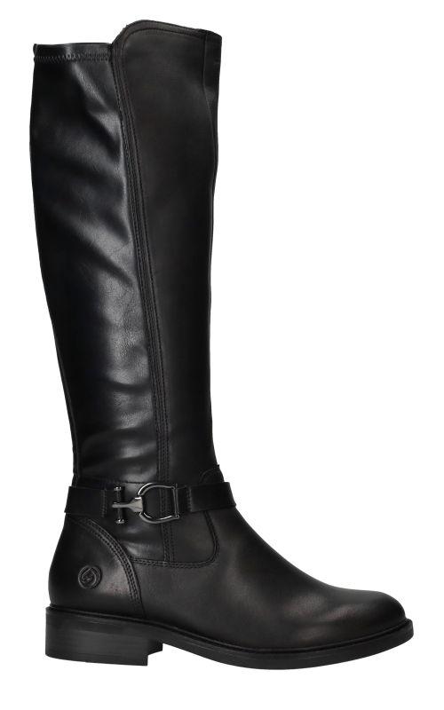 Deze elegante Remonte laarzen in zwart leer en kunstleer zijn een tijdloze keuze voor modebewuste vrouwen. De hoge schacht geeft een klassieke en stijlvolle uitstraling, terwijl de stevige zool zorgt voor stabiliteit. Dankzij de comfortabele voetbreedte G en de vario-inzet sluiten de laarzen mooi aan bij verschillende kuitbreedtes. Perfect voor dames die elegantie en comfort willen combineren.