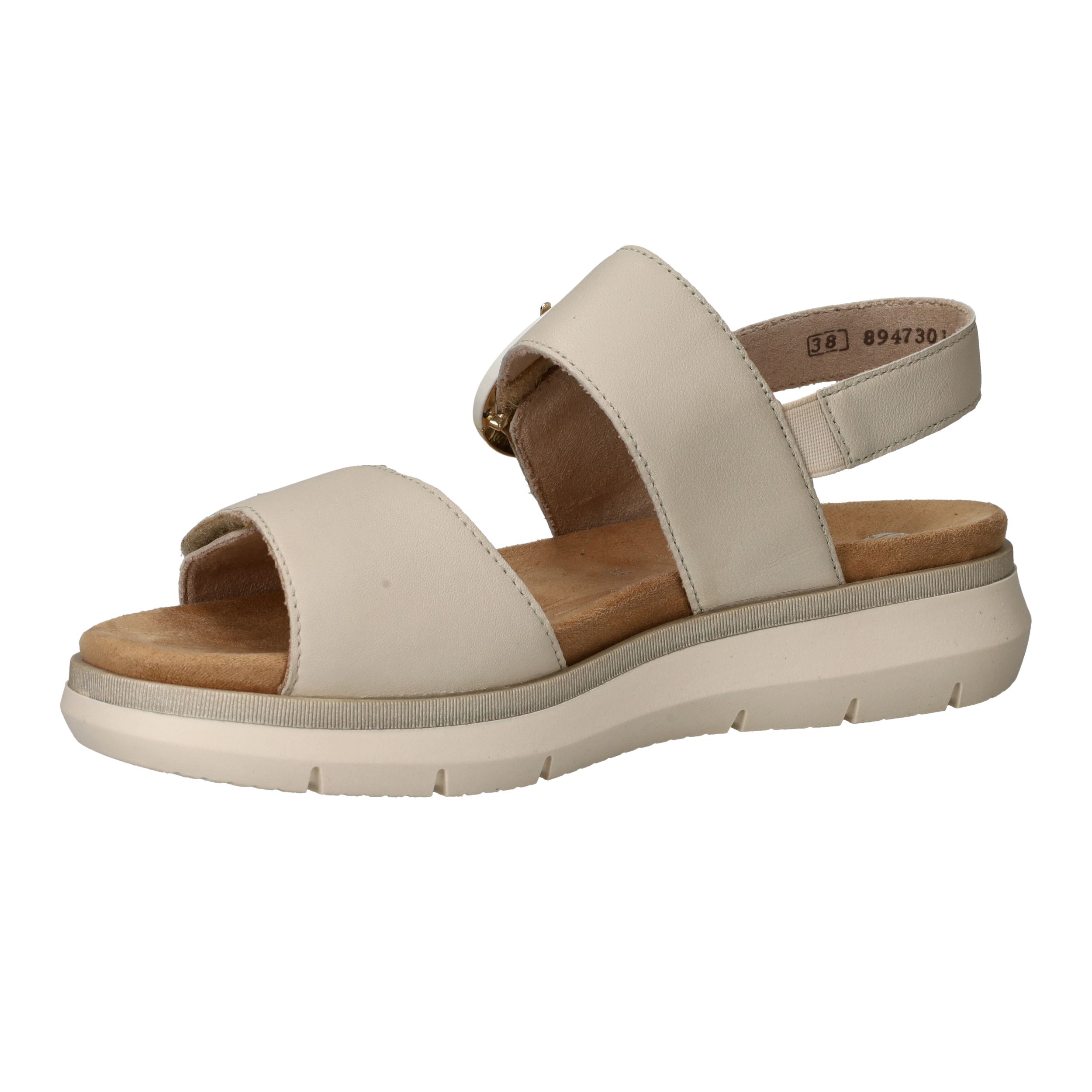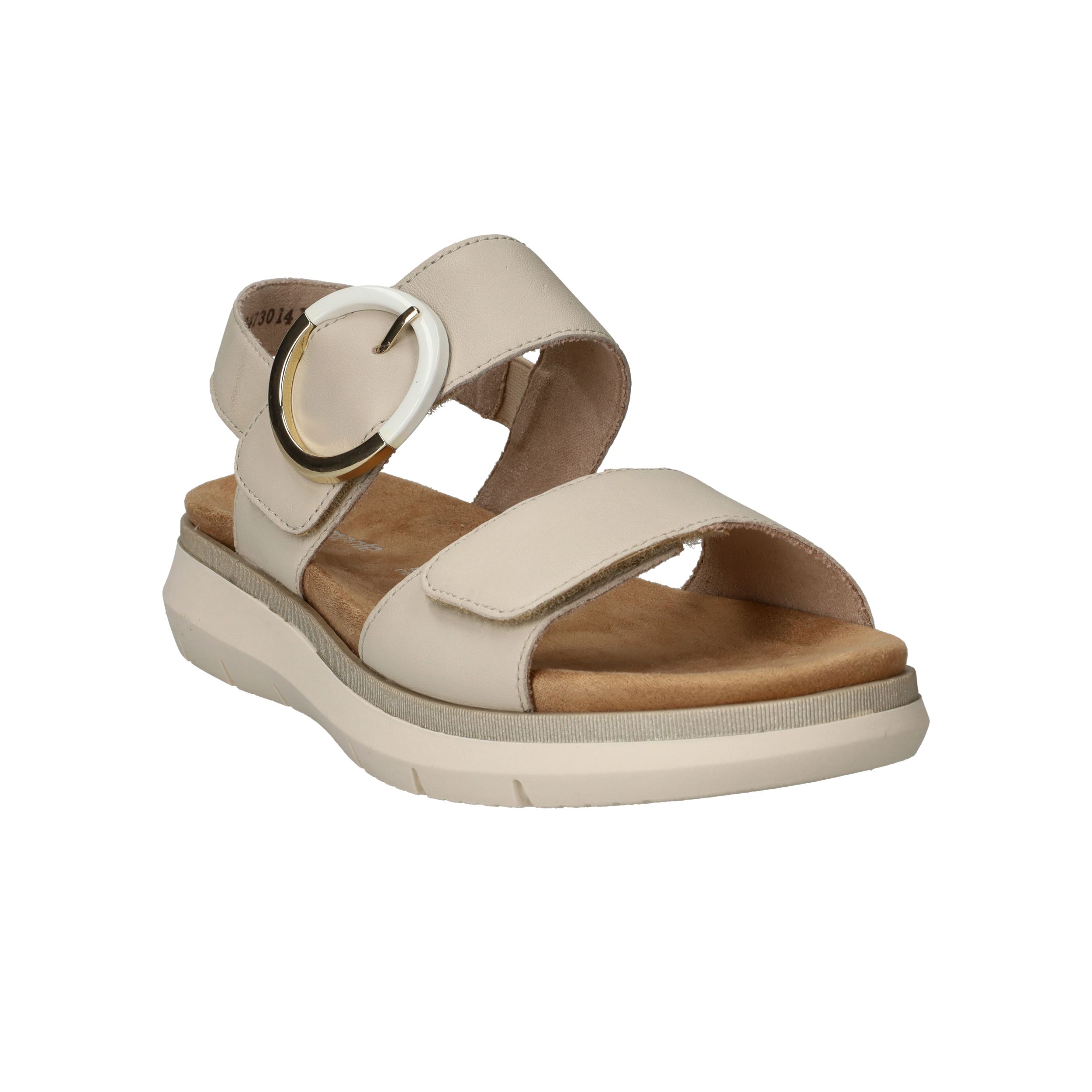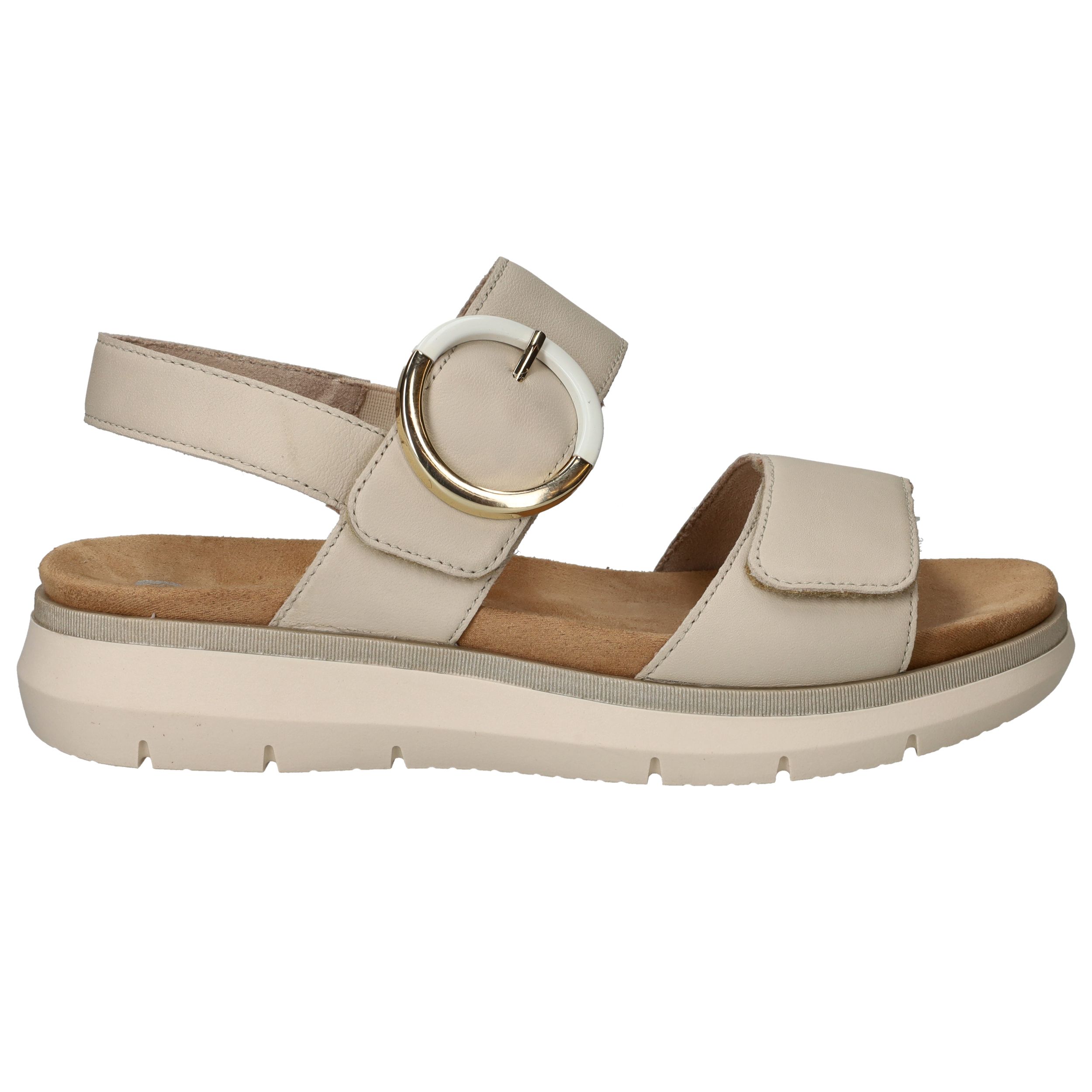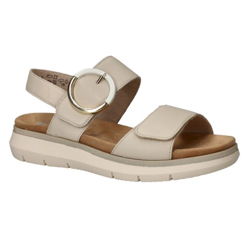Deze beige sandalen van Remonte zijn ideaal voor dames die comfort zoeken zonder in te leveren op stijl. De leren banden voelen soepel aan en sluiten mooi aan op de voet. De lichte zool en het zachte voetbed zorgen voor langdurig draagplezier, of je nu naar het terras gaat of een dagje op pad bent.