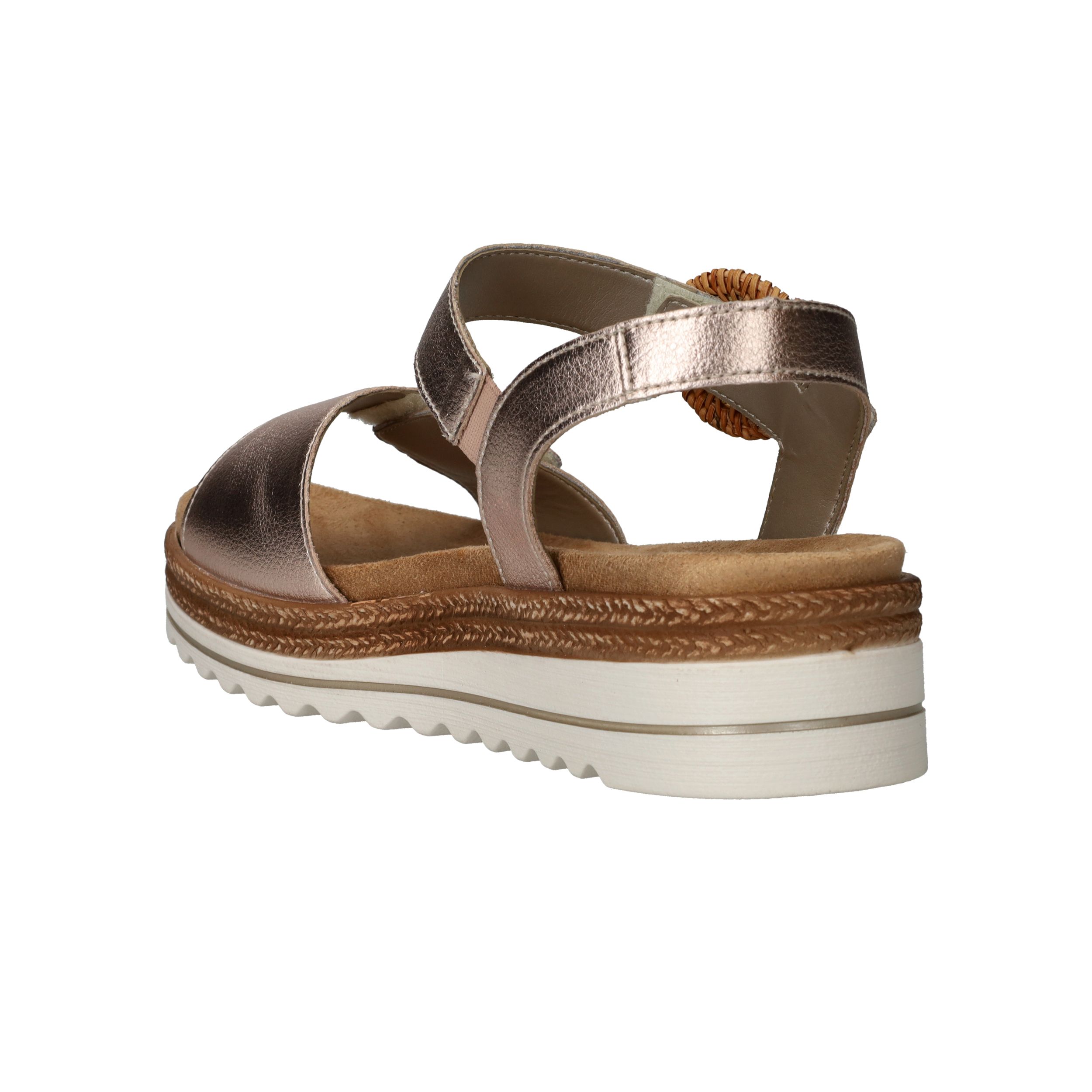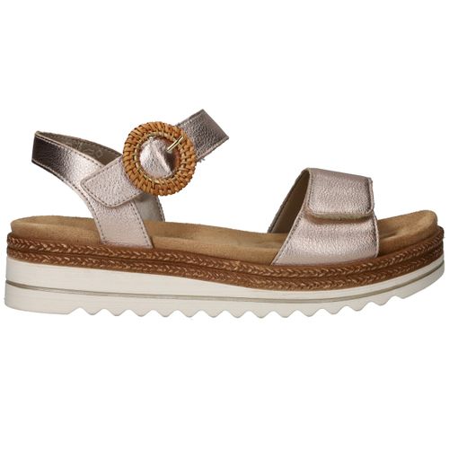 Trendy Remonte sandaal in een fantastische metallic roze kleur! De sandaal is gemaakt van leer.
