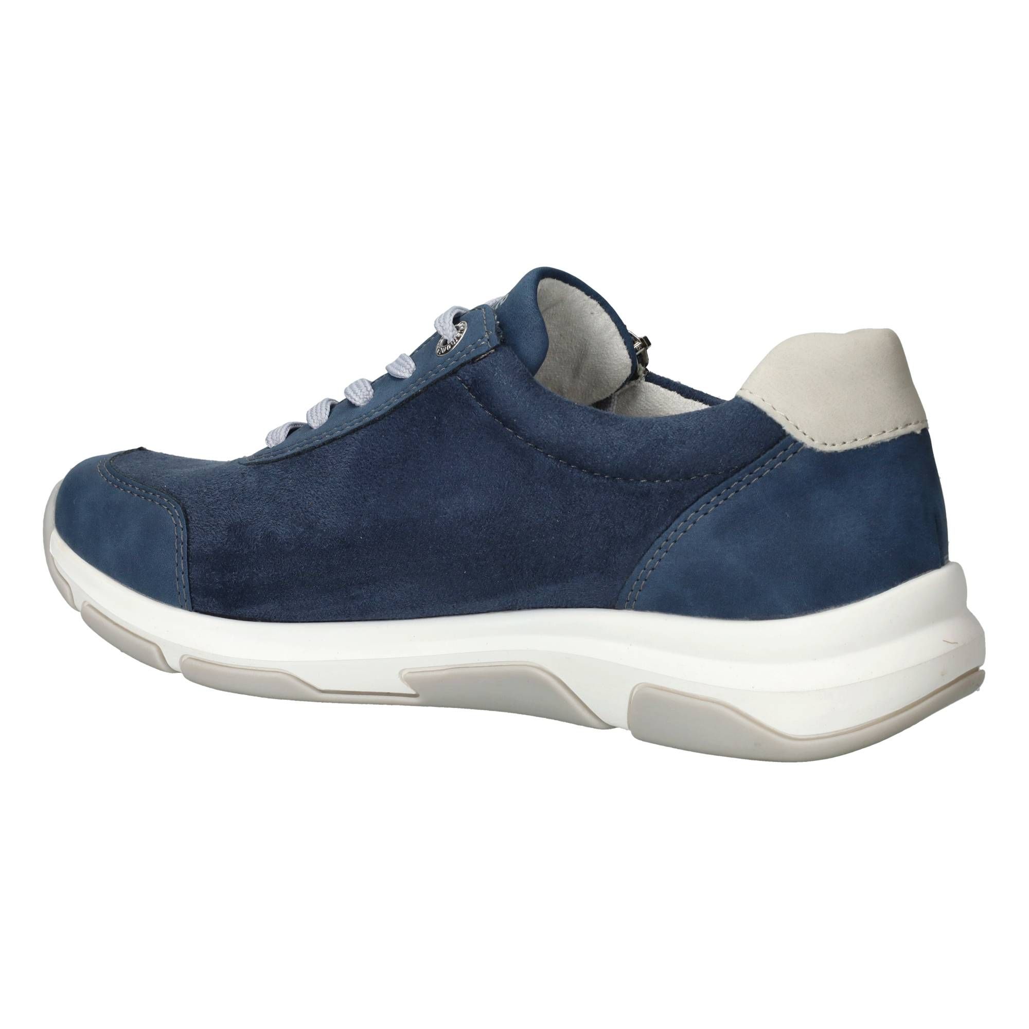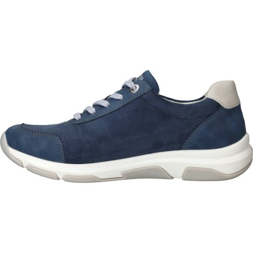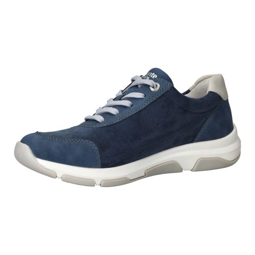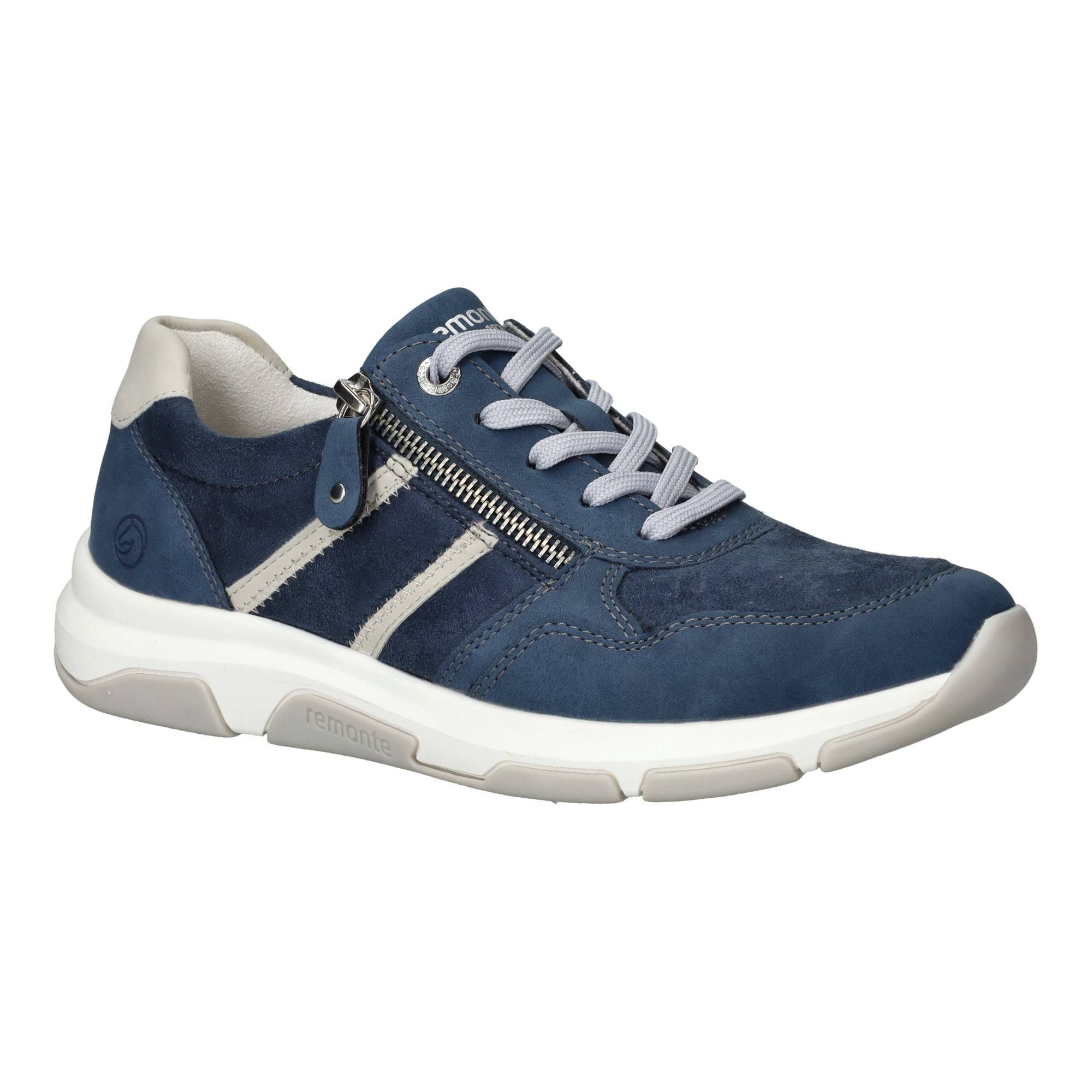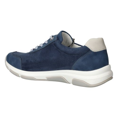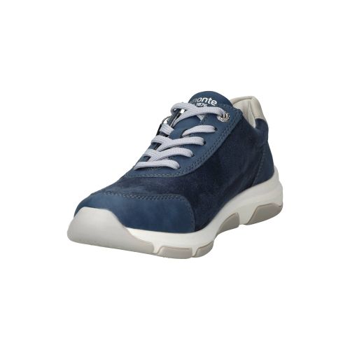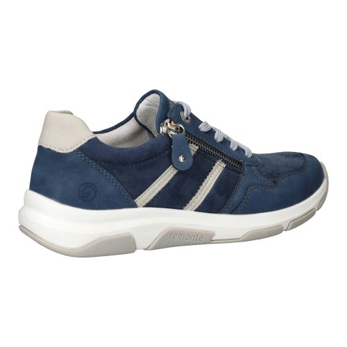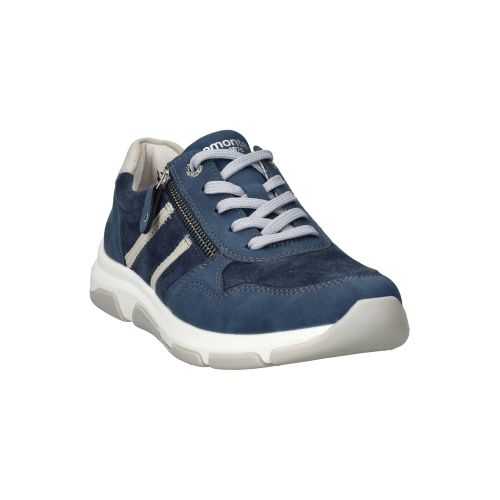 Sportieve Remonte sneaker in blauw tinten. De damessneaker is gedeeltelijk gemaakt van stretchmateriaal waardoor de voet meer ruimte krijgt.