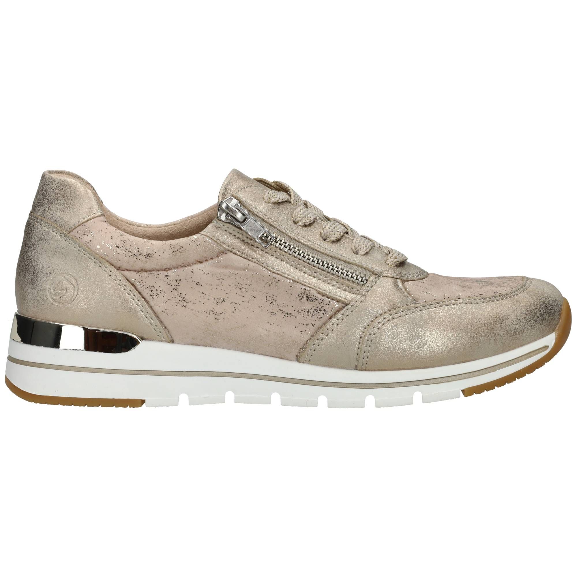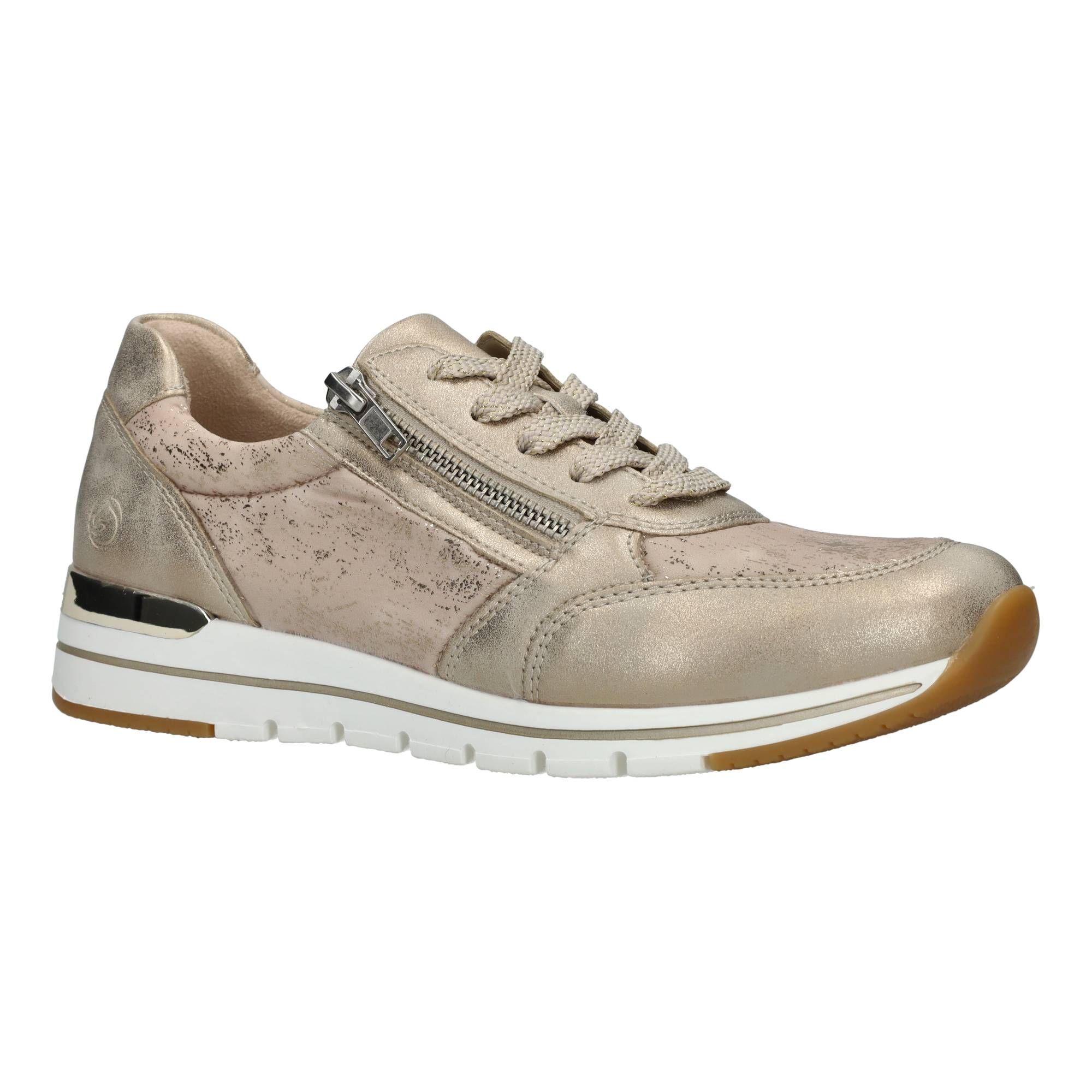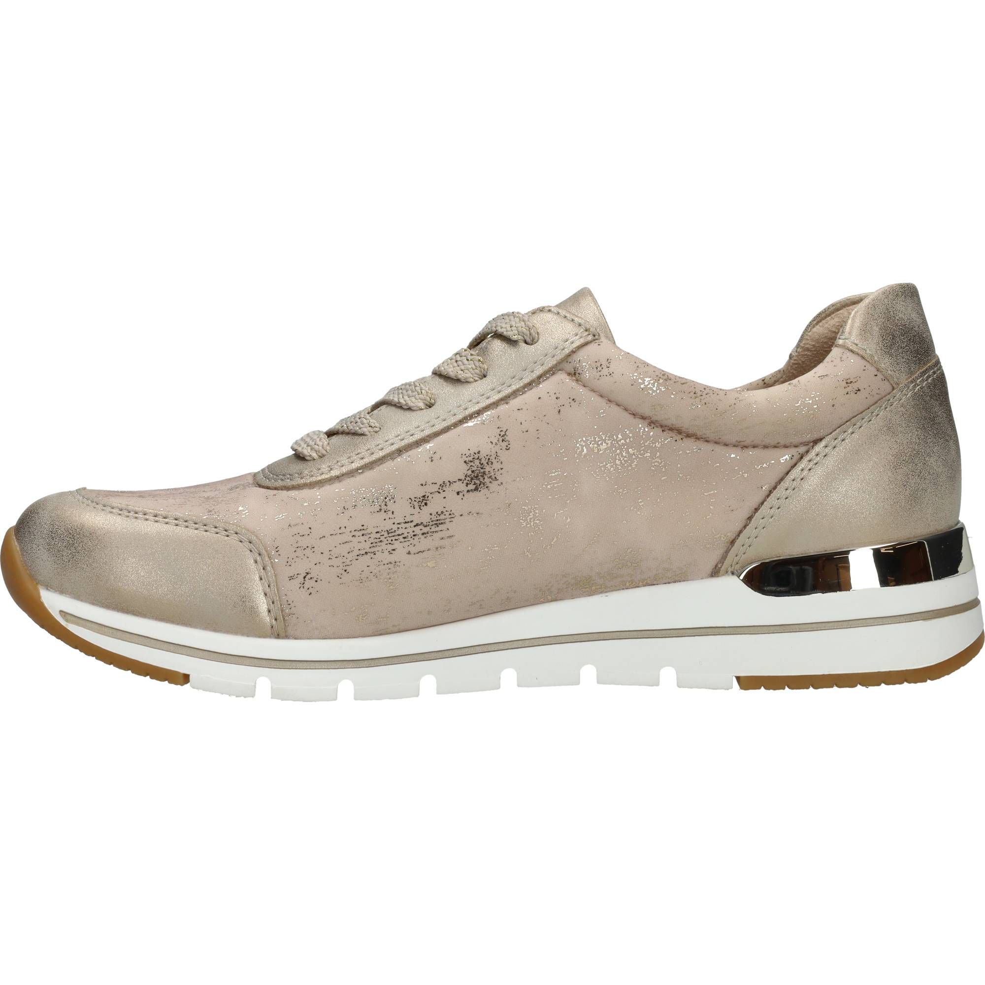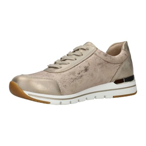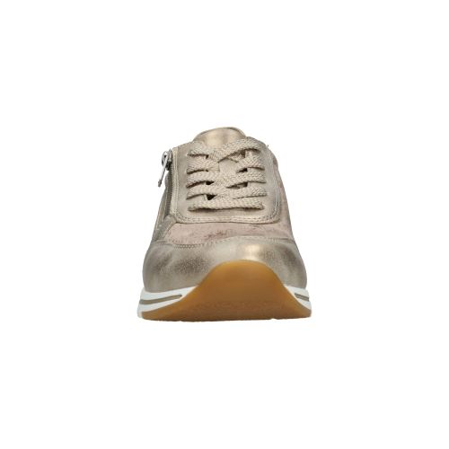 Deze Remonte sneaker voor dames heeft een stralende gouden kleur en metallic gouden accenten.