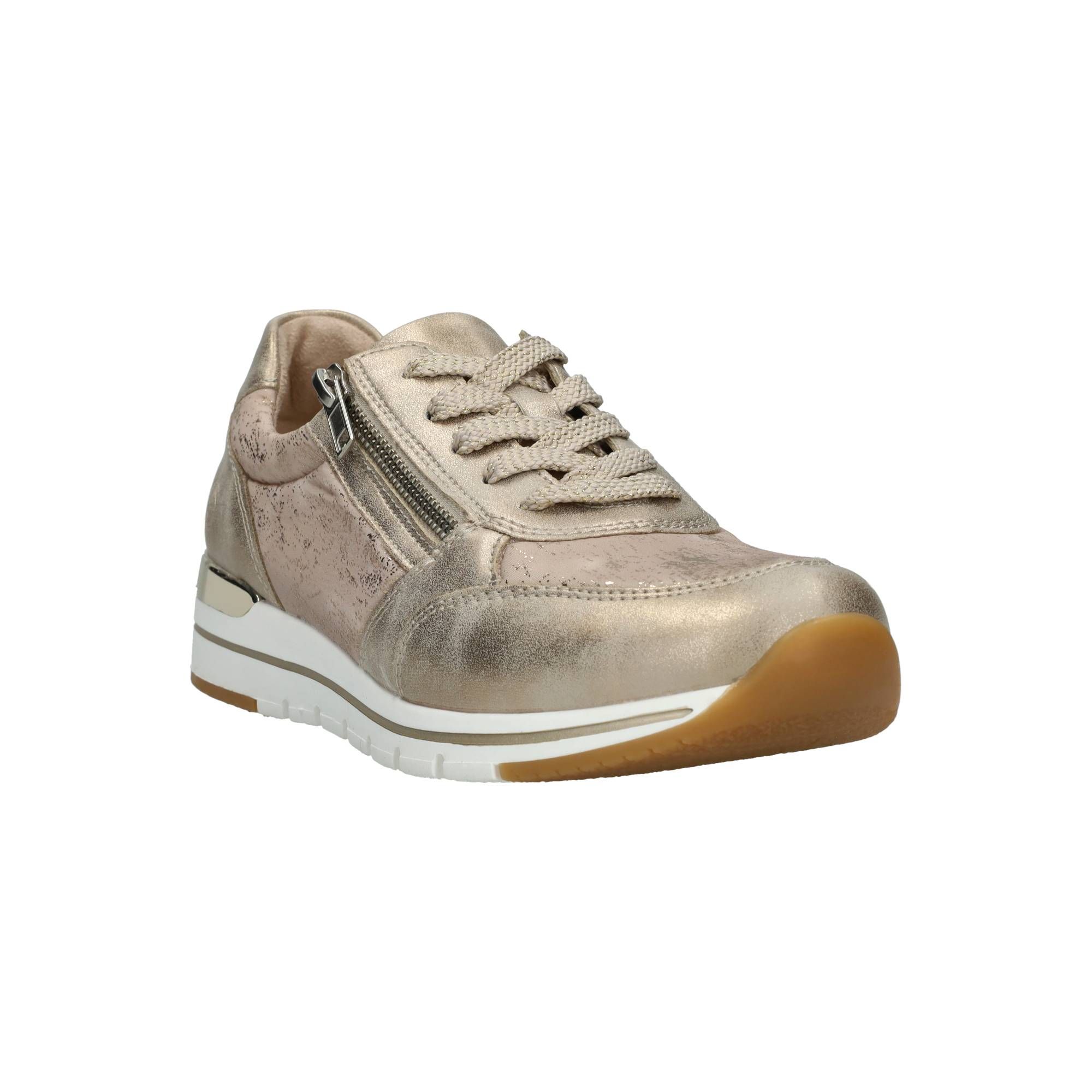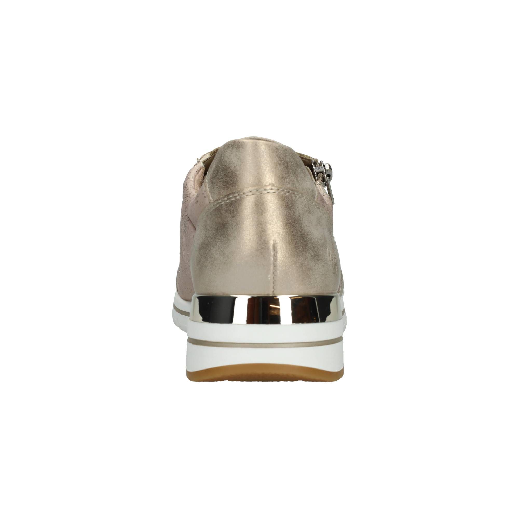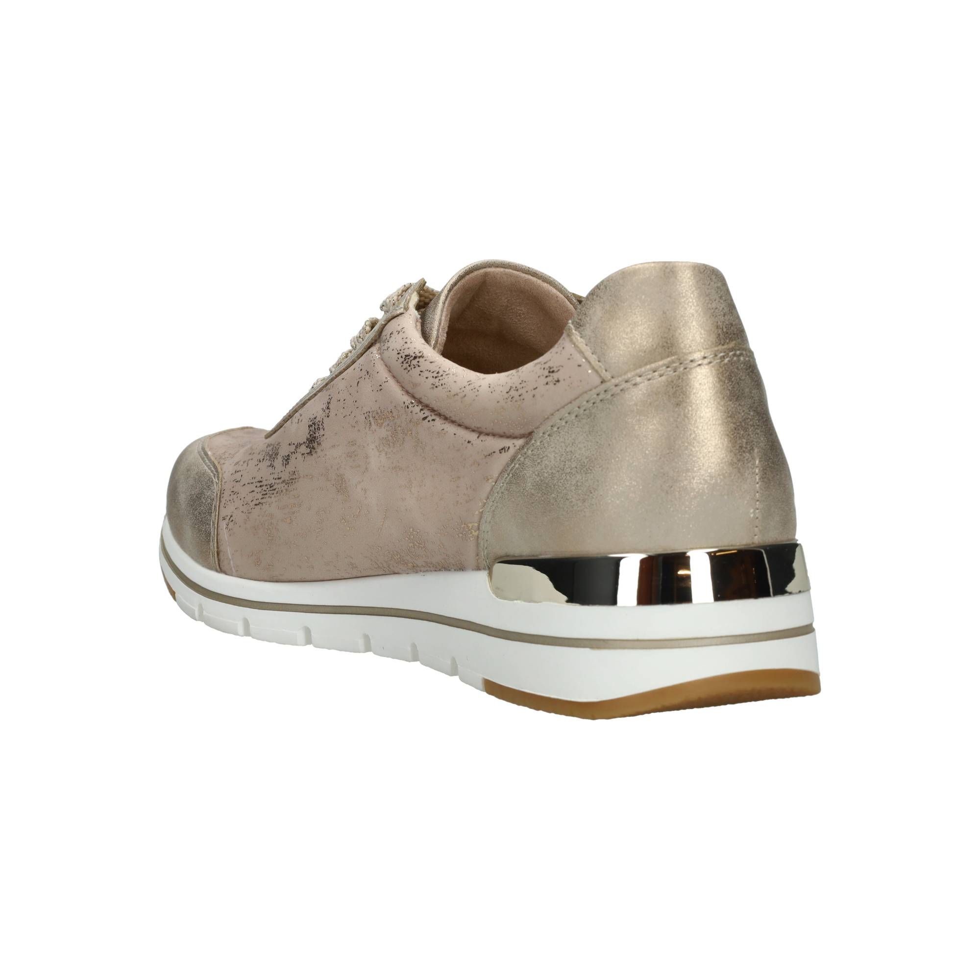 Deze Remonte sneaker voor dames heeft een stralende gouden kleur en metallic gouden accenten.
