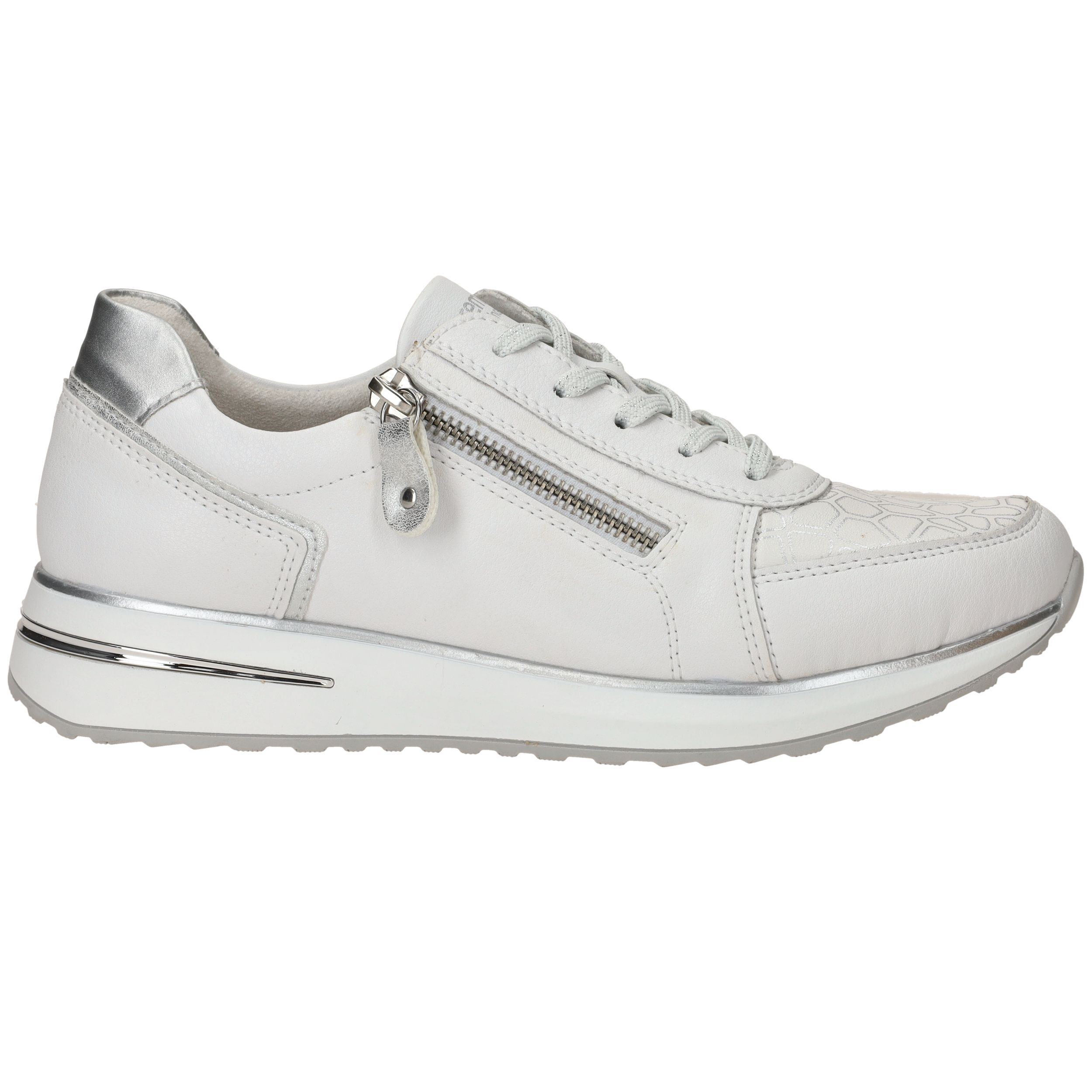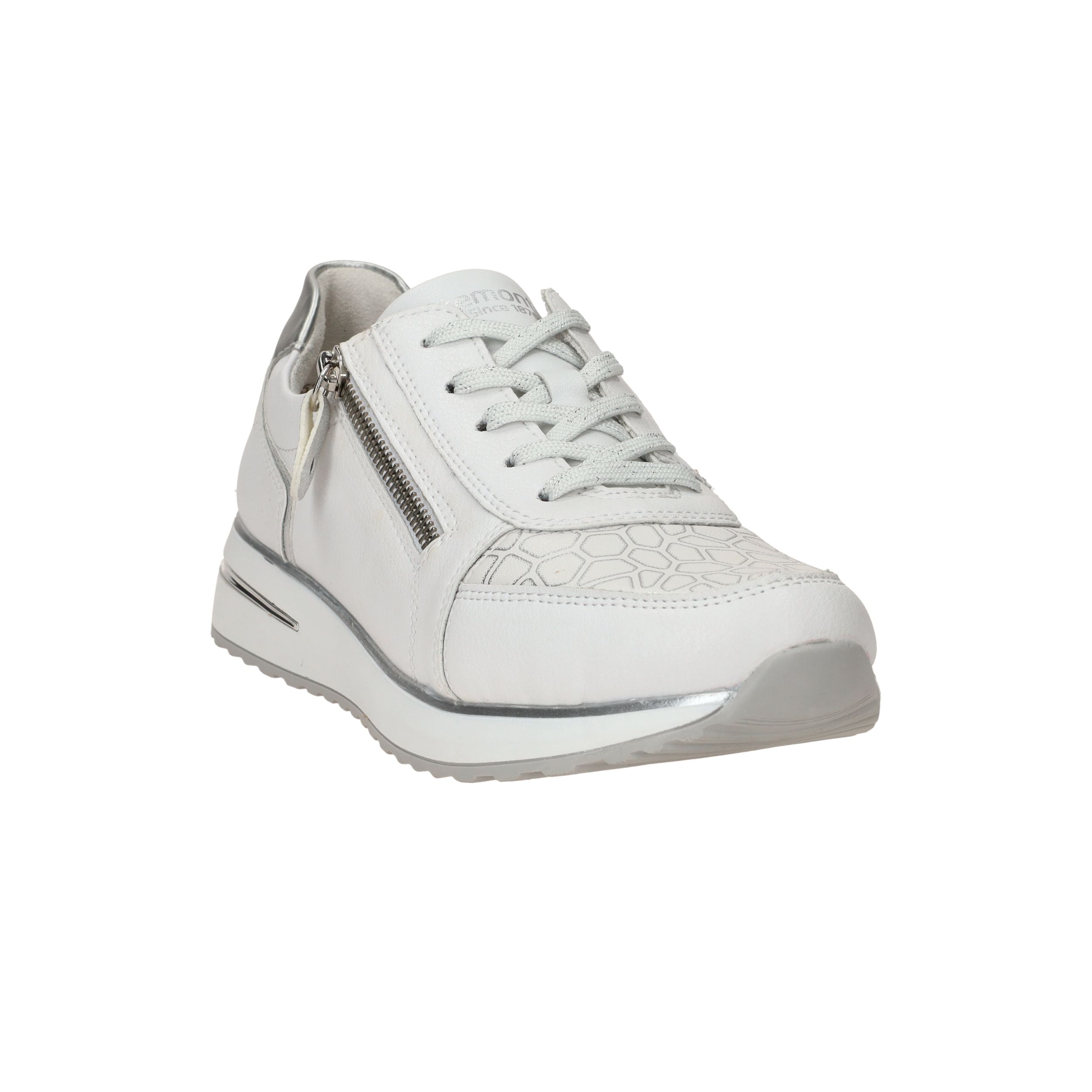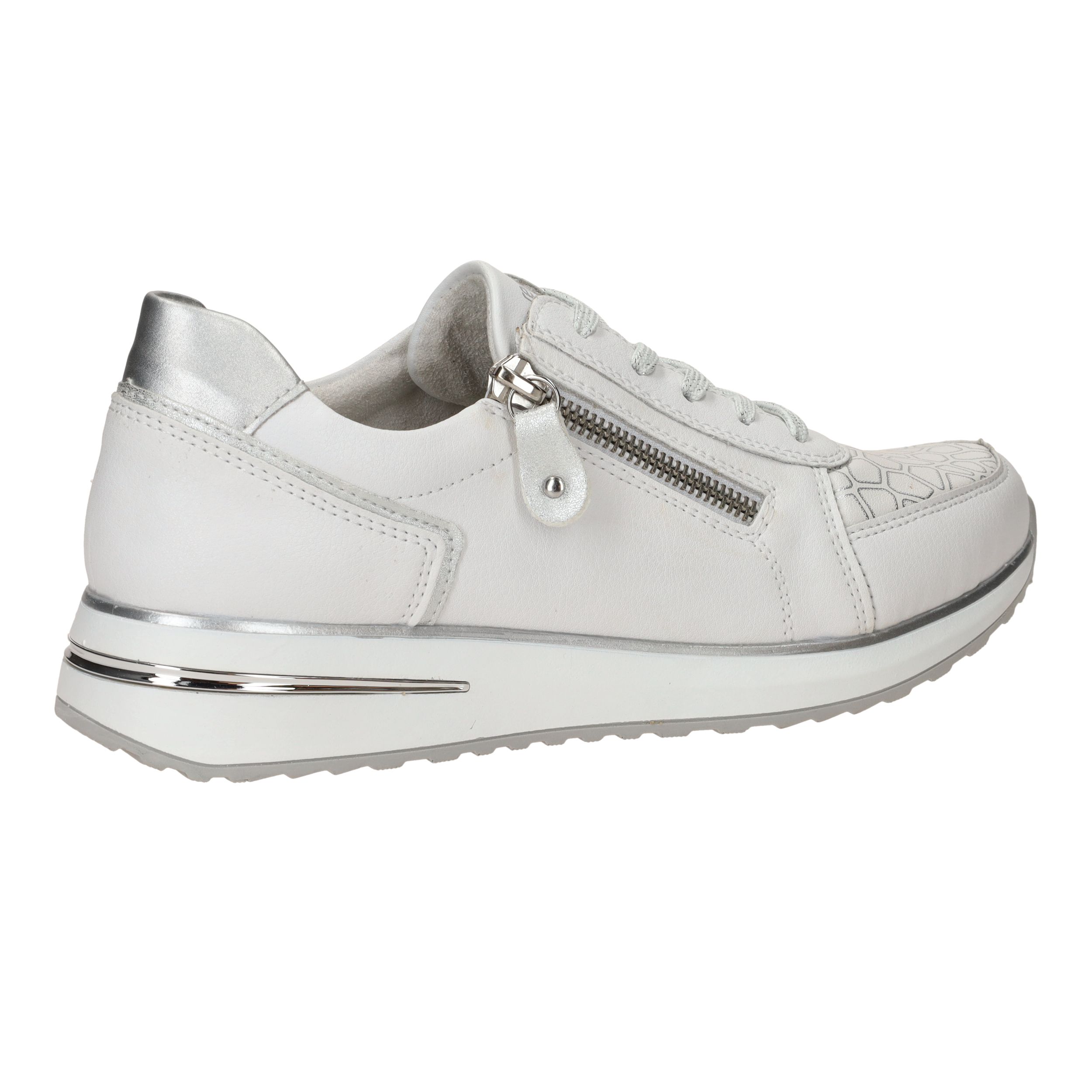 Comfortabele Remonte sneaker in het wit. De neus van de damessneaker is gemaakt van stretchmateriaal met leuk printje waardoor de tenen meer ruimte krijgen.