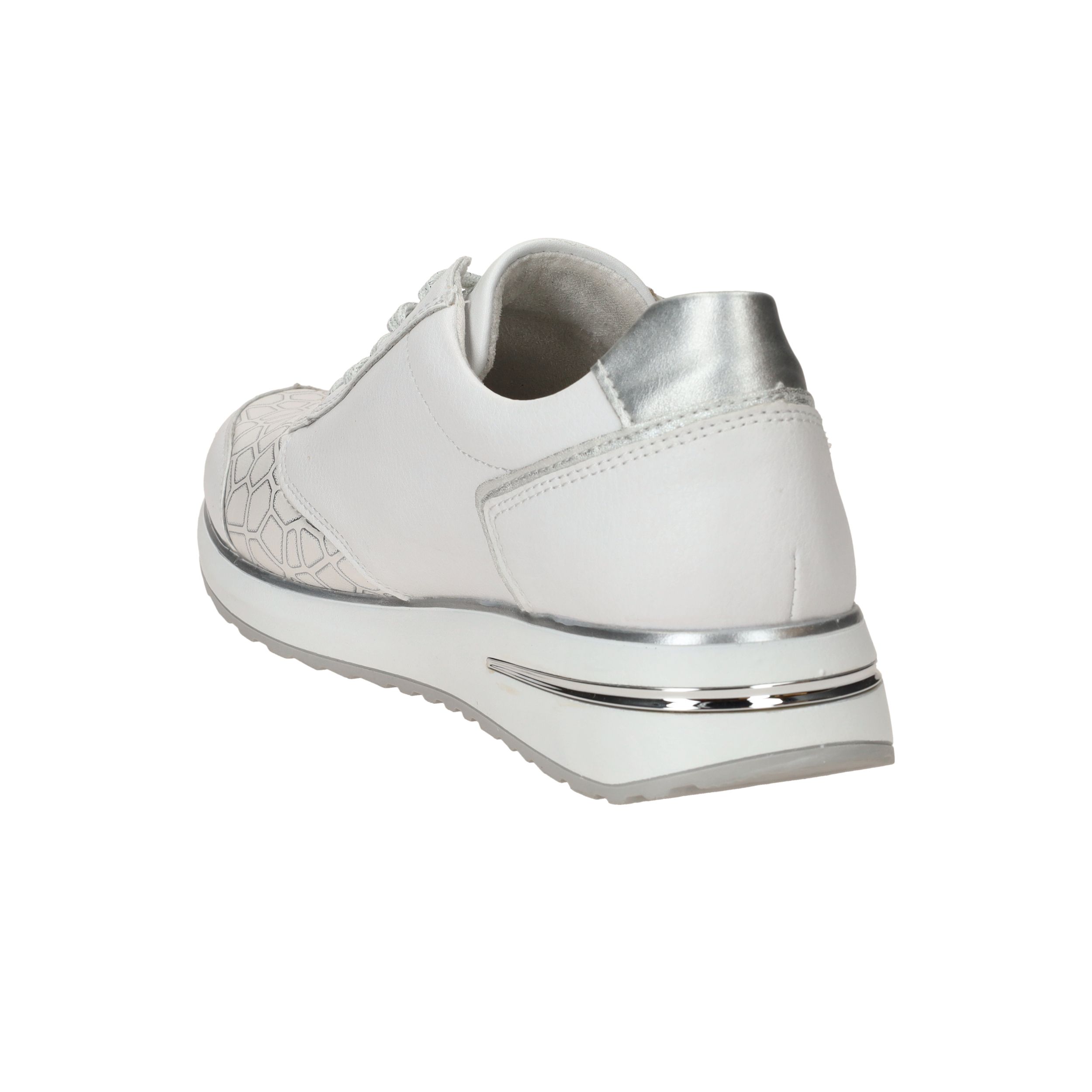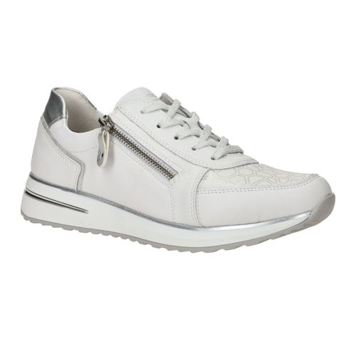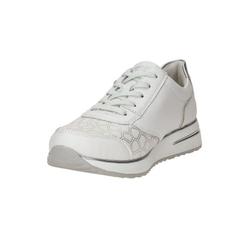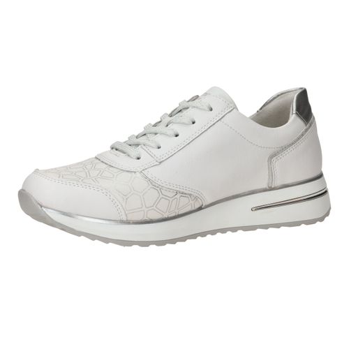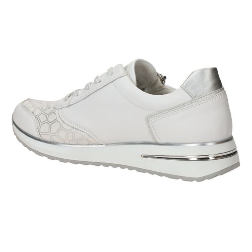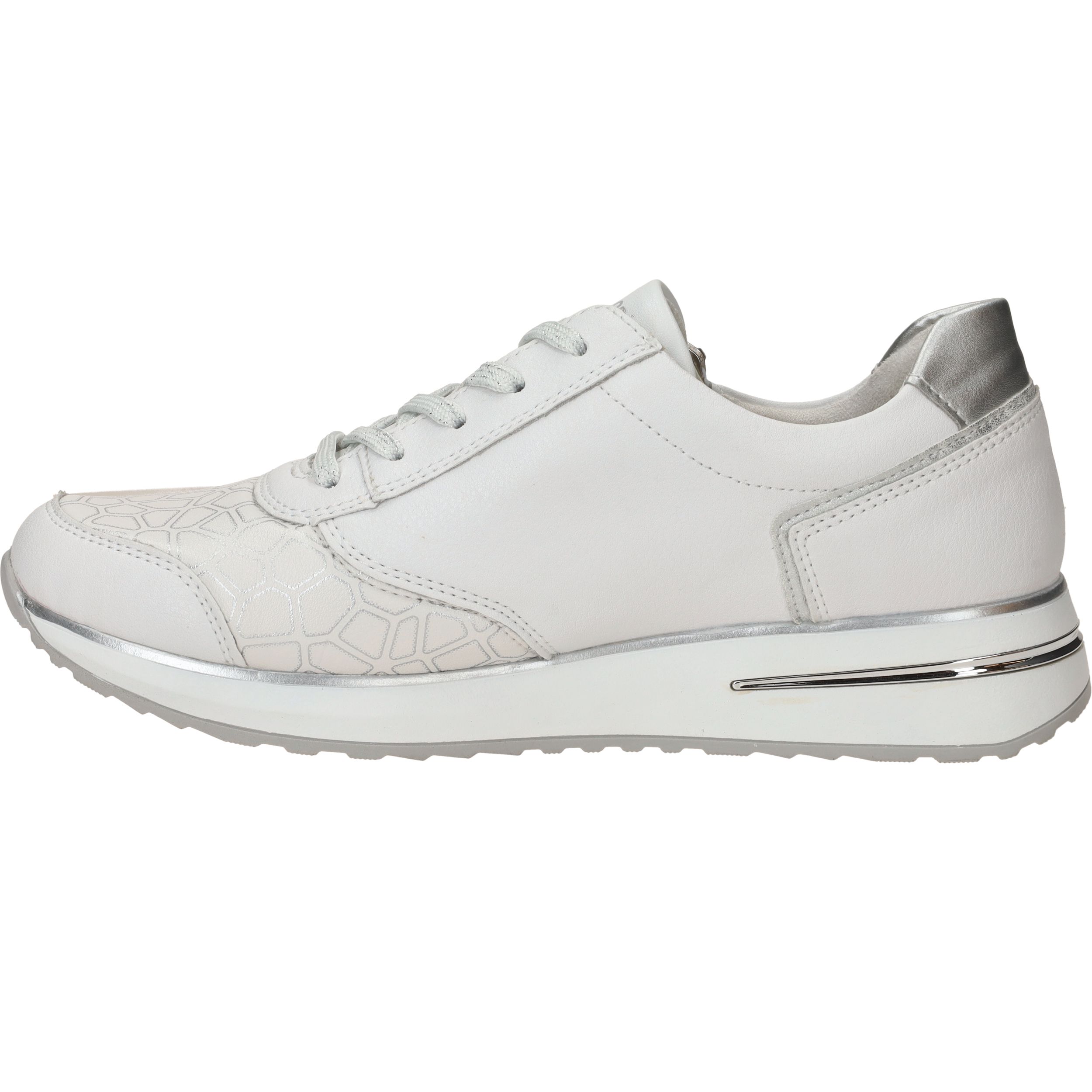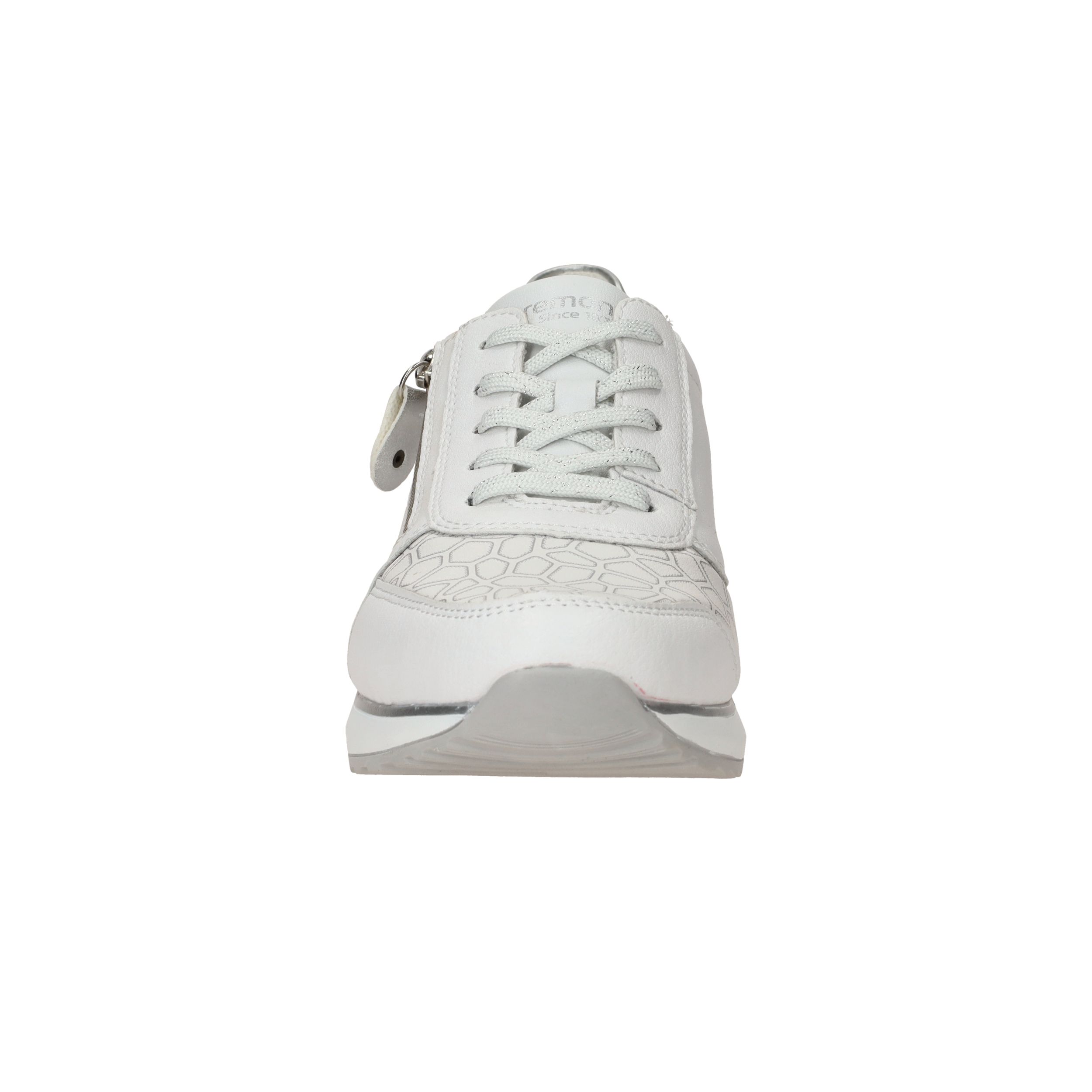 Comfortabele Remonte sneaker in het wit. De neus van de damessneaker is gemaakt van stretchmateriaal met leuk printje waardoor de tenen meer ruimte krijgen.