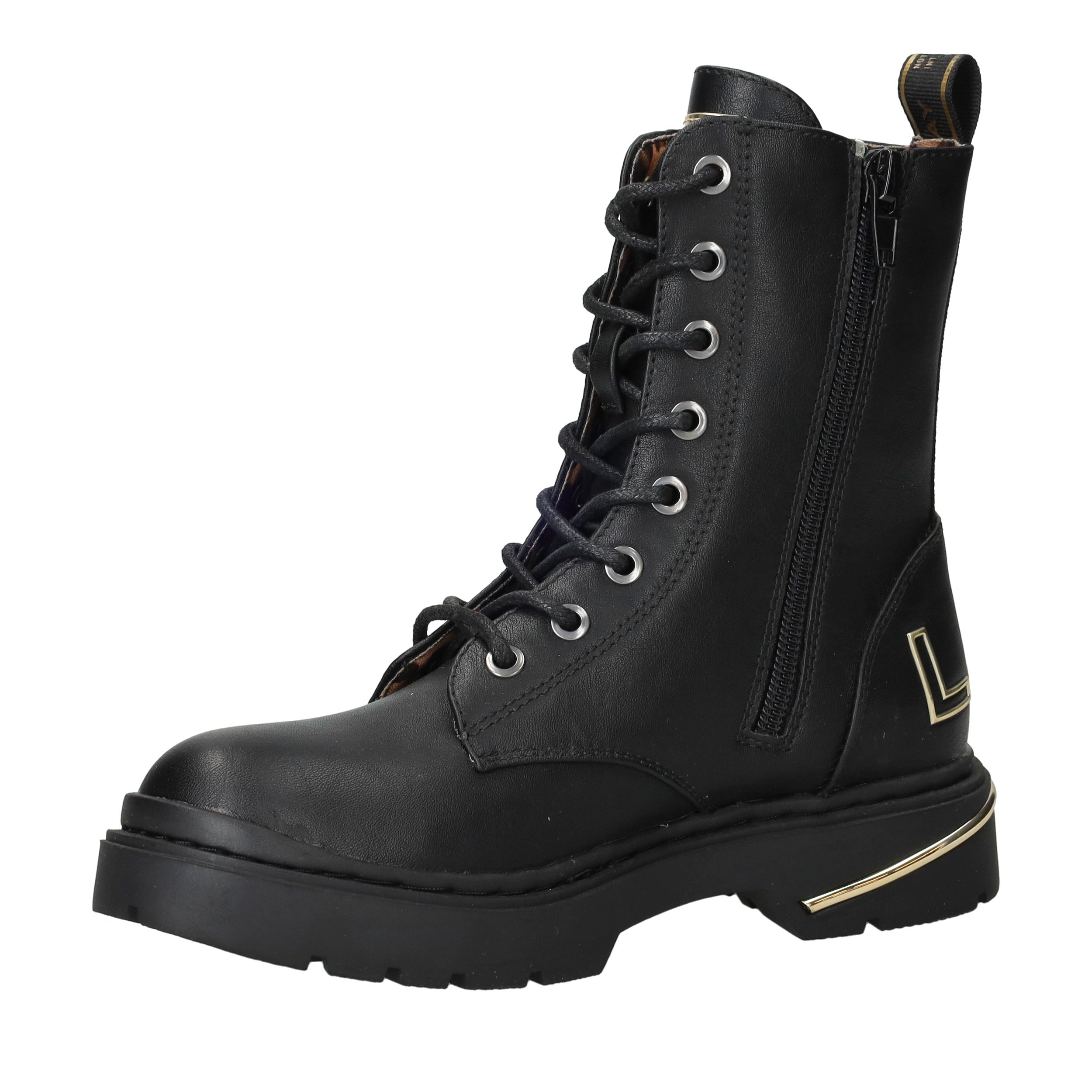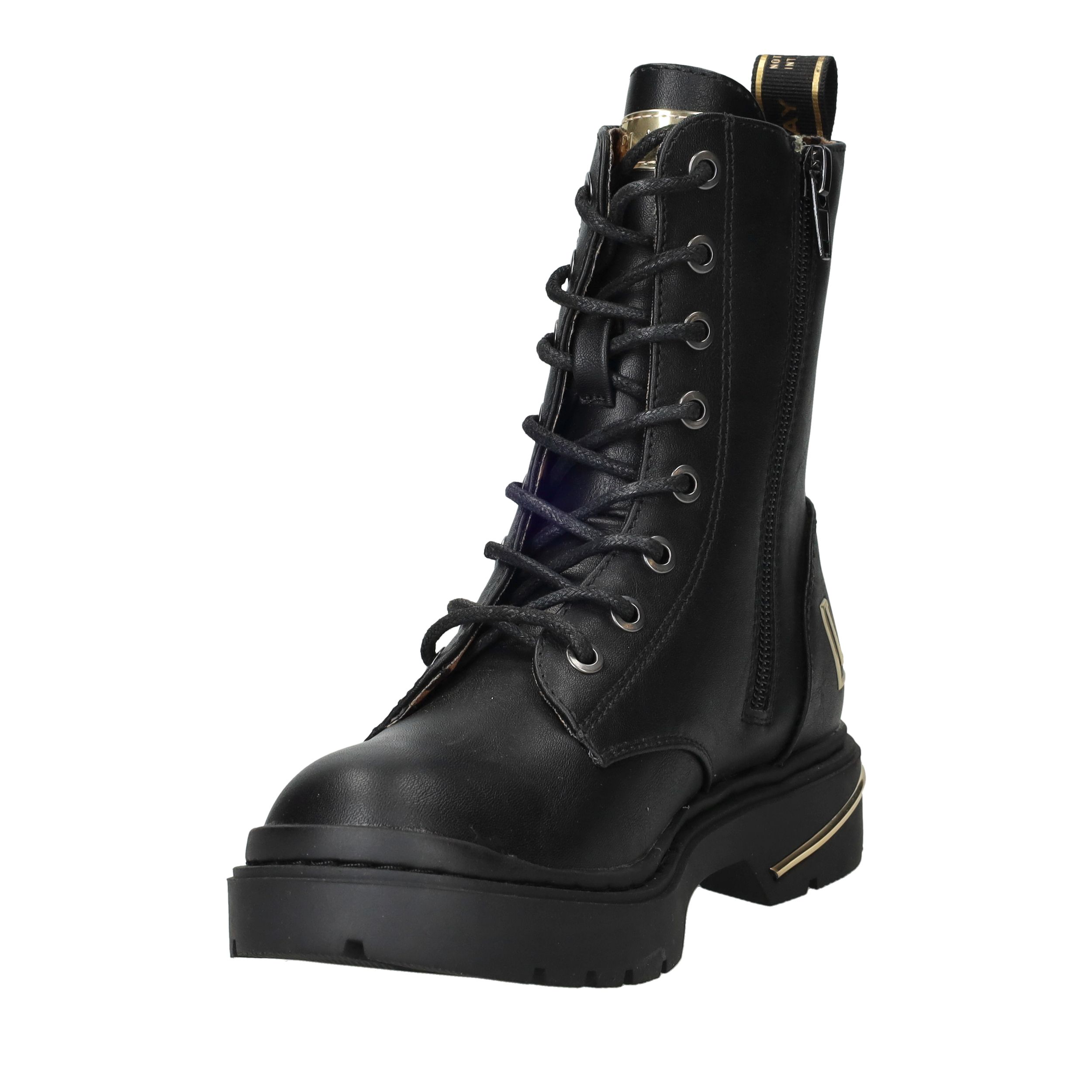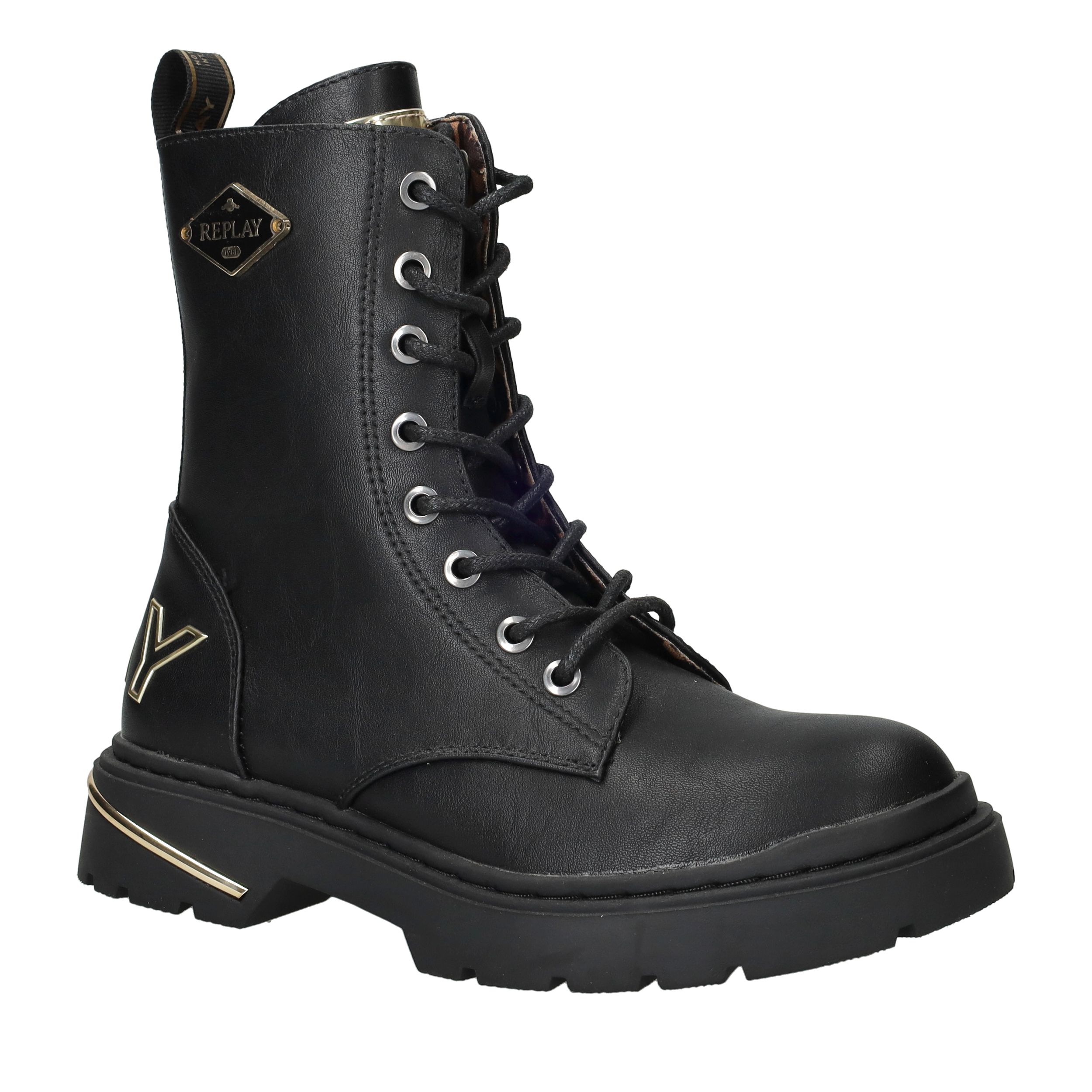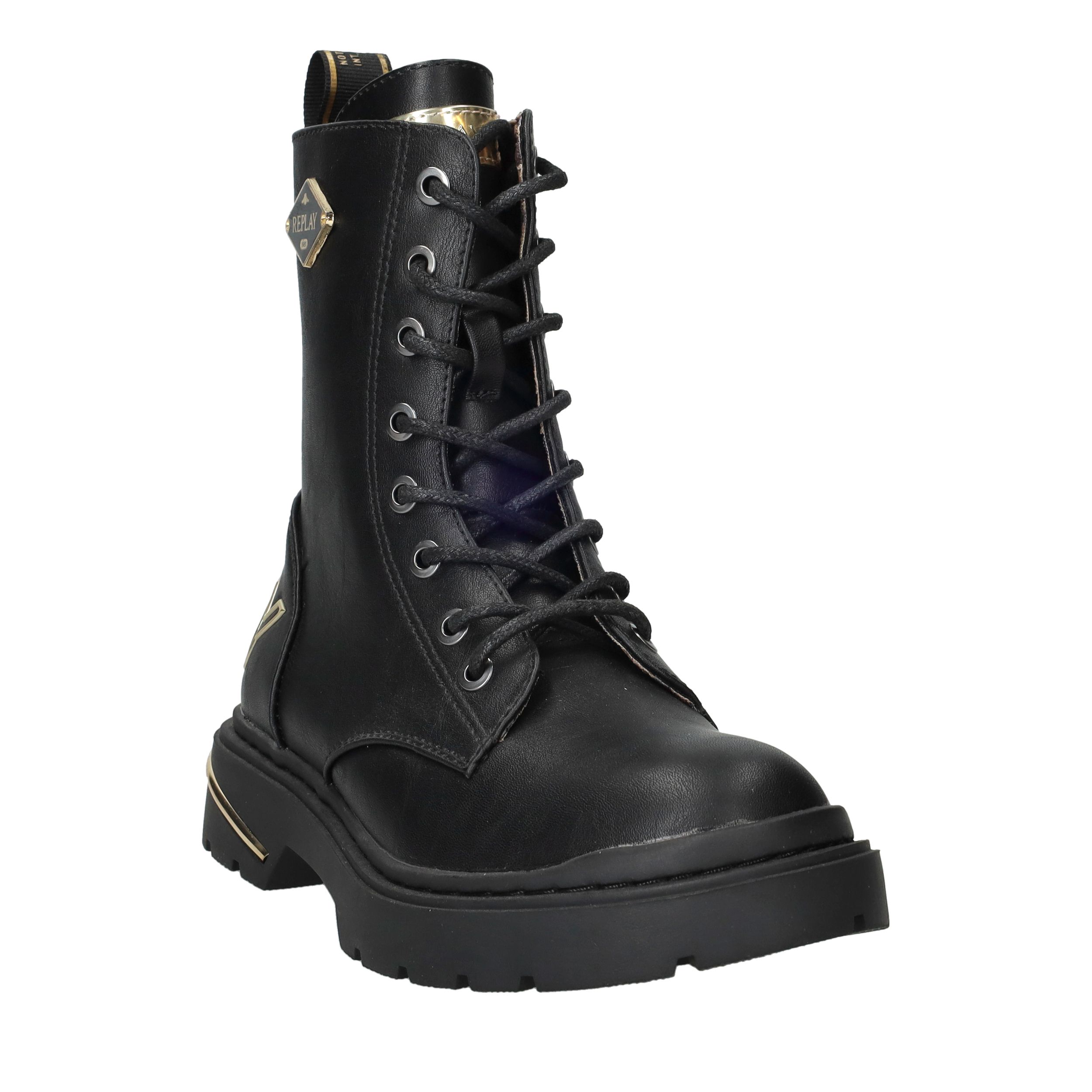 De Replay Joplin 15 veterboot is uitgevoerd in zwart kunstleer en heeft een stoere uitstraling. Dankzij de combinatie van de veter- en ritssluiting trek je de boots gemakkelijk aan en uit. Perfect voor meiden die houden van een stevige en stijlvolle look.