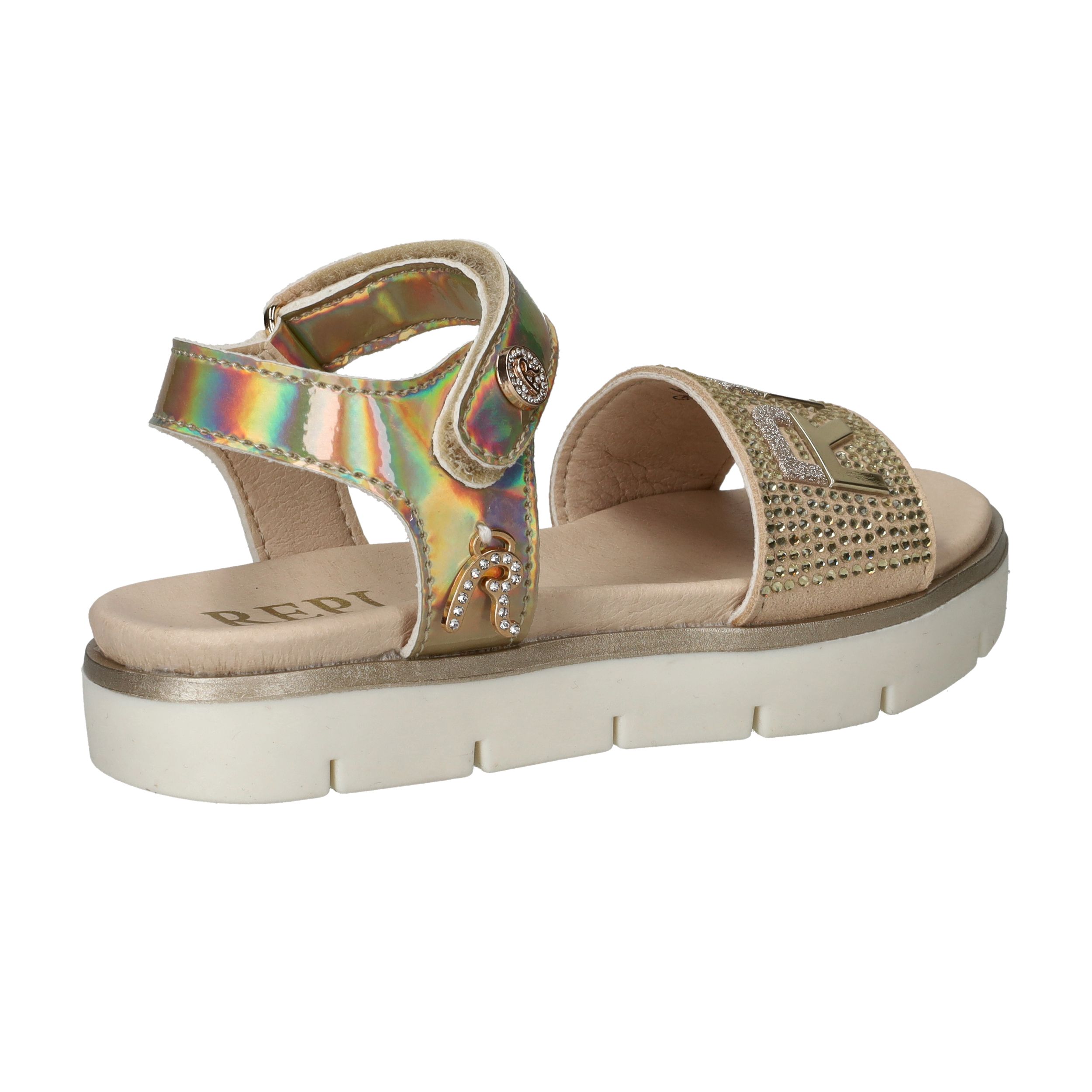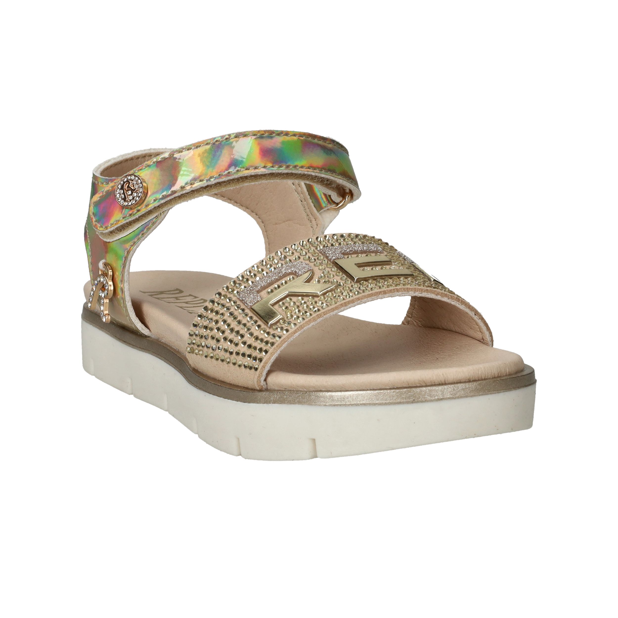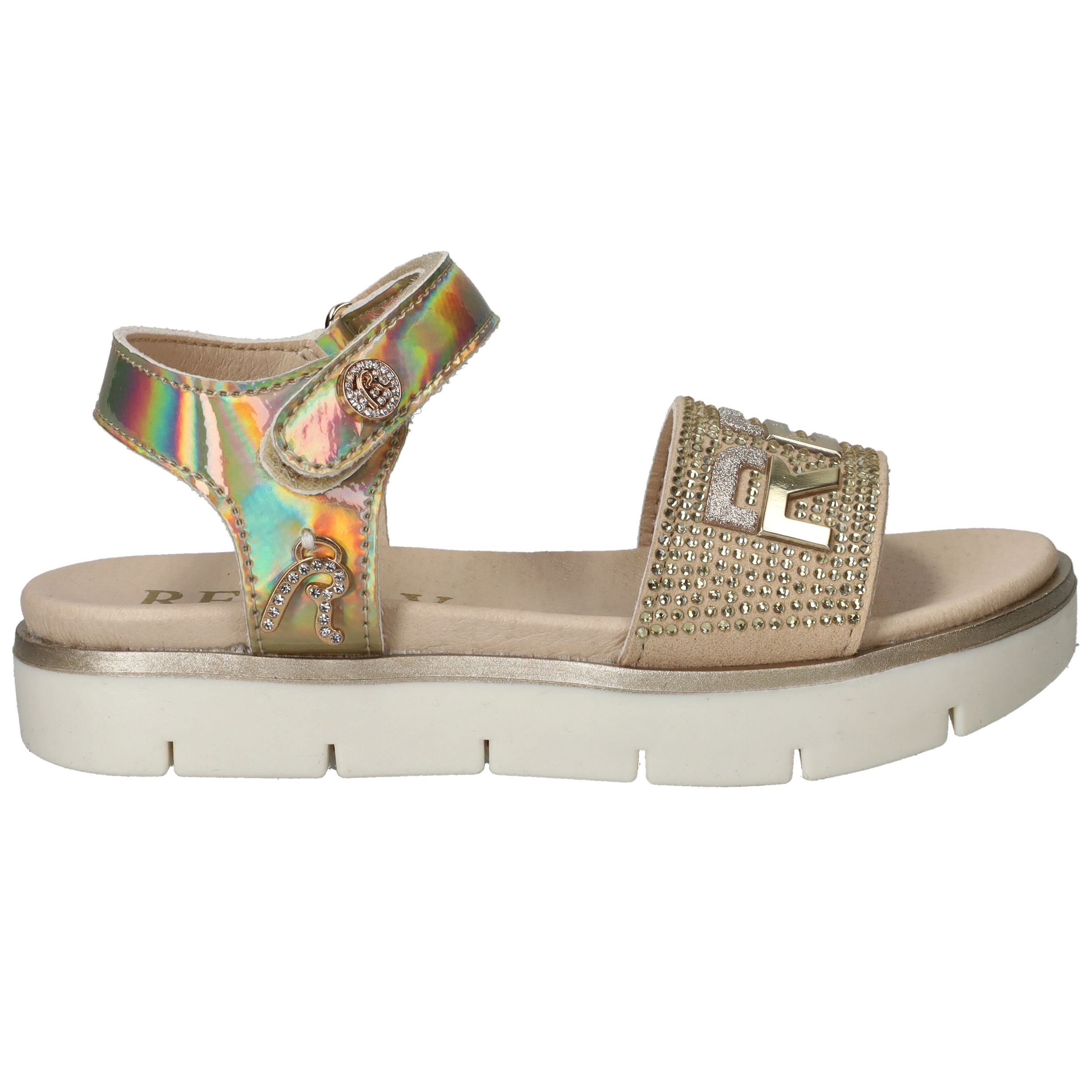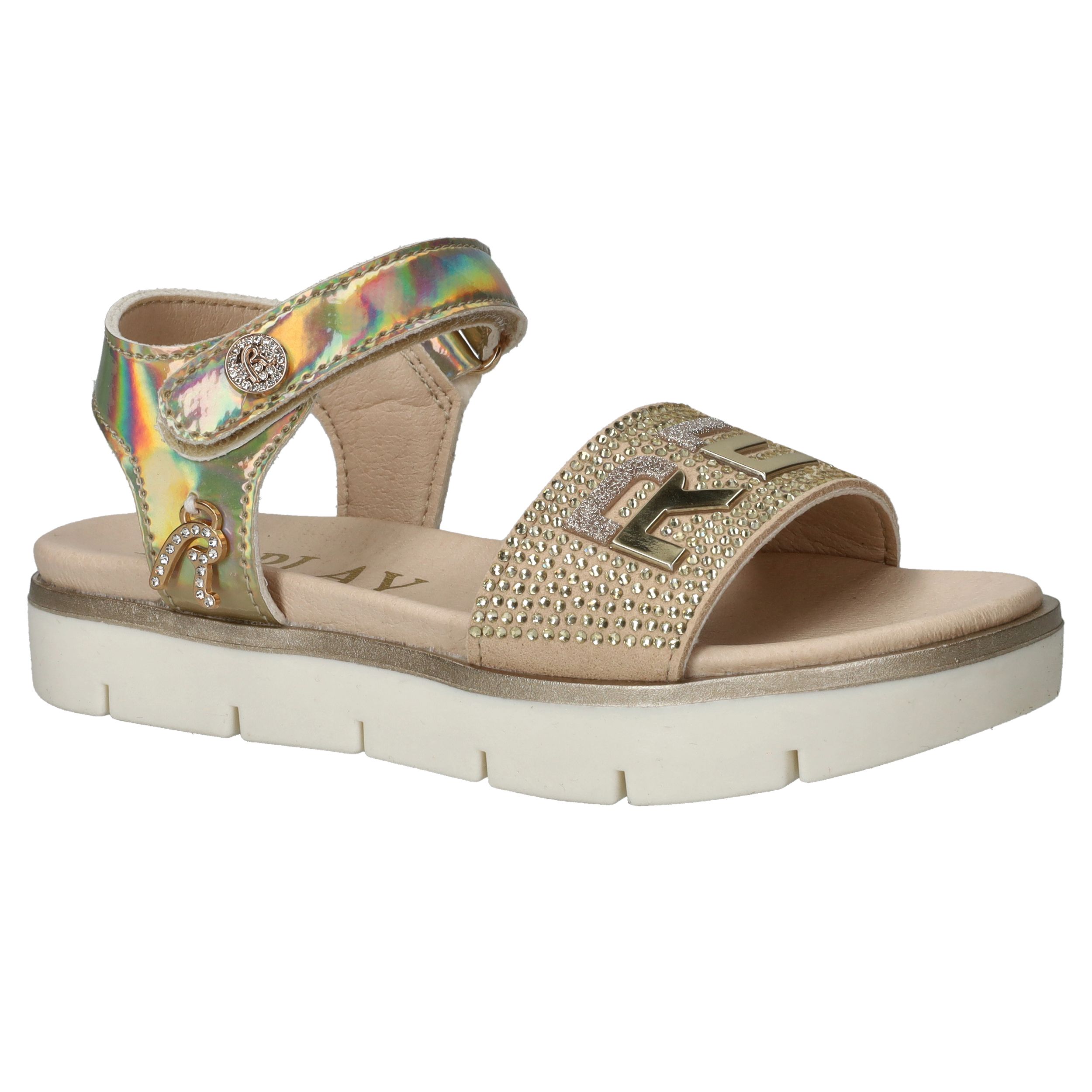 Ga voor glans met deze toffe Replay sandaal voor meiden. De sandaal heeft een metallic gouden kleur en leuke glitter steentjes.