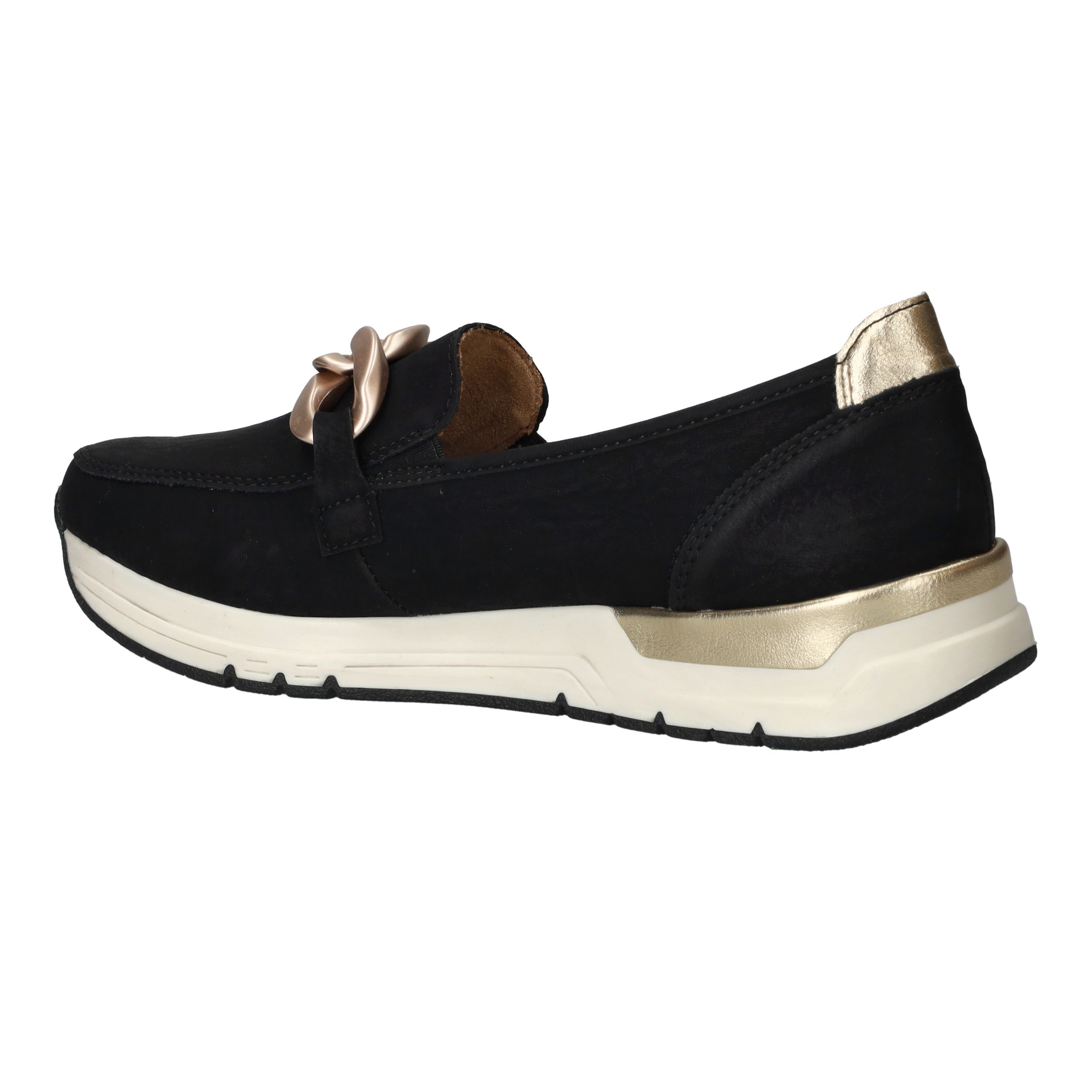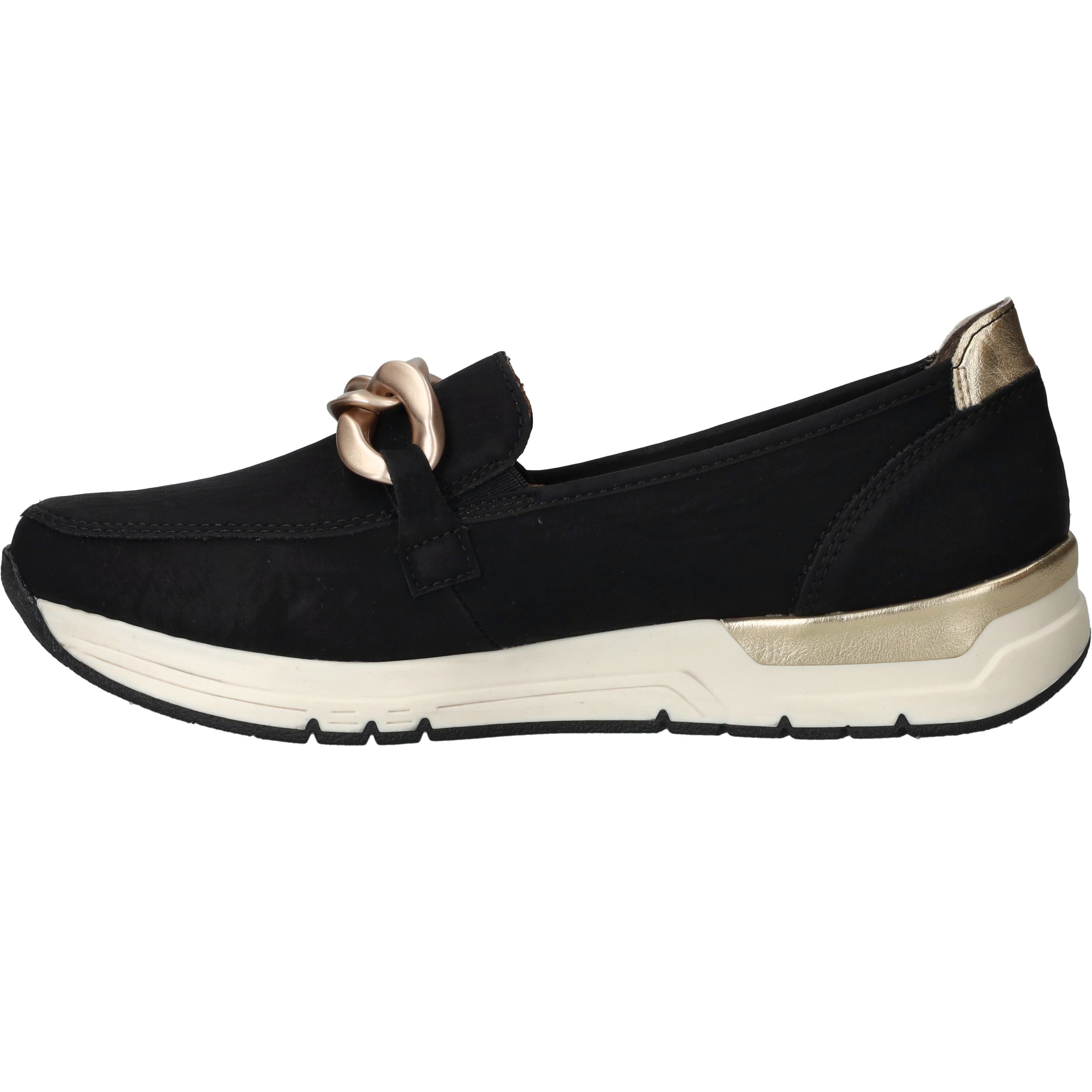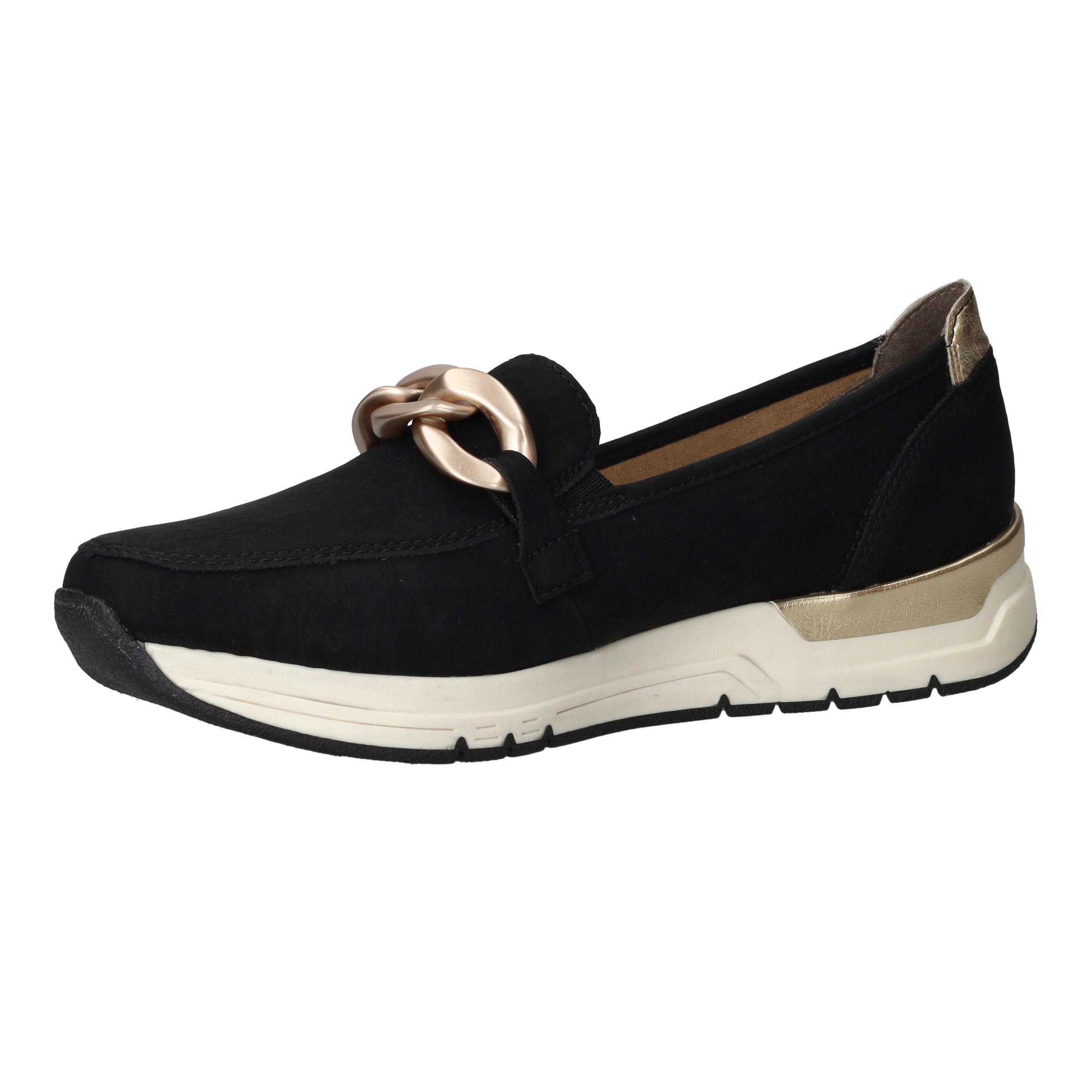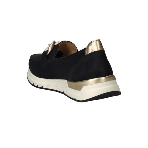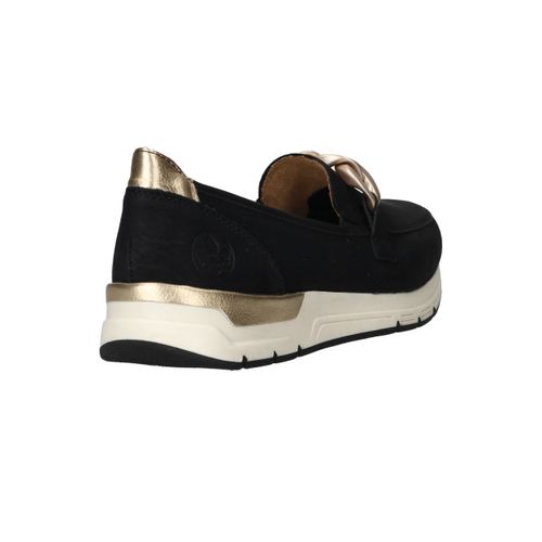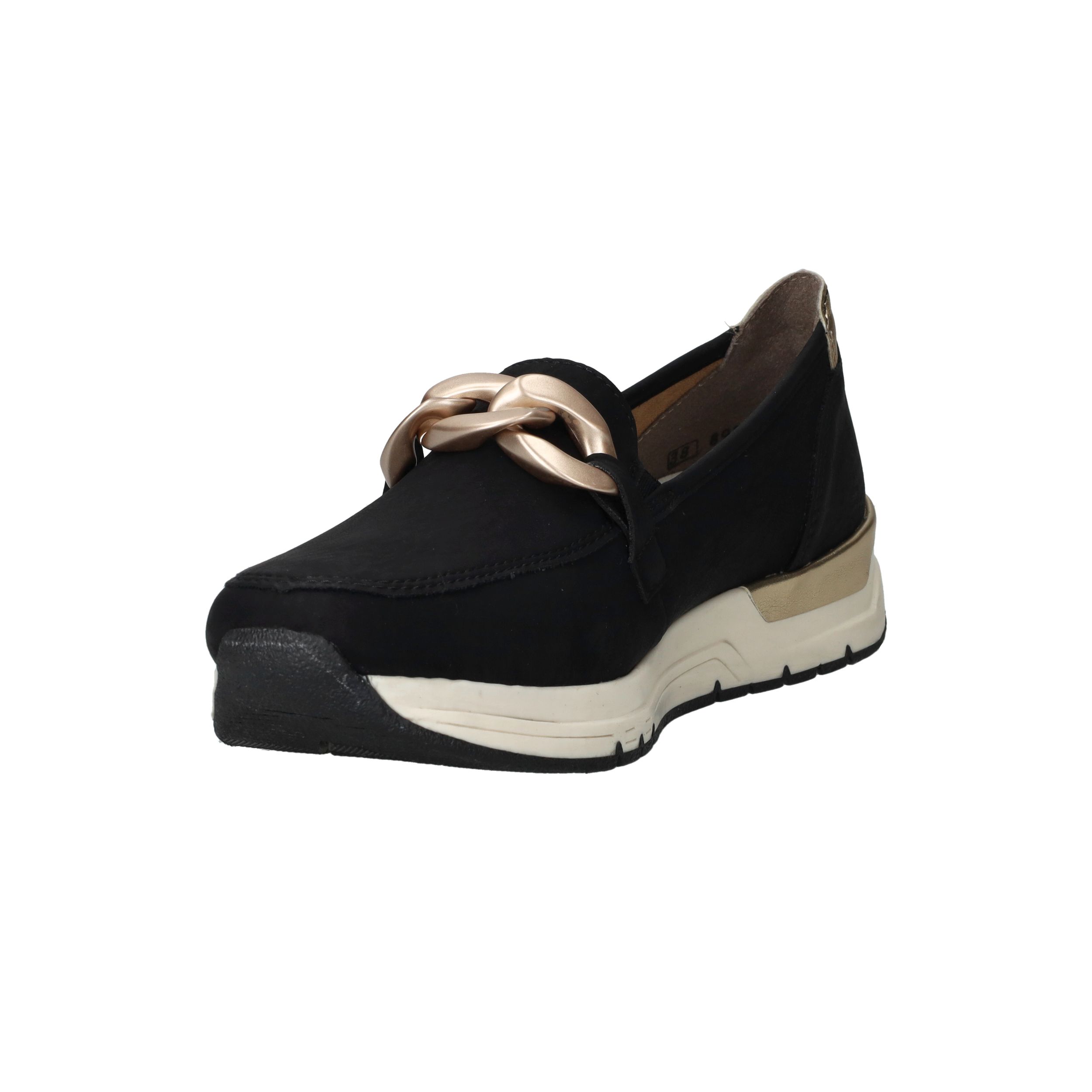 Dit is een stijlvolle Rieker instapper met een sportieve uitstraling. De zwarte instapper loopt heel comfortabel en heeft een sportieve zool.