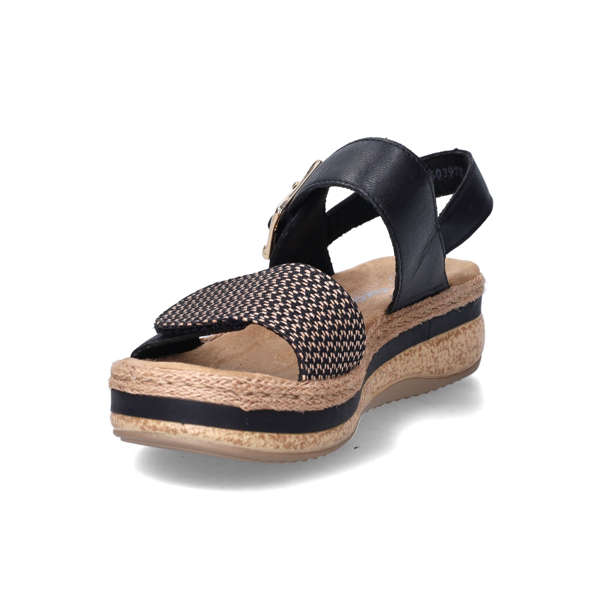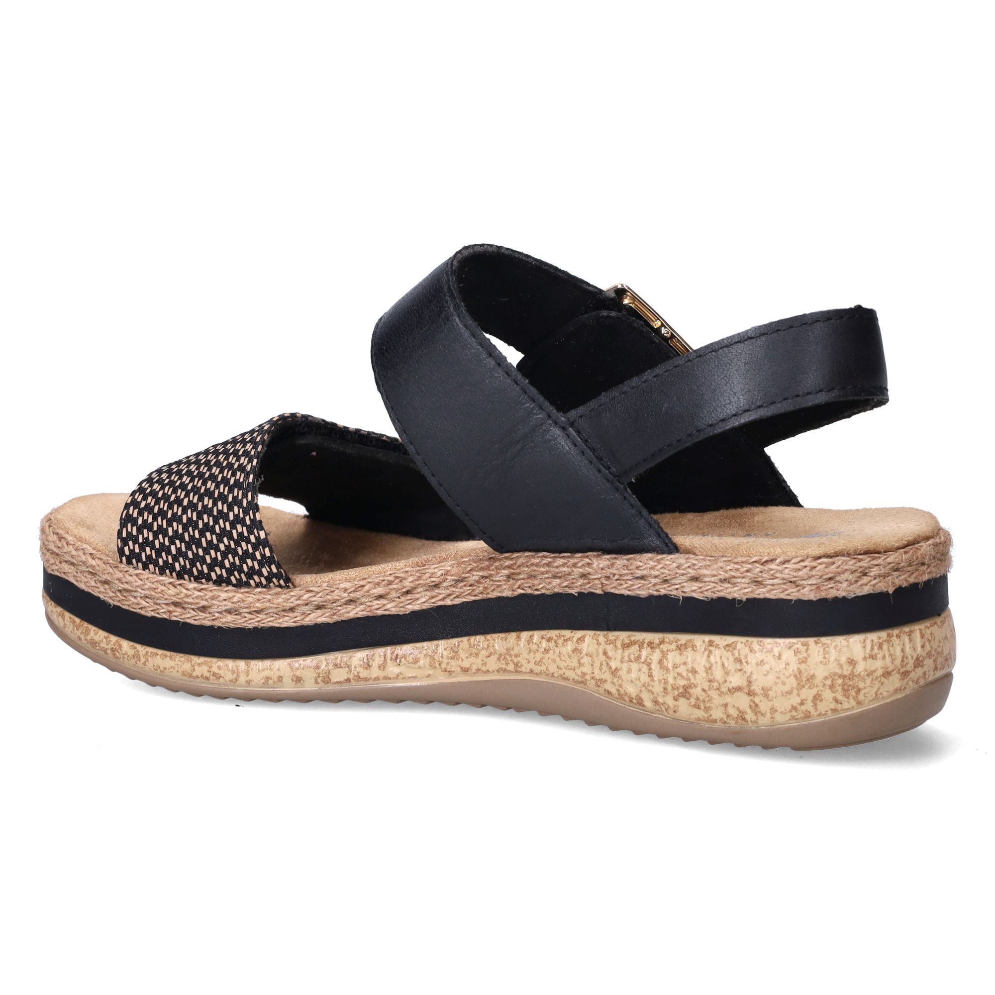 Deze zwarte dames sandalen van Rieker zijn een echte aanwinst voor jouw voeten deze zomer. Met hun tijdloze zwarte kleur en subtiele details passen ze moeiteloos bij diverse outfits, van een casual zomerjurkje tot een nette broek. Het bovenwerk combineert leer en textiel, wat zorgt voor een mooie uitstraling en een aangenaam gevoel op de huid. De sandalen zijn ontworpen met jouw comfort in gedachten, wat je direct merkt aan de prettige demping die elke stap verzacht.