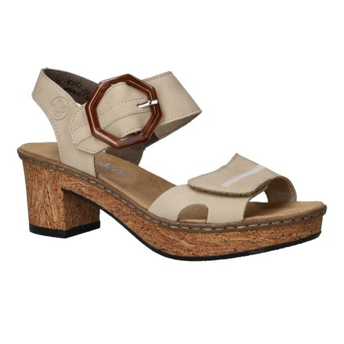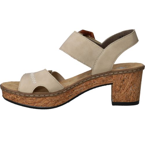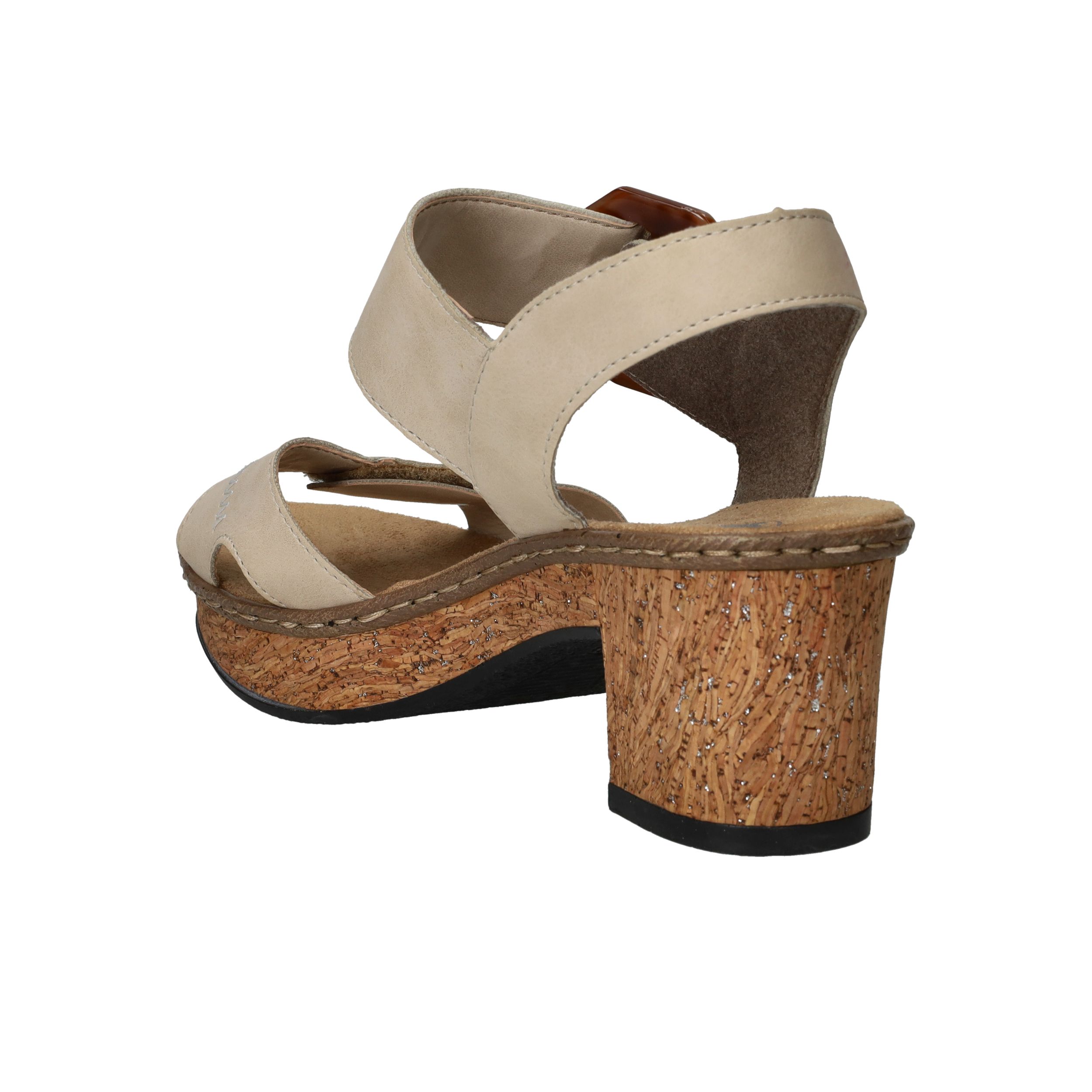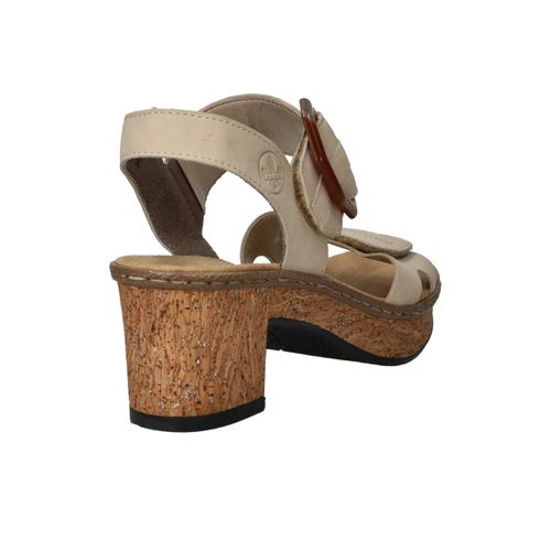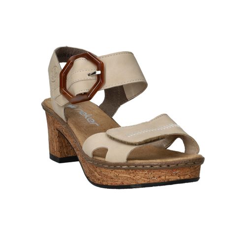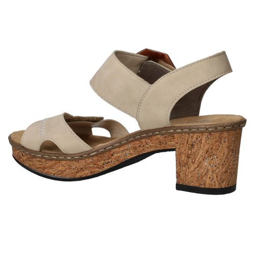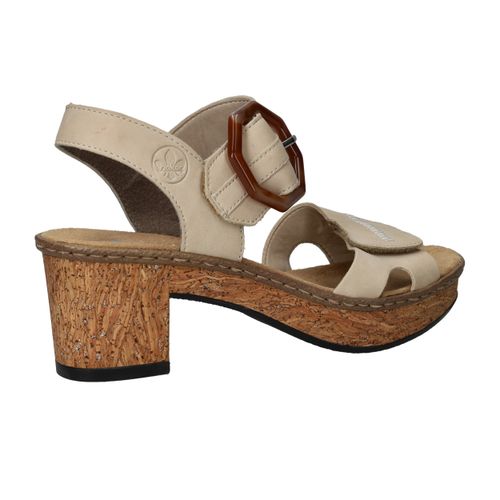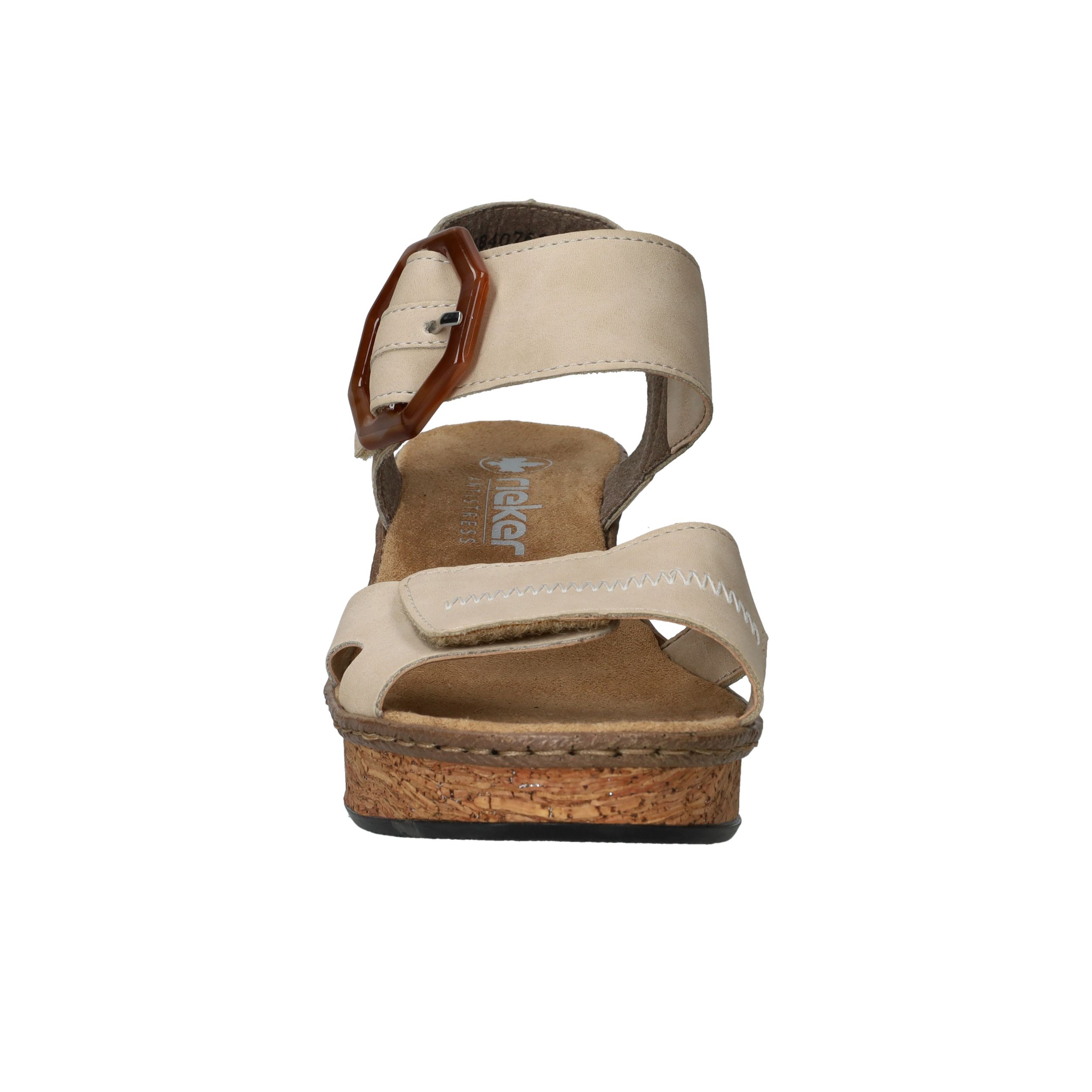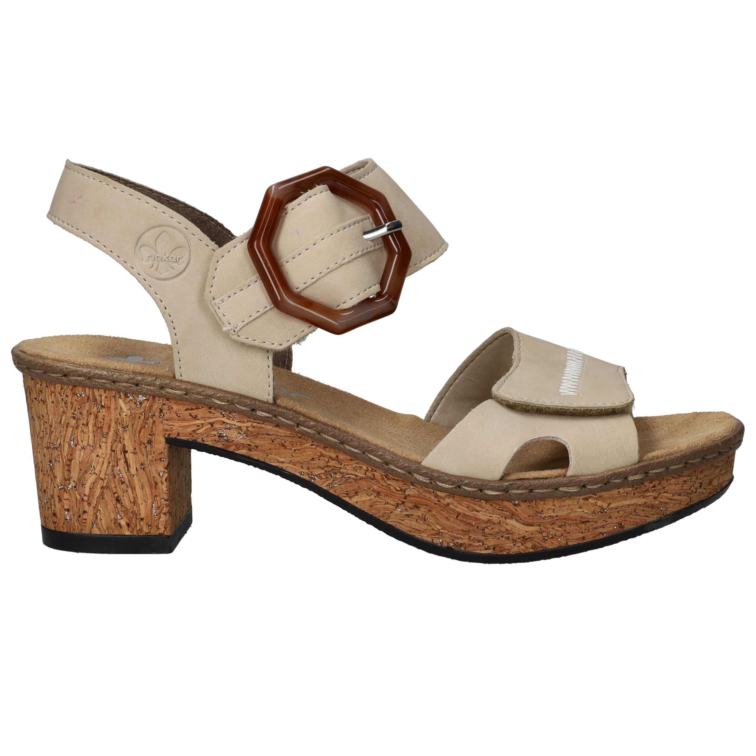 Loop comfortabel en stijlvol de zomer door met de Rieker sandalen, model 63850. Deze damessandalen in een elegante beige kleur zijn vervaardigd uit zacht imitatiesuède, wat zorgt voor een comfortabele pasvorm. De sandalen zijn voorzien van een comfortabele hak en een zachte binnenzool, waardoor je de hele dag comfortabel kunt lopen. De opvallende gesp en de sleehak geven deze sandalen een unieke en trendy touch.