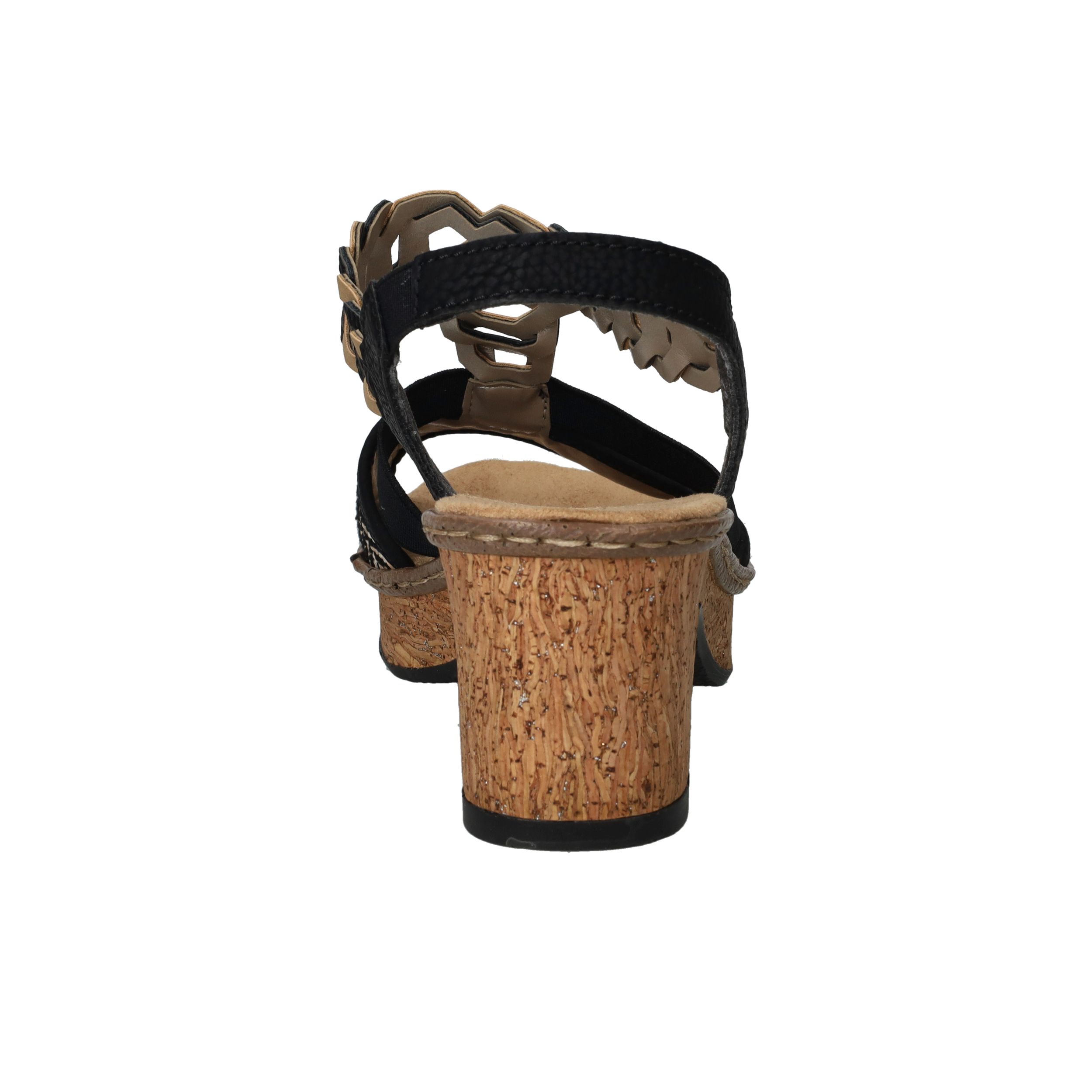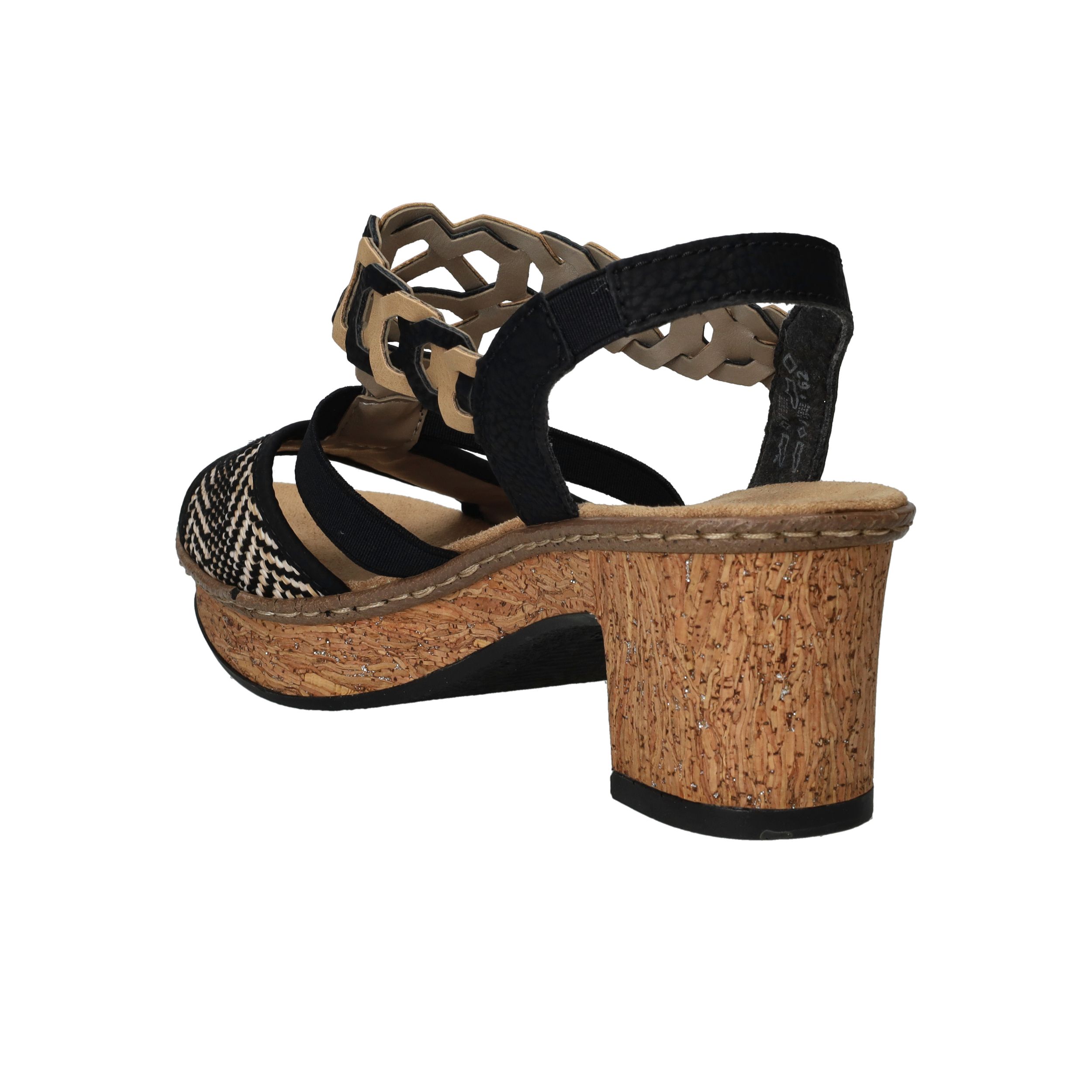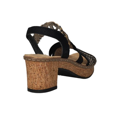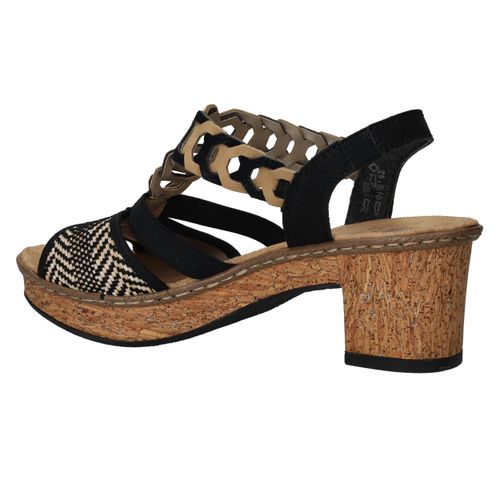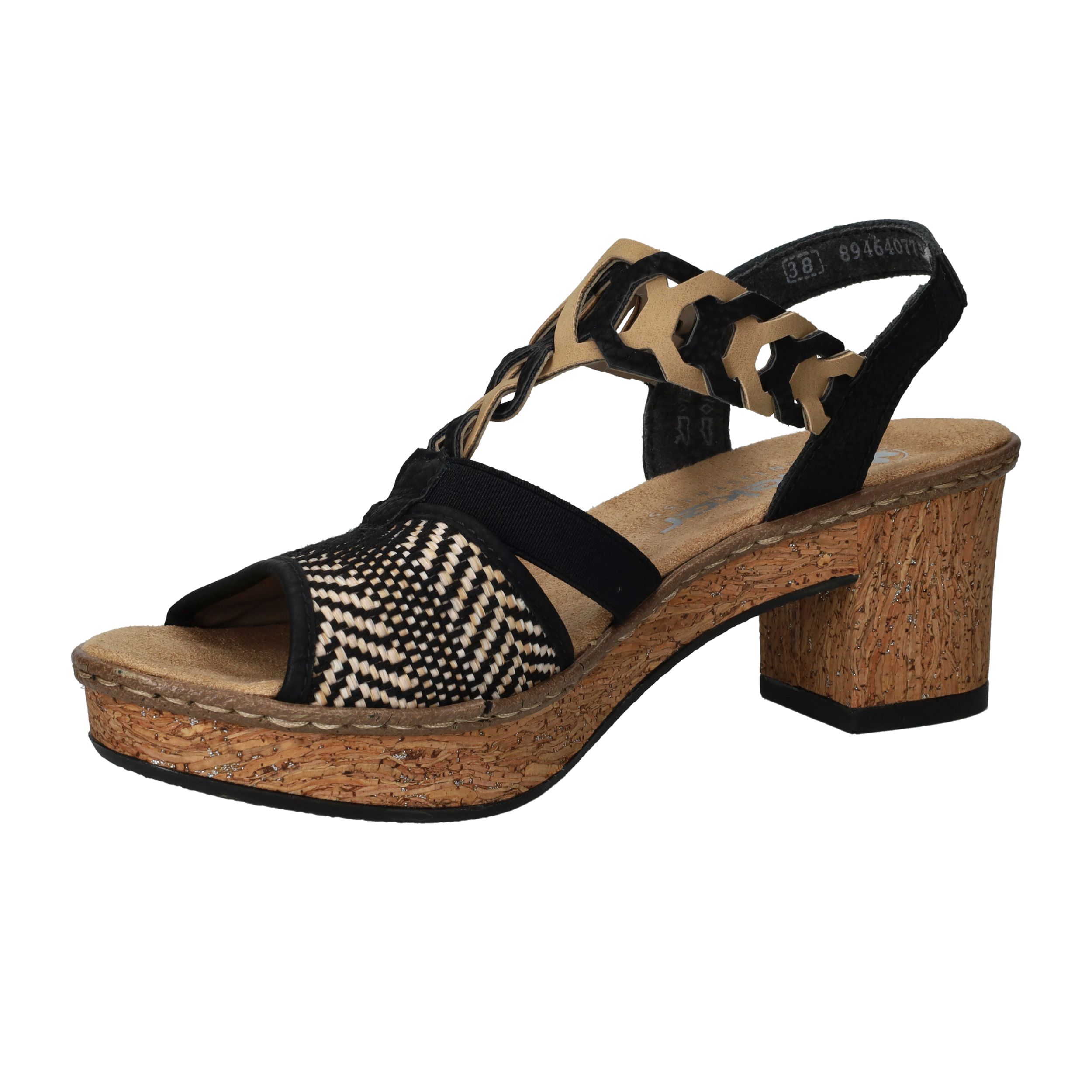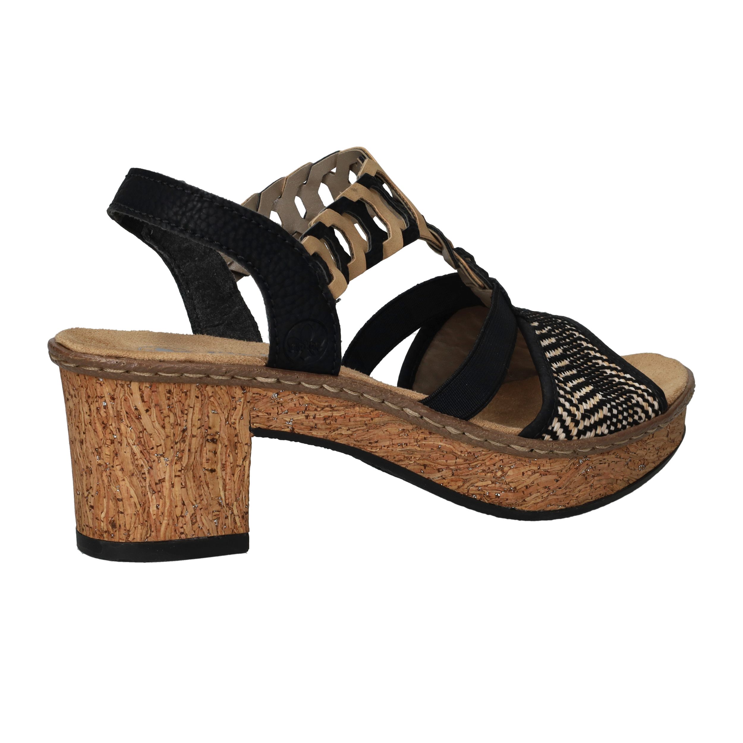 Mooie Rieker sandalette in het zwart met geweven bandjes. De sandalette heeft subtiele glitter in de zool.