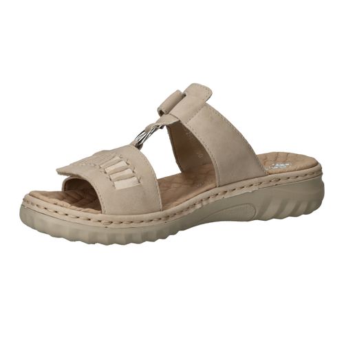 Deze slippers van Rieker in beige zijn heerlijk om te dragen tijdens warme dagen. Ze zijn licht, luchtig en hebben een charmant detail op de wreef dat zorgt voor nét dat beetje extra flair. Het zachte voetbed geeft comfort bij iedere stap, terwijl de stevige zool zorgt voor stabiliteit. Ideaal voor in en om huis, op vakantie of een ontspannen dagje shoppen.