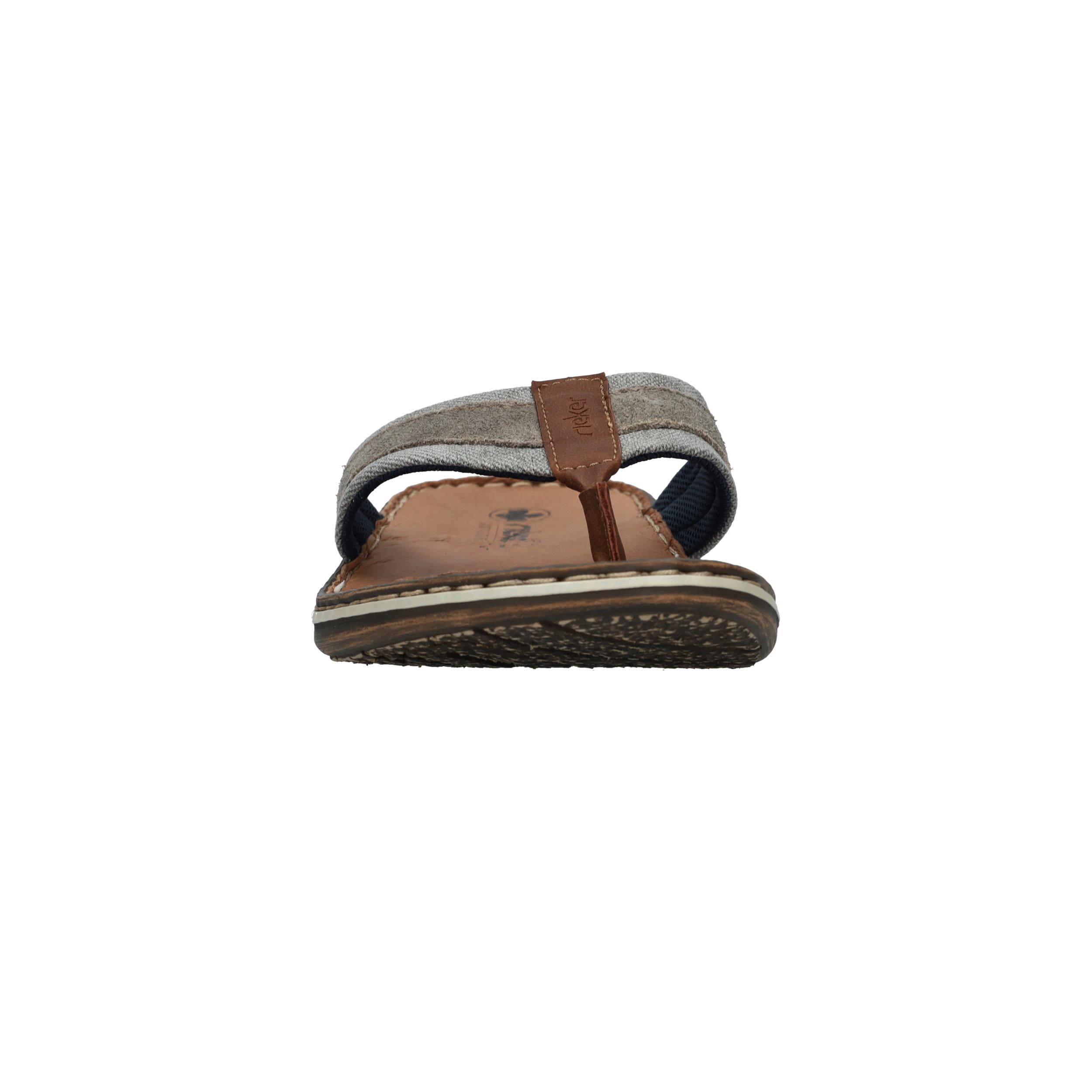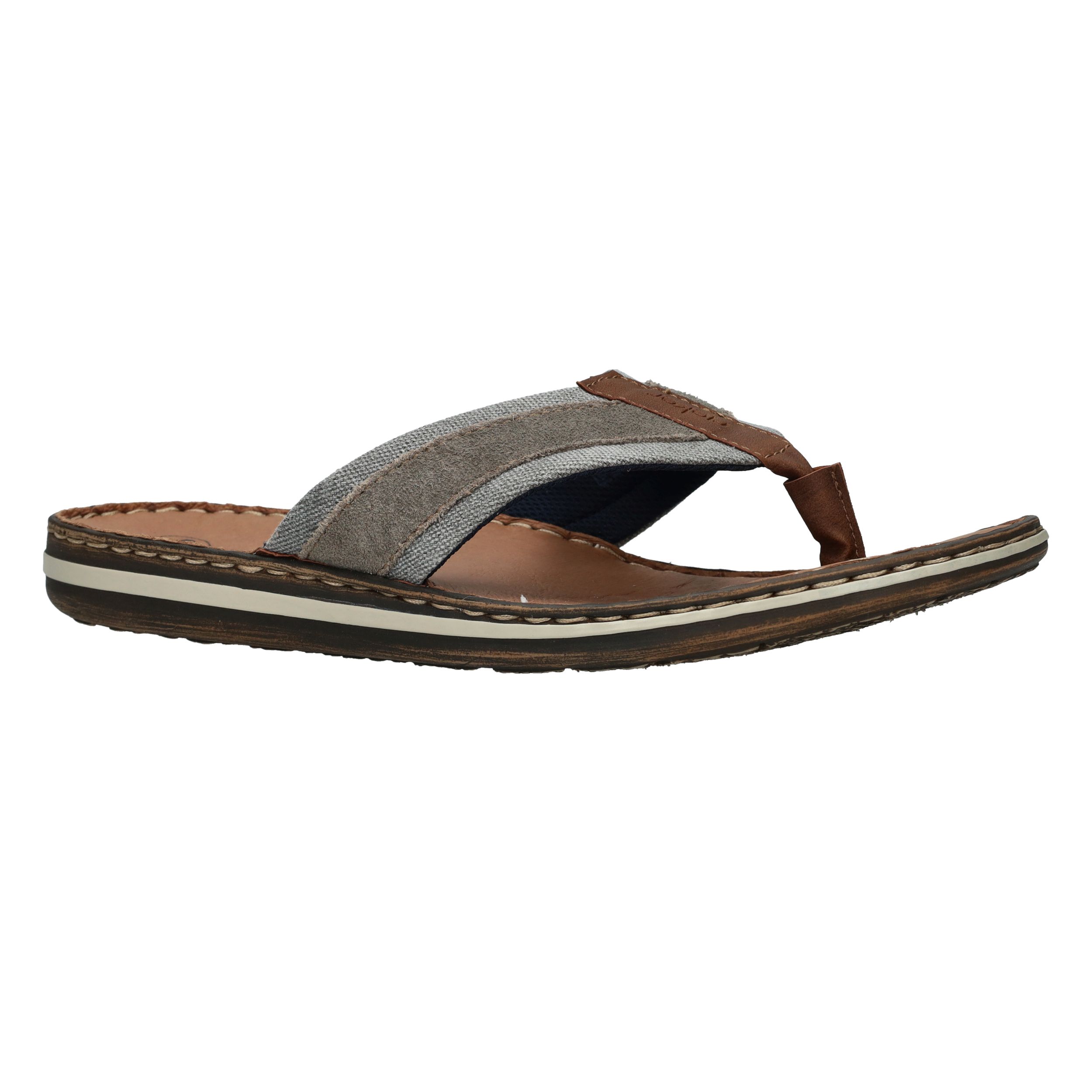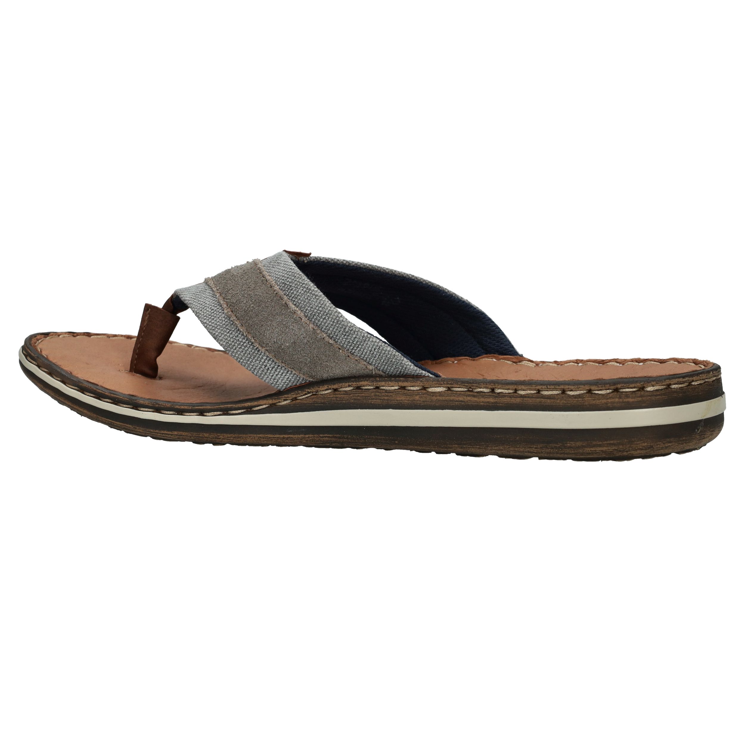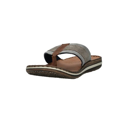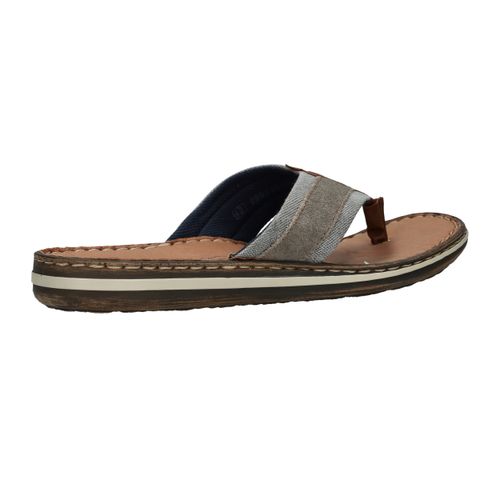 Deze slippers van Rieker combineren zomers gemak met een stoere uitstraling. Het model is voorzien van een stevige leren teenband met een combinatie van grijs textiel en suèdelook details. De comfortabele zool en het leren voetbed zorgen voor een fijne pasvorm bij iedere stap. Perfect voor een ontspannen dag in de tuin, een wandeling langs het strand of op vakantie.