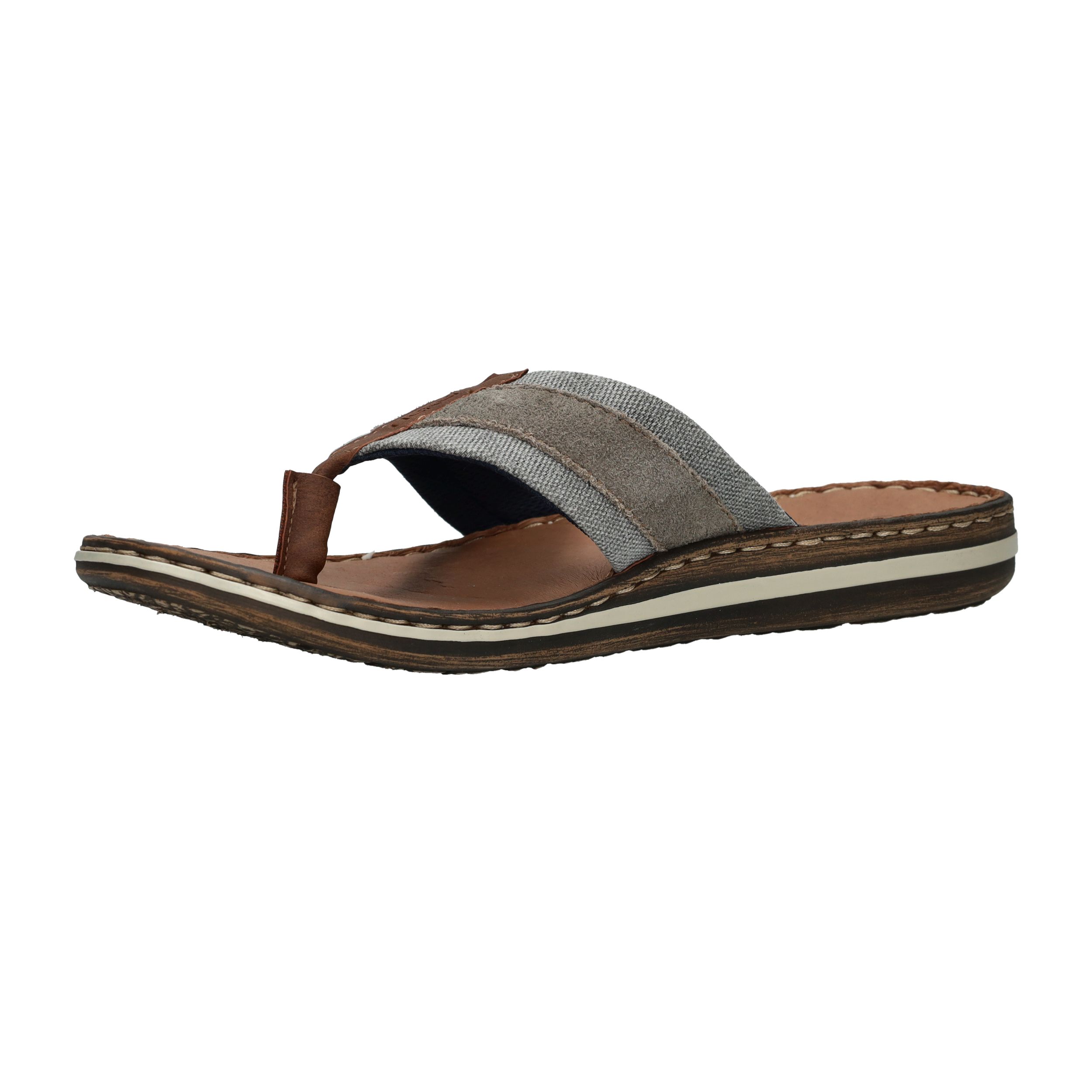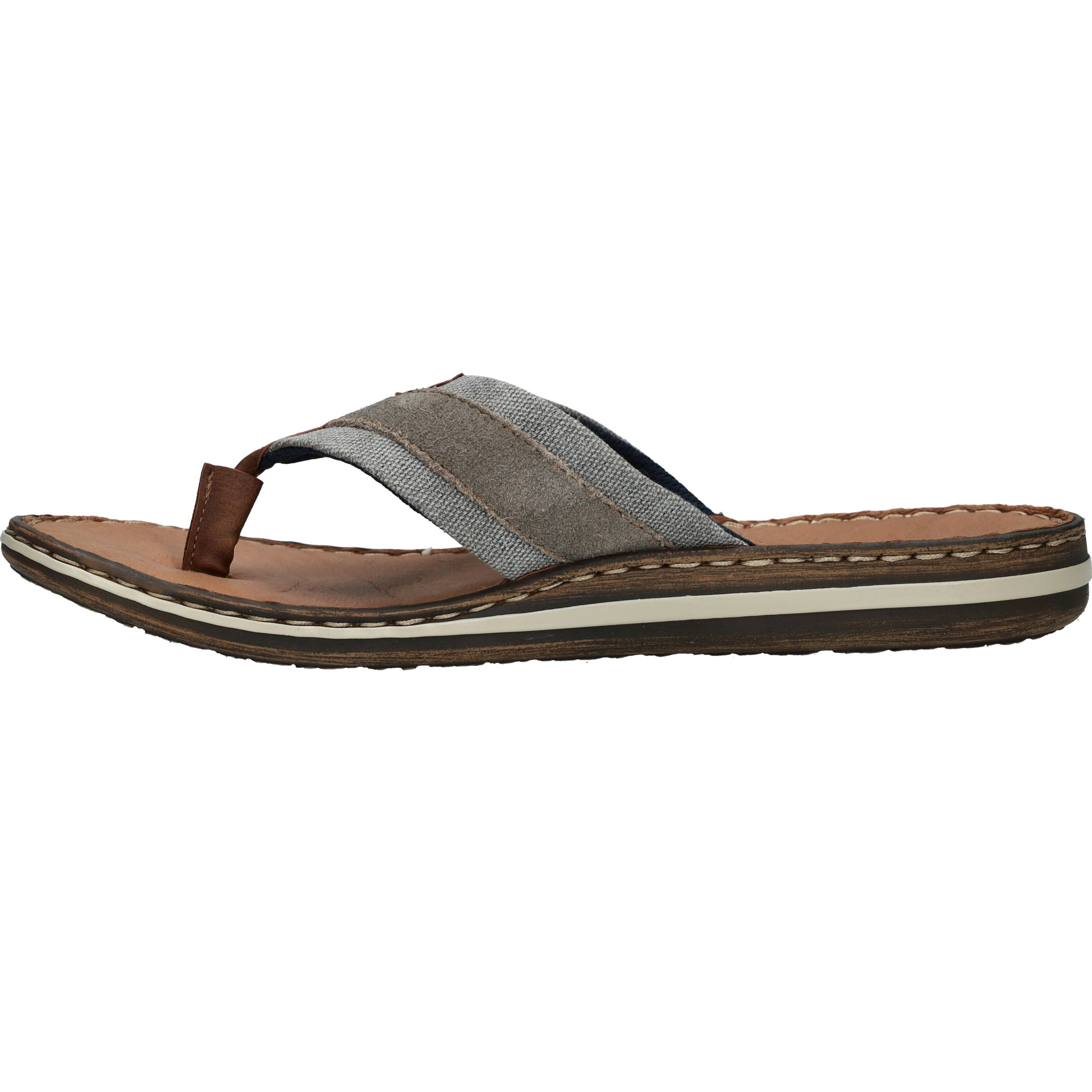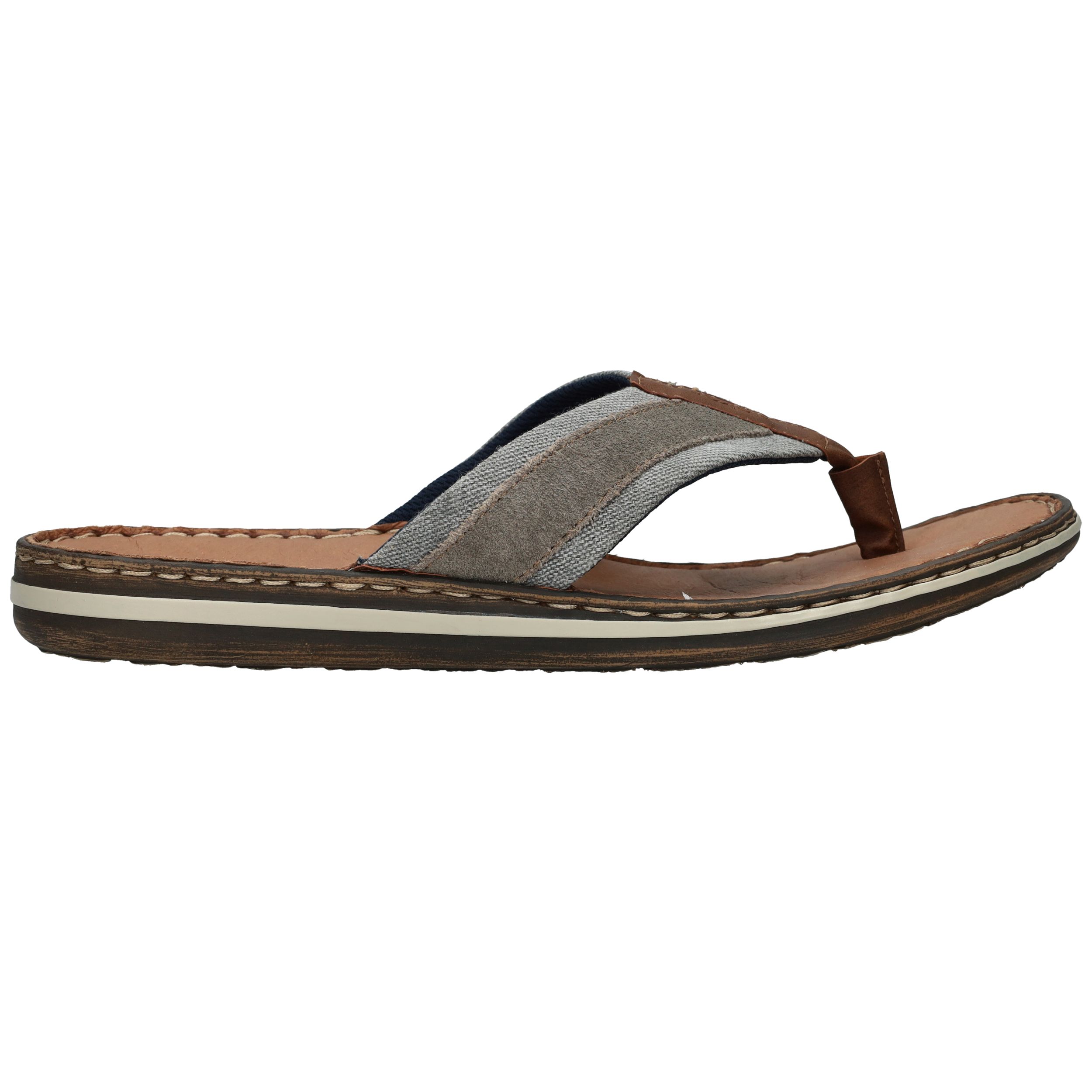 Deze slippers van Rieker combineren zomers gemak met een stoere uitstraling. Het model is voorzien van een stevige leren teenband met een combinatie van grijs textiel en suèdelook details. De comfortabele zool en het leren voetbed zorgen voor een fijne pasvorm bij iedere stap. Perfect voor een ontspannen dag in de tuin, een wandeling langs het strand of op vakantie.