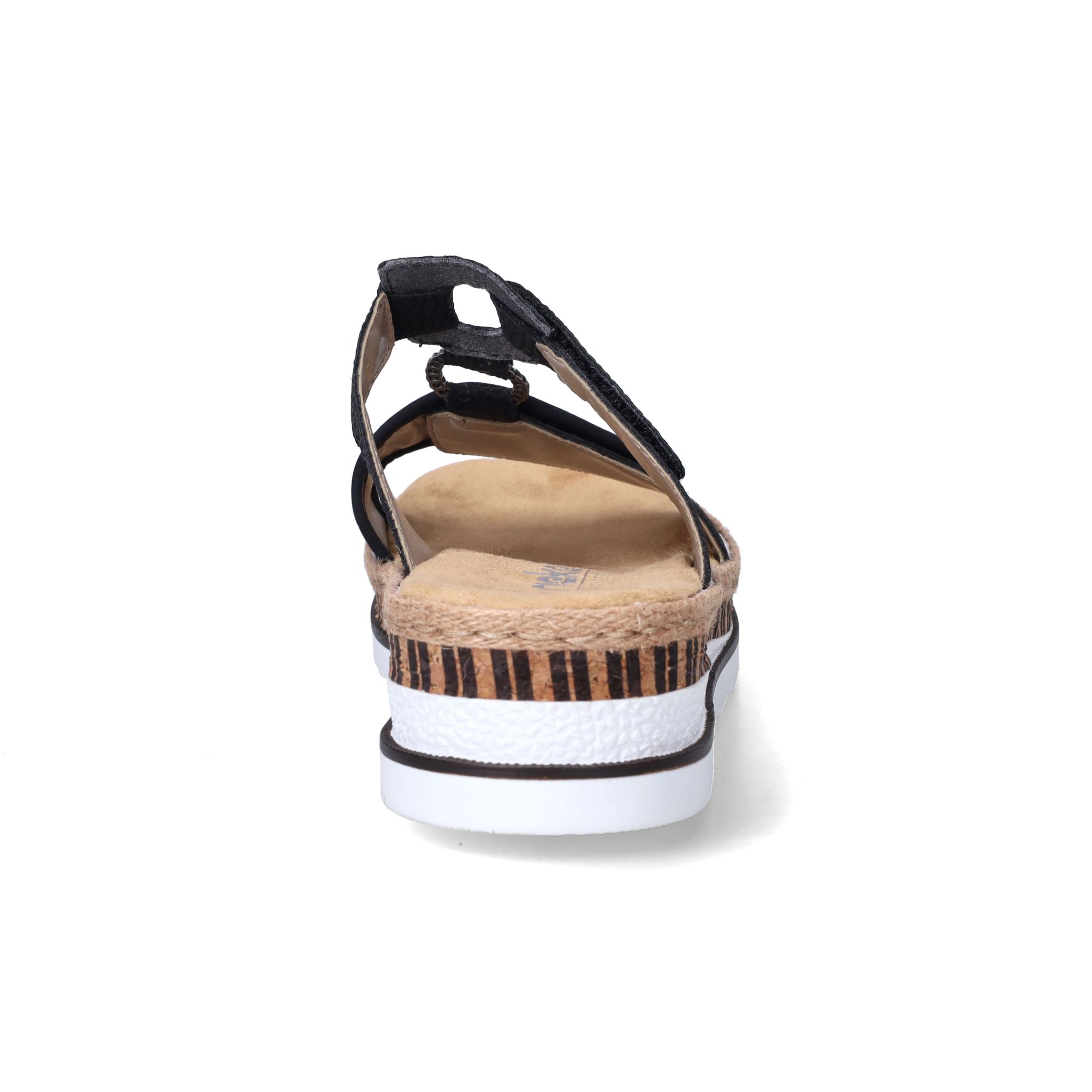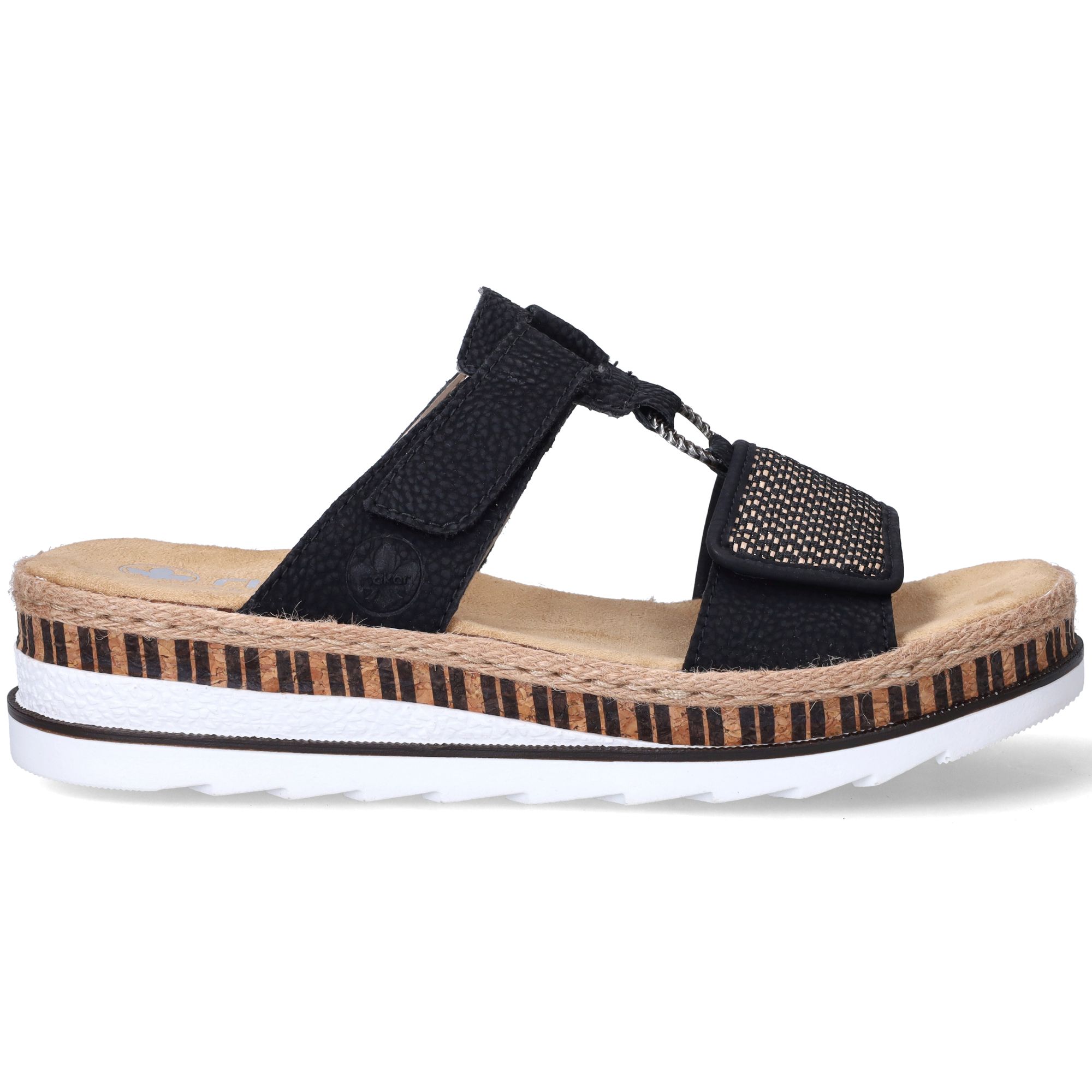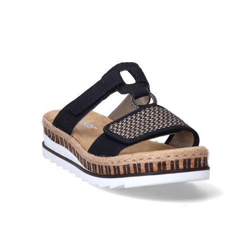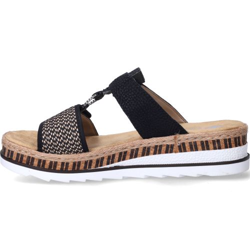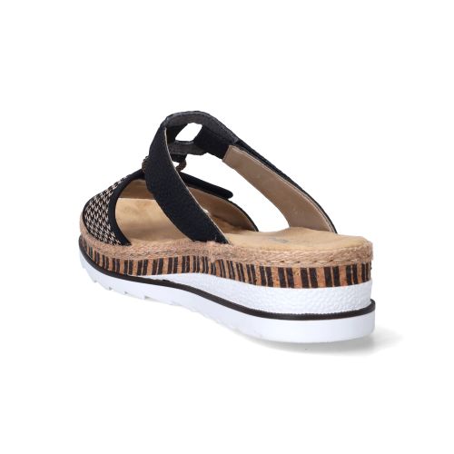 Deze zwarte dames slippers van Rieker combineren een elegante uitstraling met ongekend loopcomfort. De schoen heeft een tijdloos zwart design dat makkelijk te combineren is met verschillende outfits, van een zomerse jurk tot een casual broek. Je voelt direct de prettige pasvorm die de voet omsluit, terwijl de lichte demping zorgt voor een fijne ondersteuning bij elke stap. Dit maakt de slippers ideaal voor lange wandelingen of een dagje uit, waarbij je voeten de hele dag door ontspannen aanvoelen.