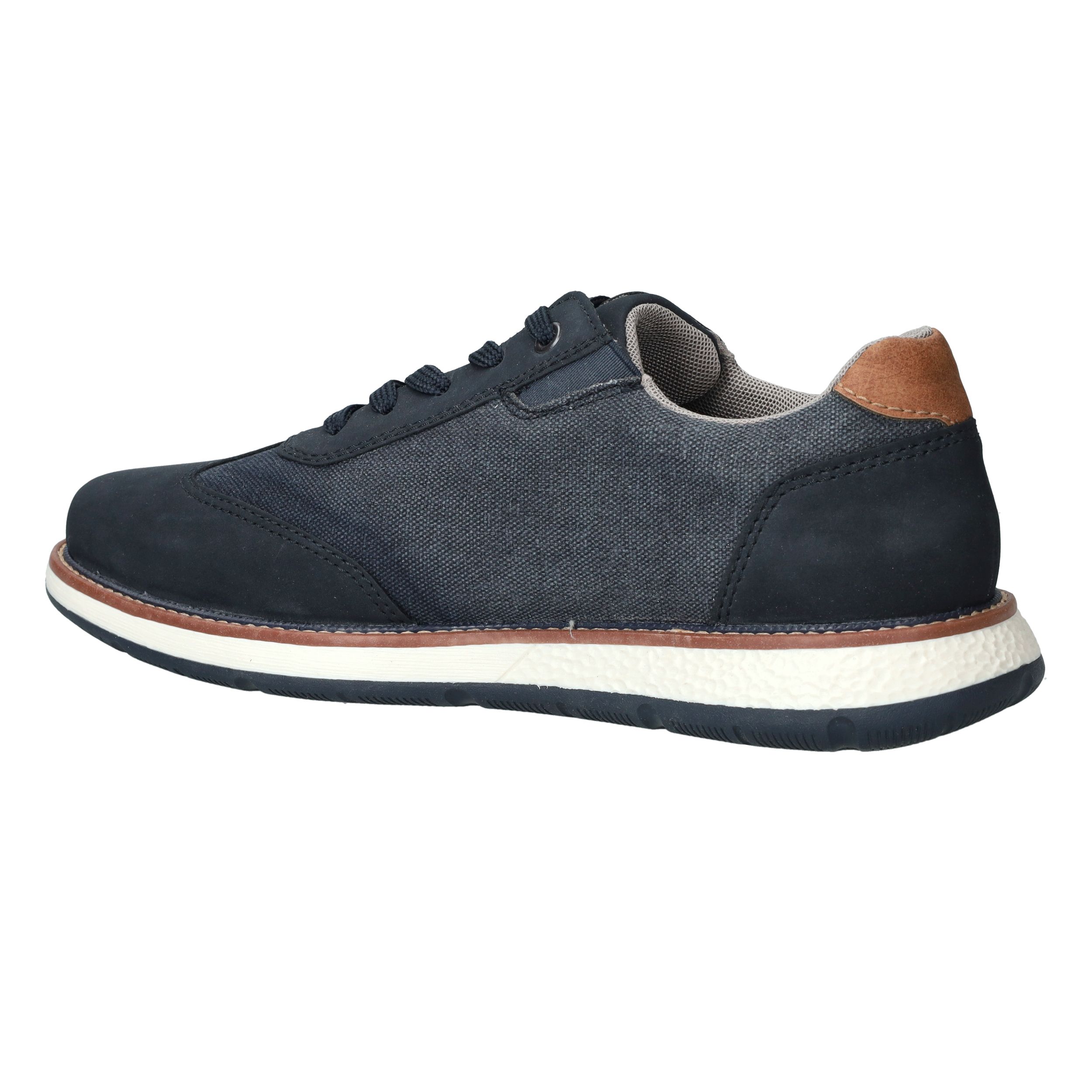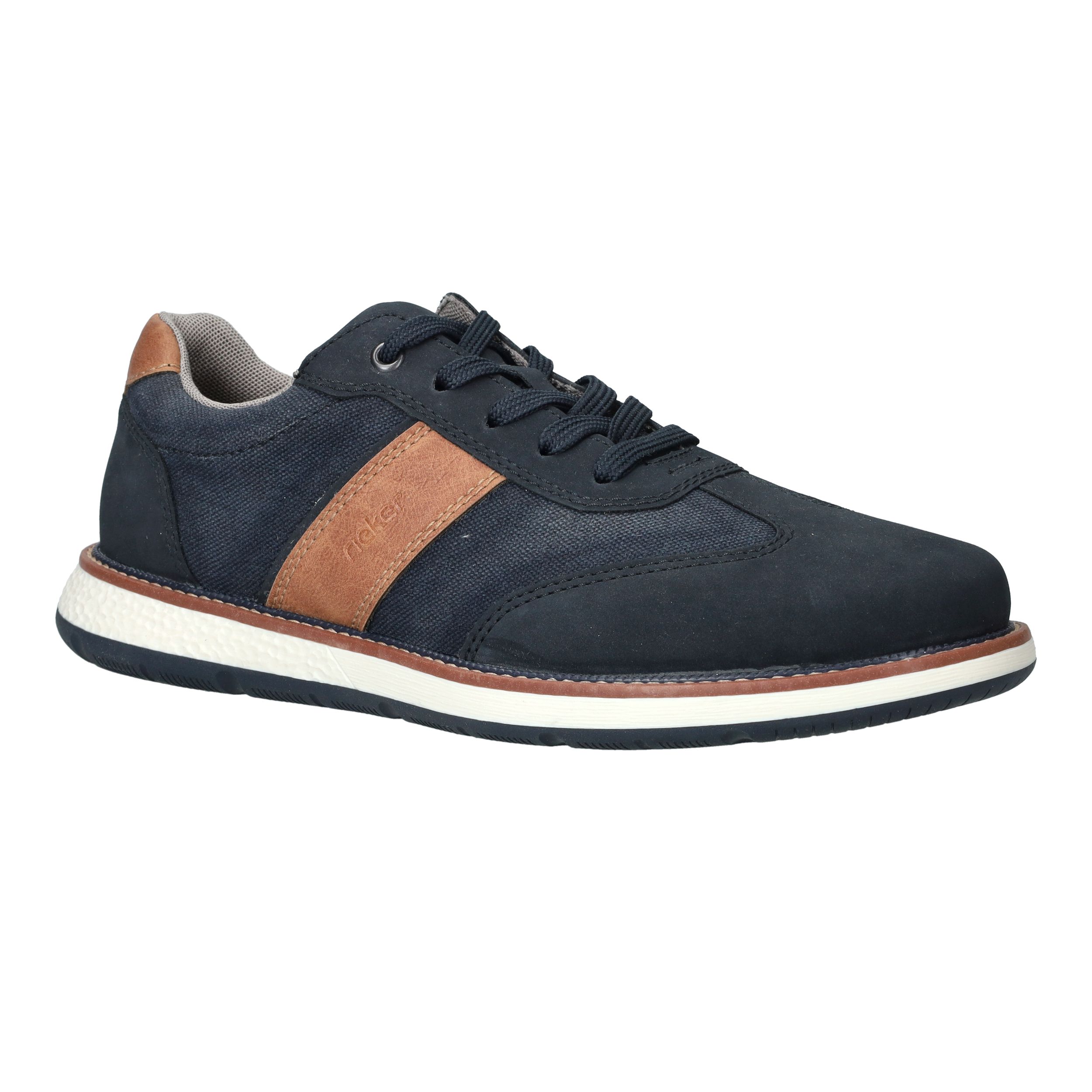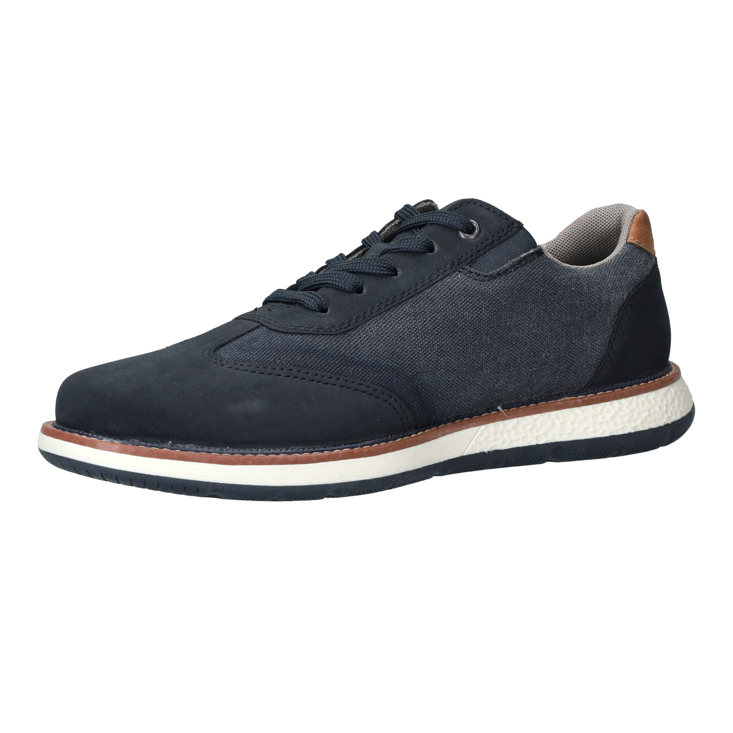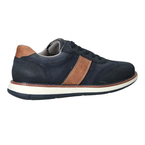 Sportieve veterschoen van Rieker in het blauw. De herenschoen heeft een casual look maar past ook bij een geklede outfit.