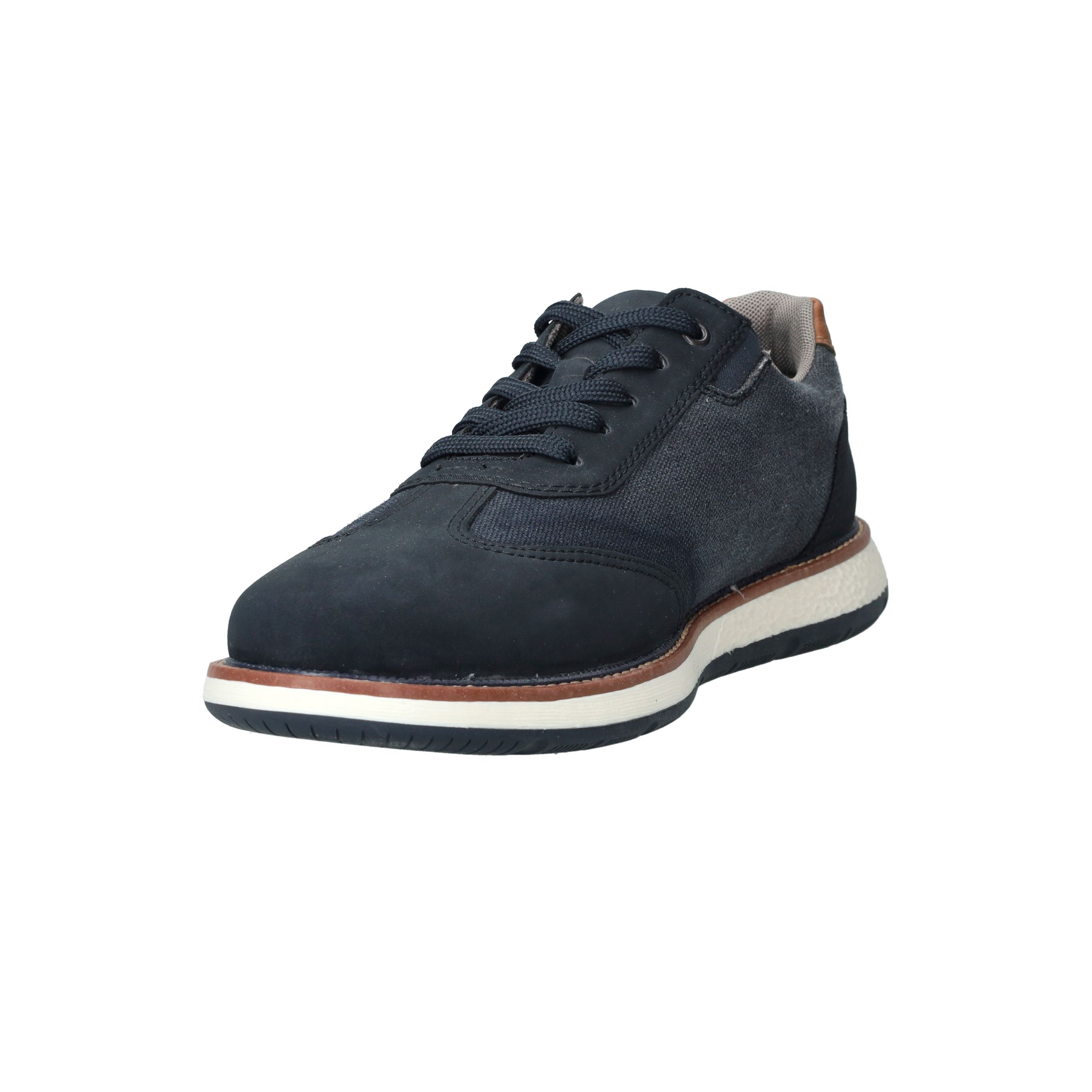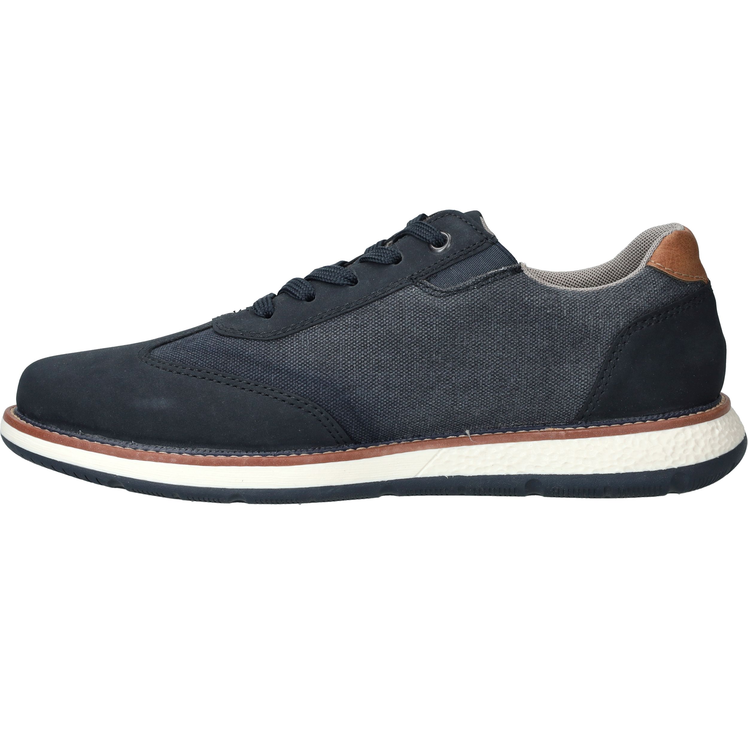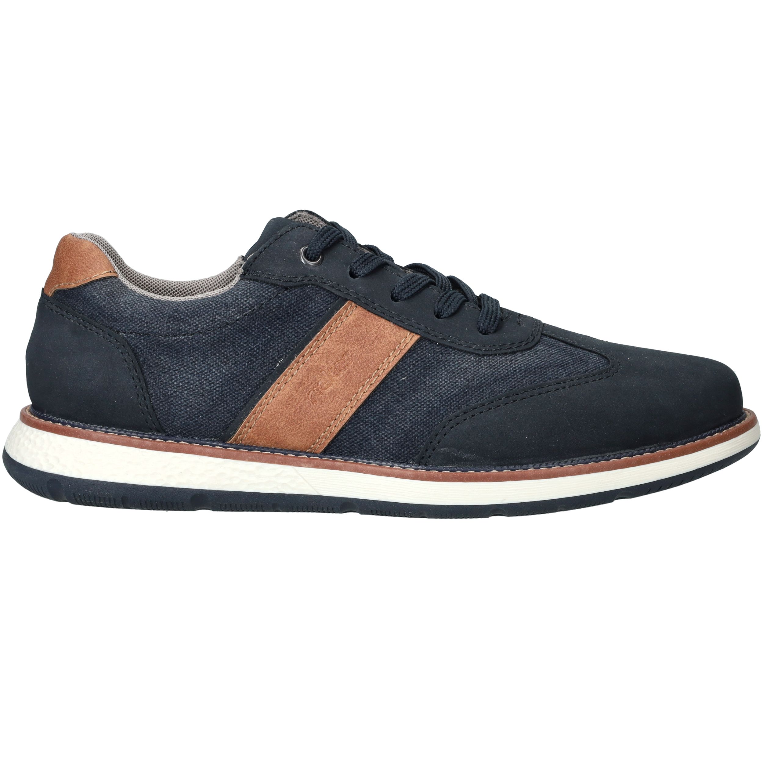 Sportieve veterschoen van Rieker in het blauw. De herenschoen heeft een casual look maar past ook bij een geklede outfit.