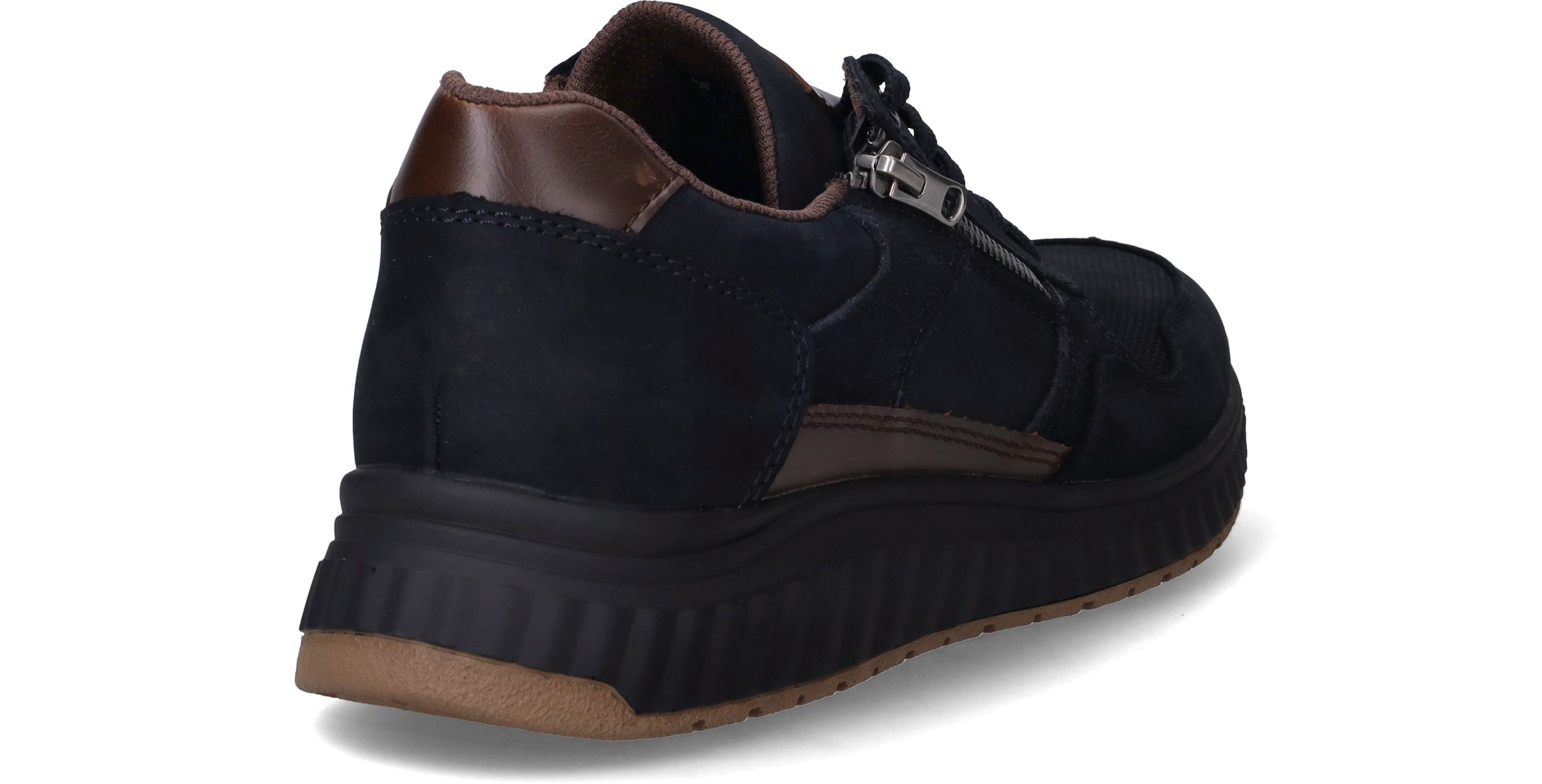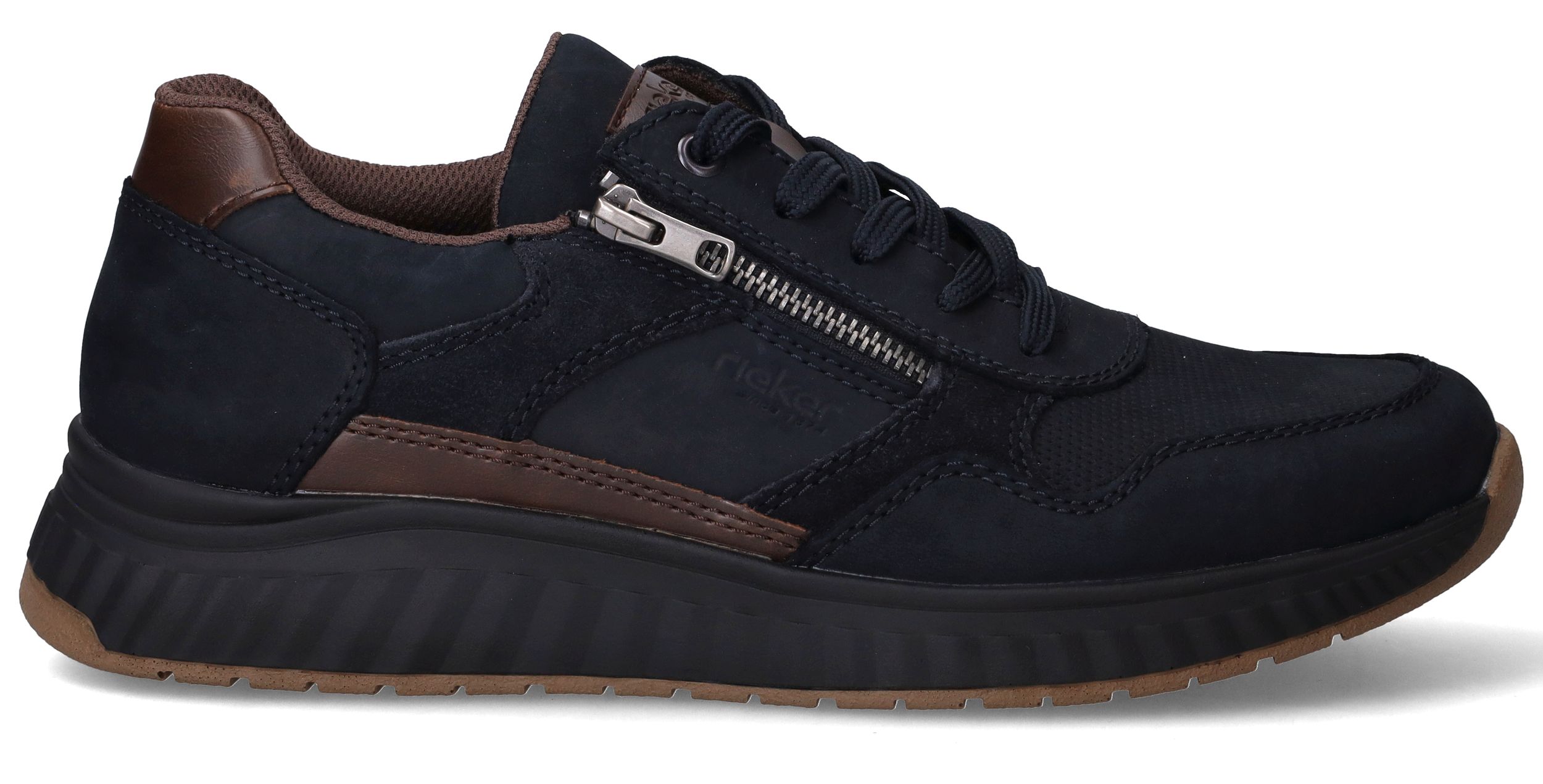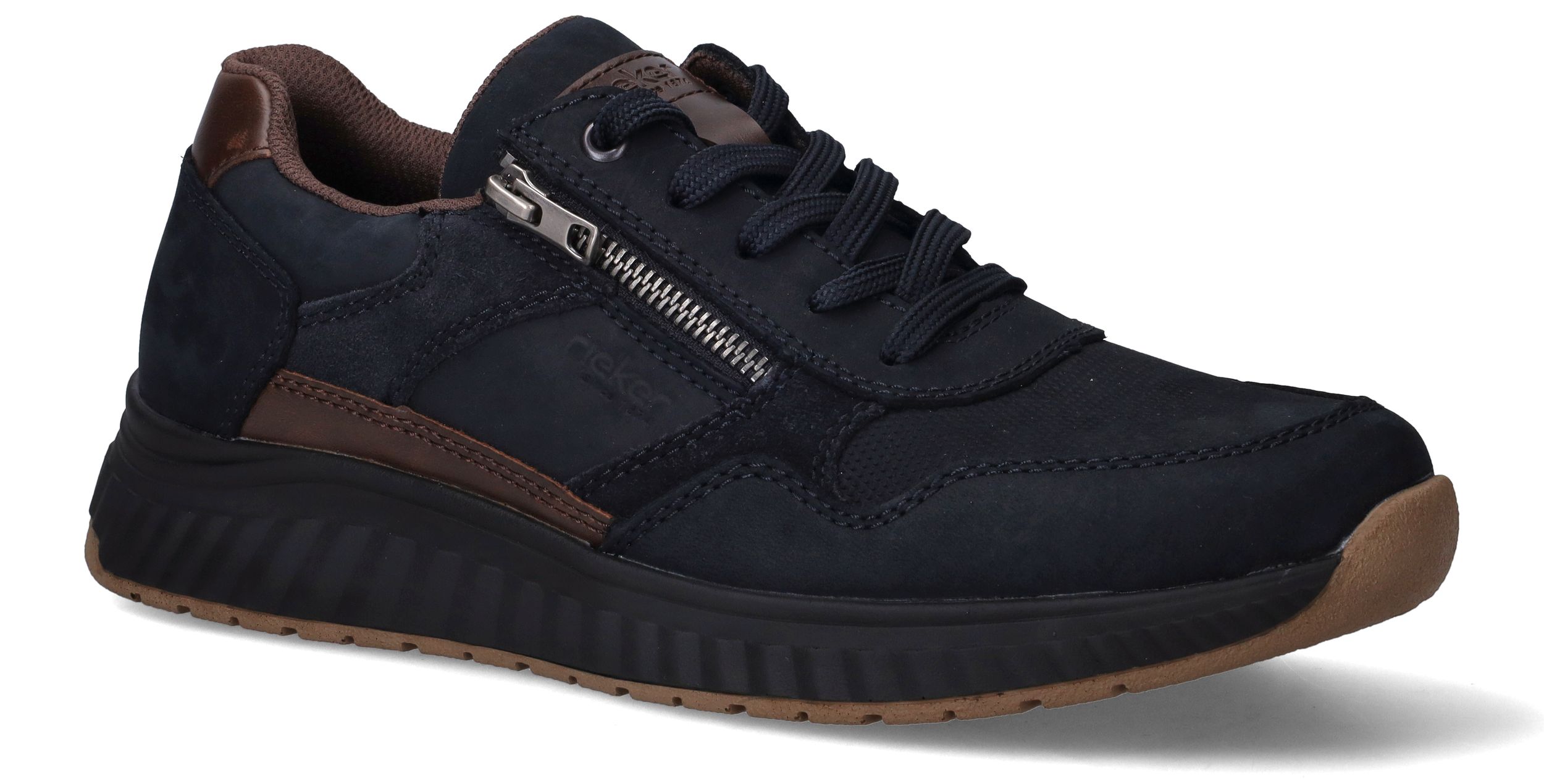 Deze donkerblauwe sneakers van Rieker combineren een sportieve look met uitzonderlijk comfort. Gemaakt van soepel leer en voorzien van een stevige zool, bieden ze precies wat je zoekt in een fijne alledaagse schoen. Dankzij de G 1/2 voetbreedte voelen ze niet alleen stevig aan, maar ook heerlijk ruim en comfortabel.