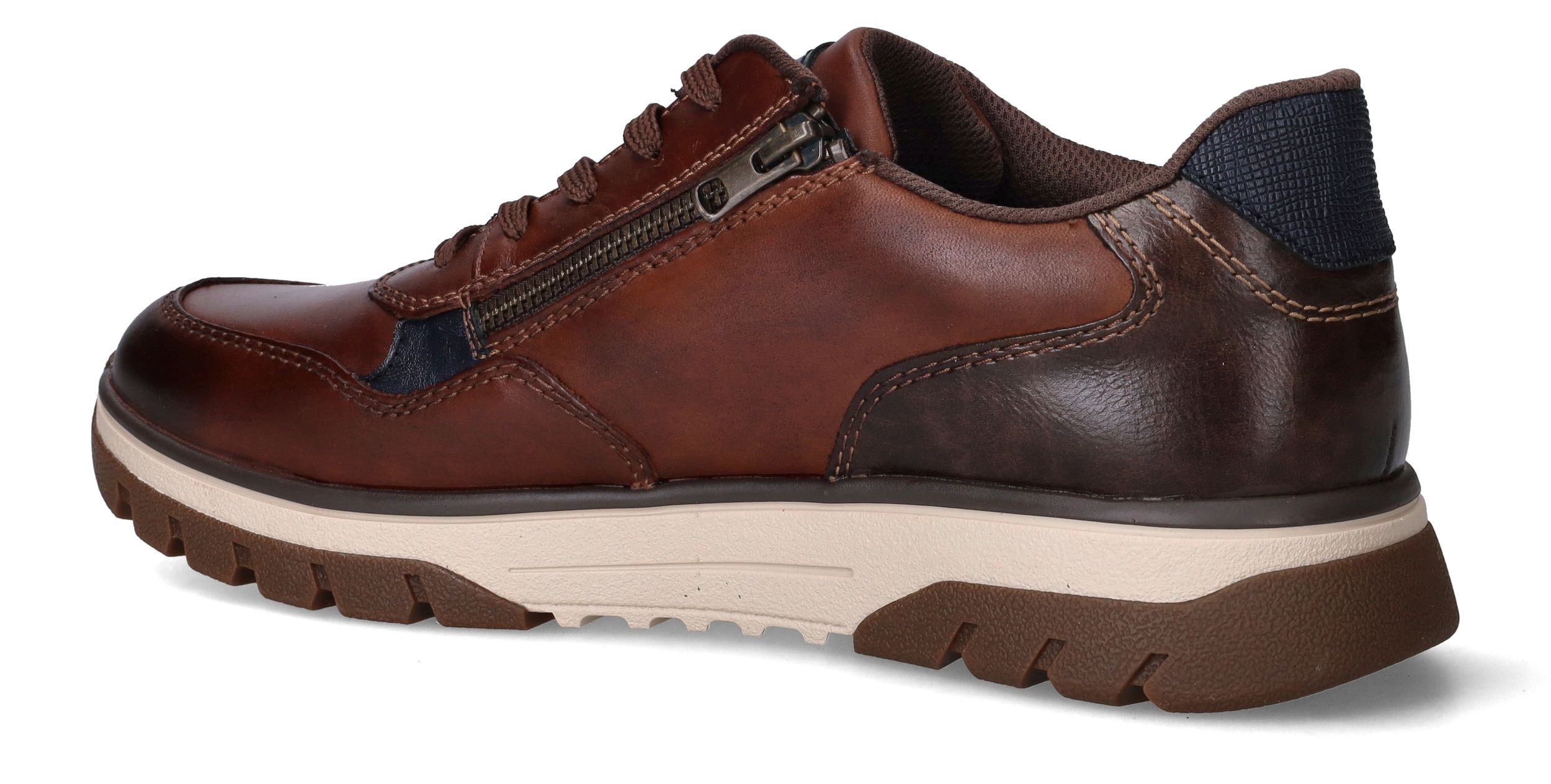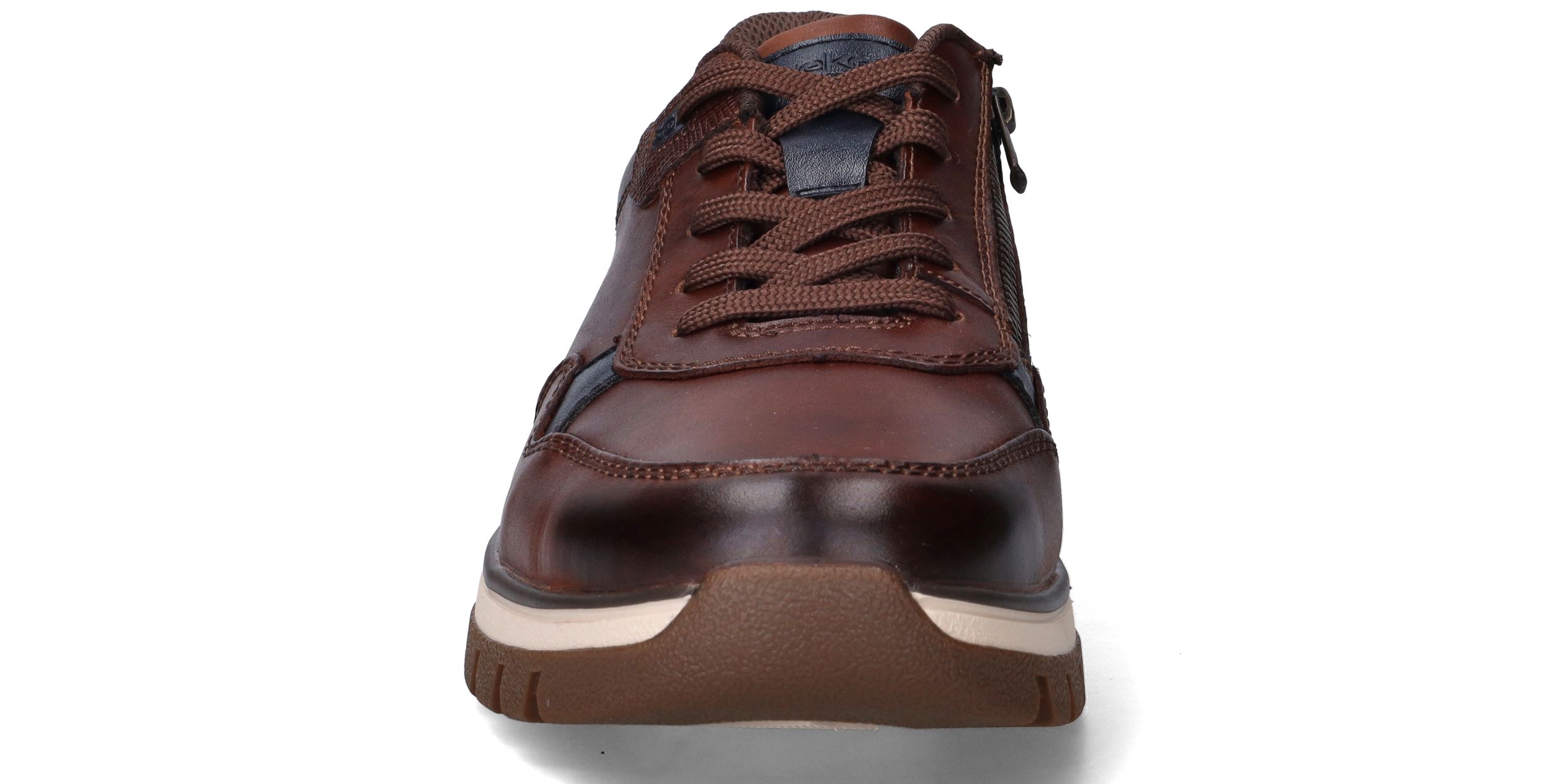Deze bruine Rieker sneakers voor heren bieden een perfecte mix van comfort en stijl. Dankzij het soepele leer voelt de schoen zacht aan en past hij zich moeiteloos aan je voet aan. De stevige zool biedt goede ondersteuning voor dagelijks gebruik, en de warme bruine kleur is ideaal voor zowel casual als nette outfits. De H-wijdte geeft nét dat beetje extra ruimte voor optimaal draagcomfort.