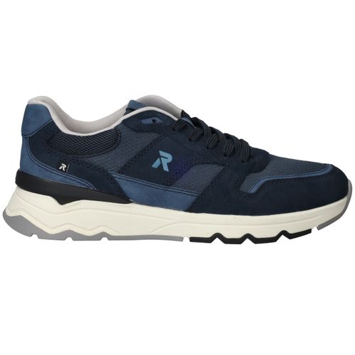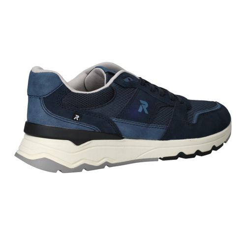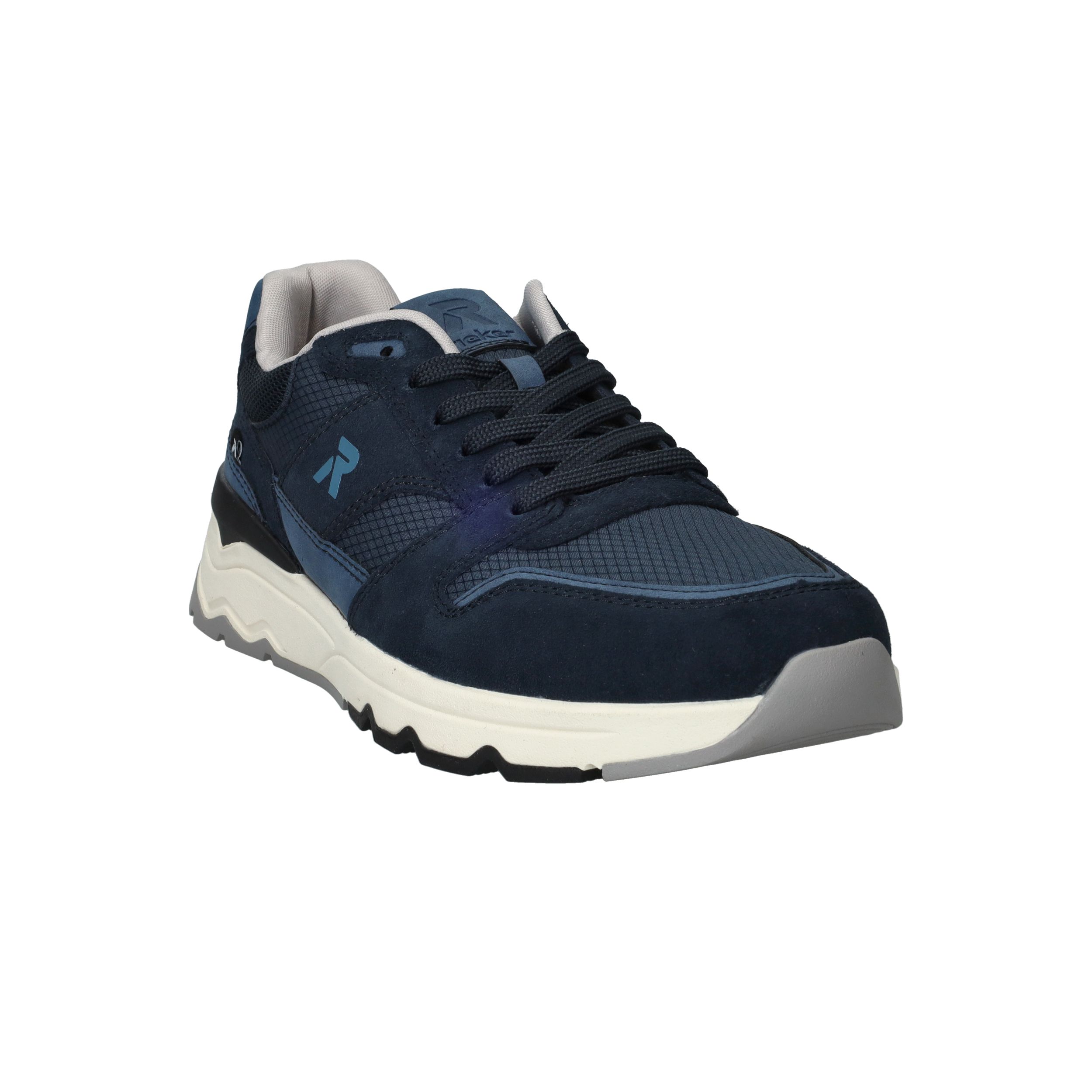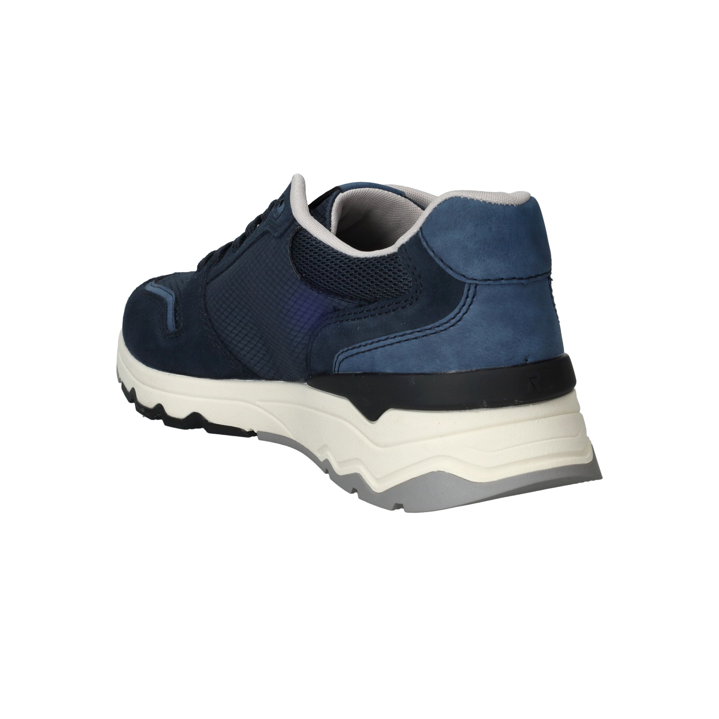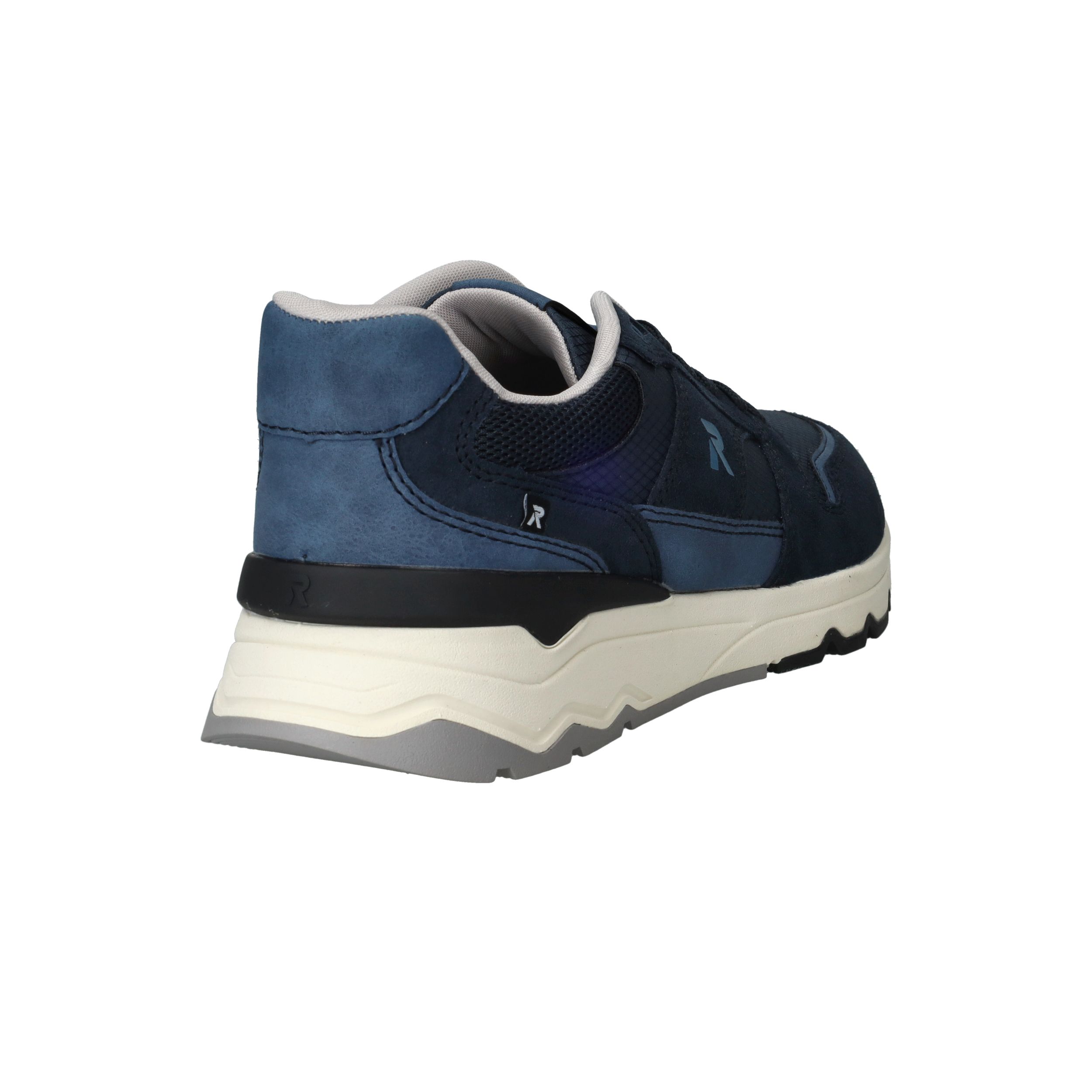 Hippe blauwe Rieker Evolution sneaker voor heren. De sportieve herensneaker past perfect bij een jeans.