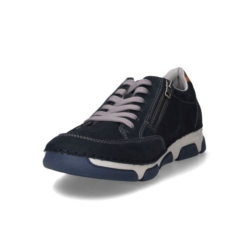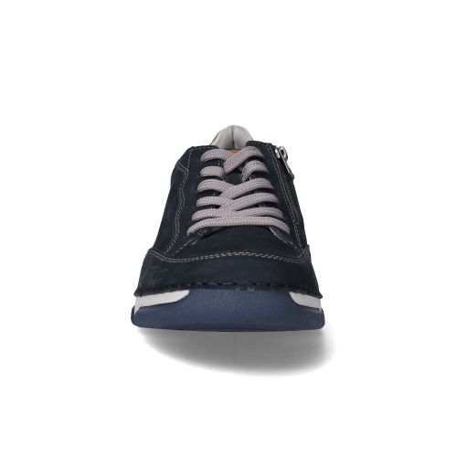 Deze blauwe veterschoenen van Rieker zijn een fijne aanwinst voor de moderne man die waarde hecht aan comfort en een nette uitstraling. De schoen heeft een kalme blauwe kleur die veelzijdig combineert en een tijdloze stijl biedt. Het nubuck materiaal voelt zacht aan en geeft de schoen een mooie, subtiele textuur. Tijdens het lopen en staan ervaar je een prettige demping, waardoor de impact op je voeten en gewrichten wordt verzacht en je de hele dag comfortabel kunt bewegen.
