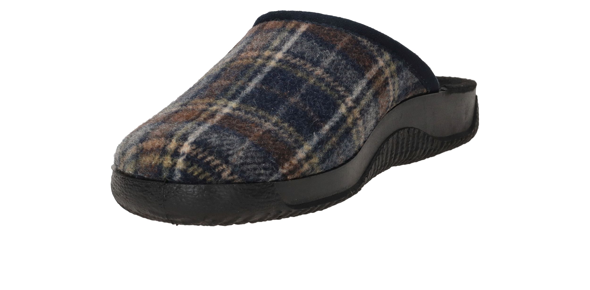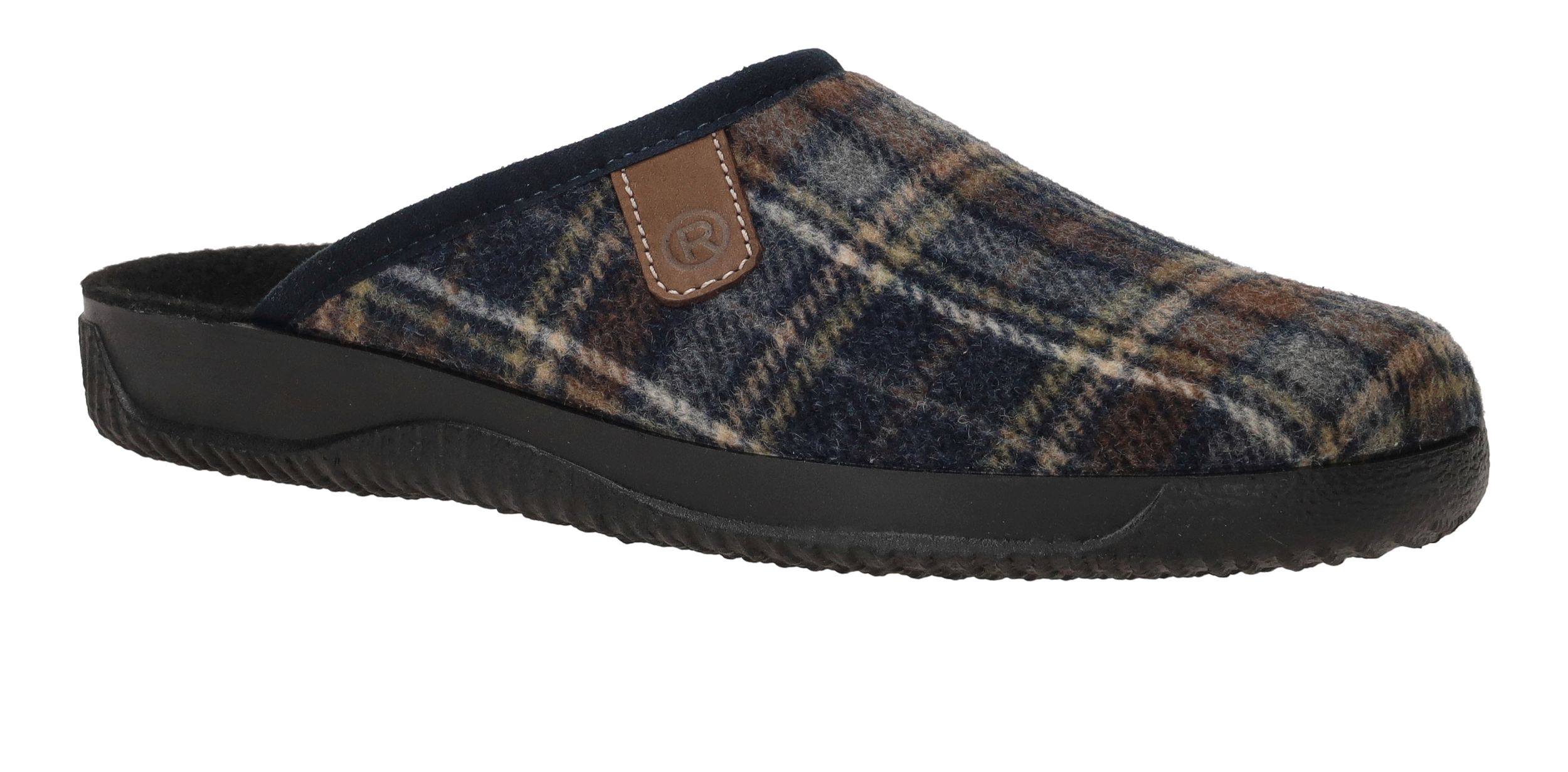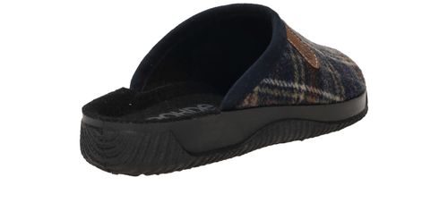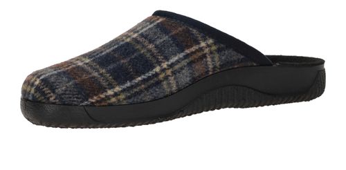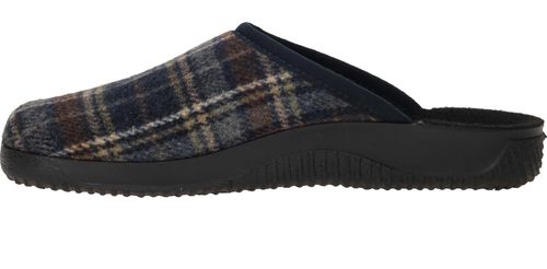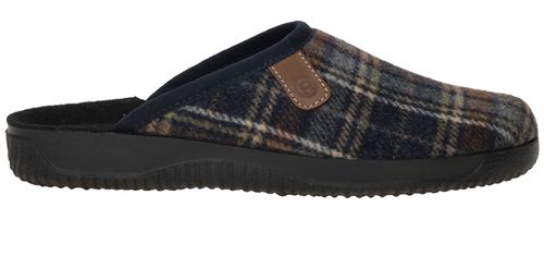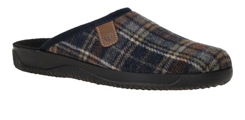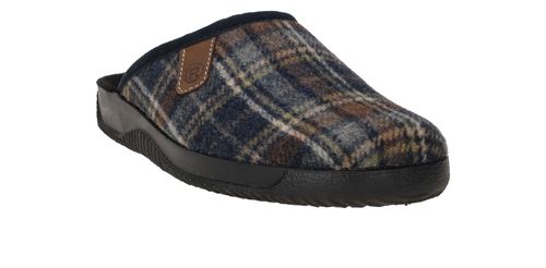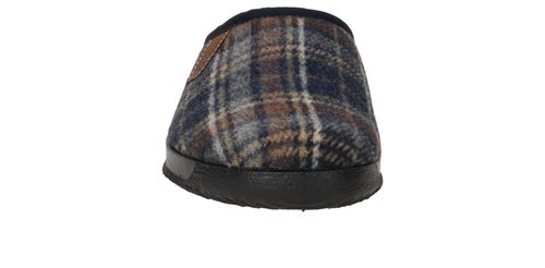 Mooie Rohde pantoffel voor heren met blauw ruiten patroon.