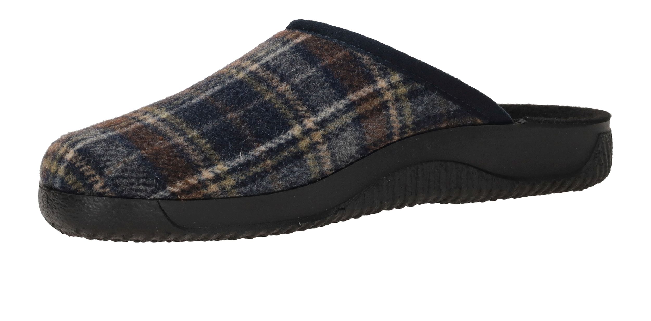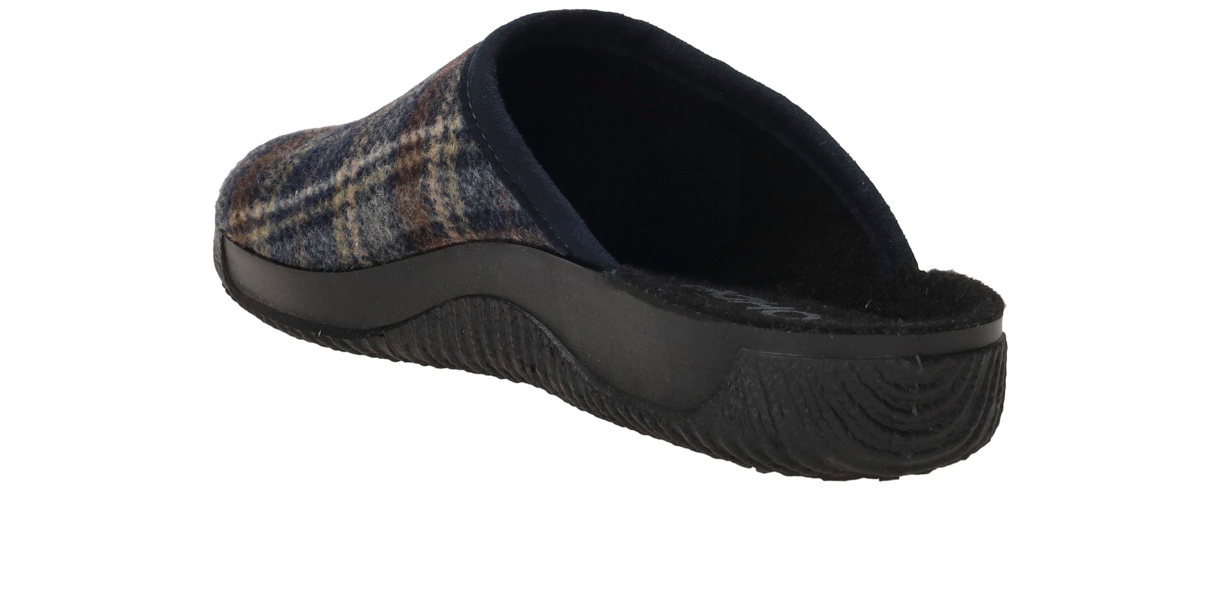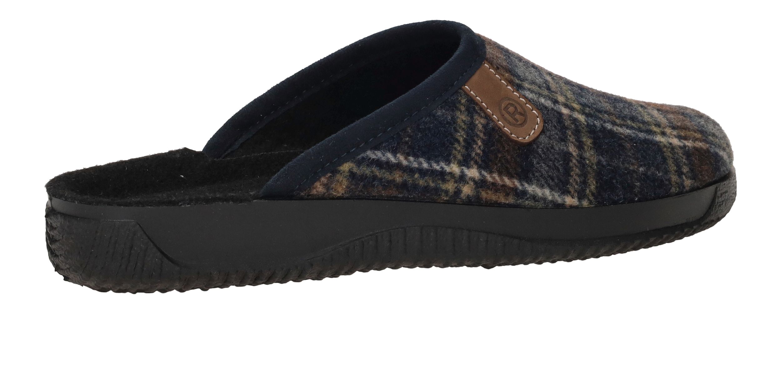 Mooie Rohde pantoffel voor heren met blauw ruiten patroon.