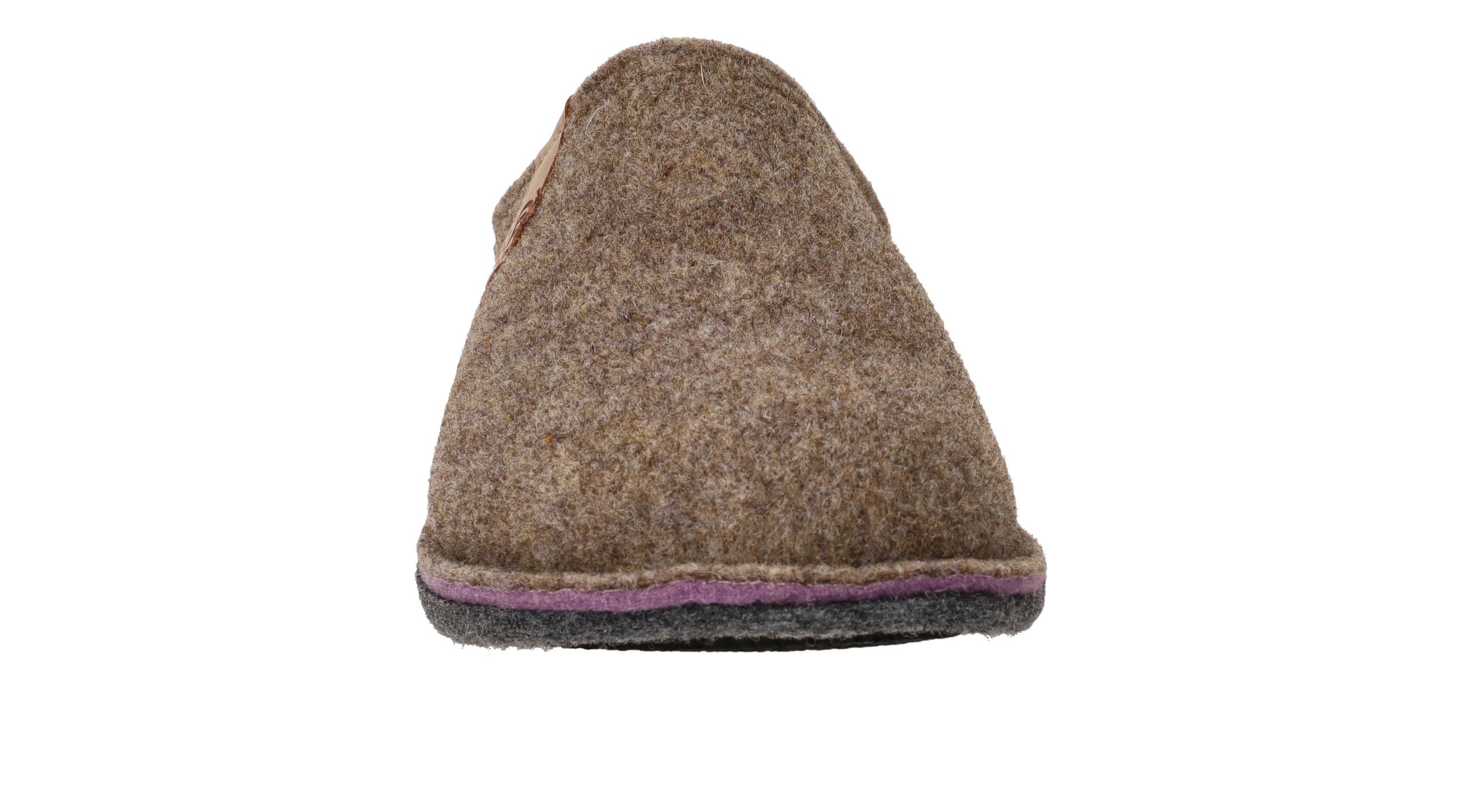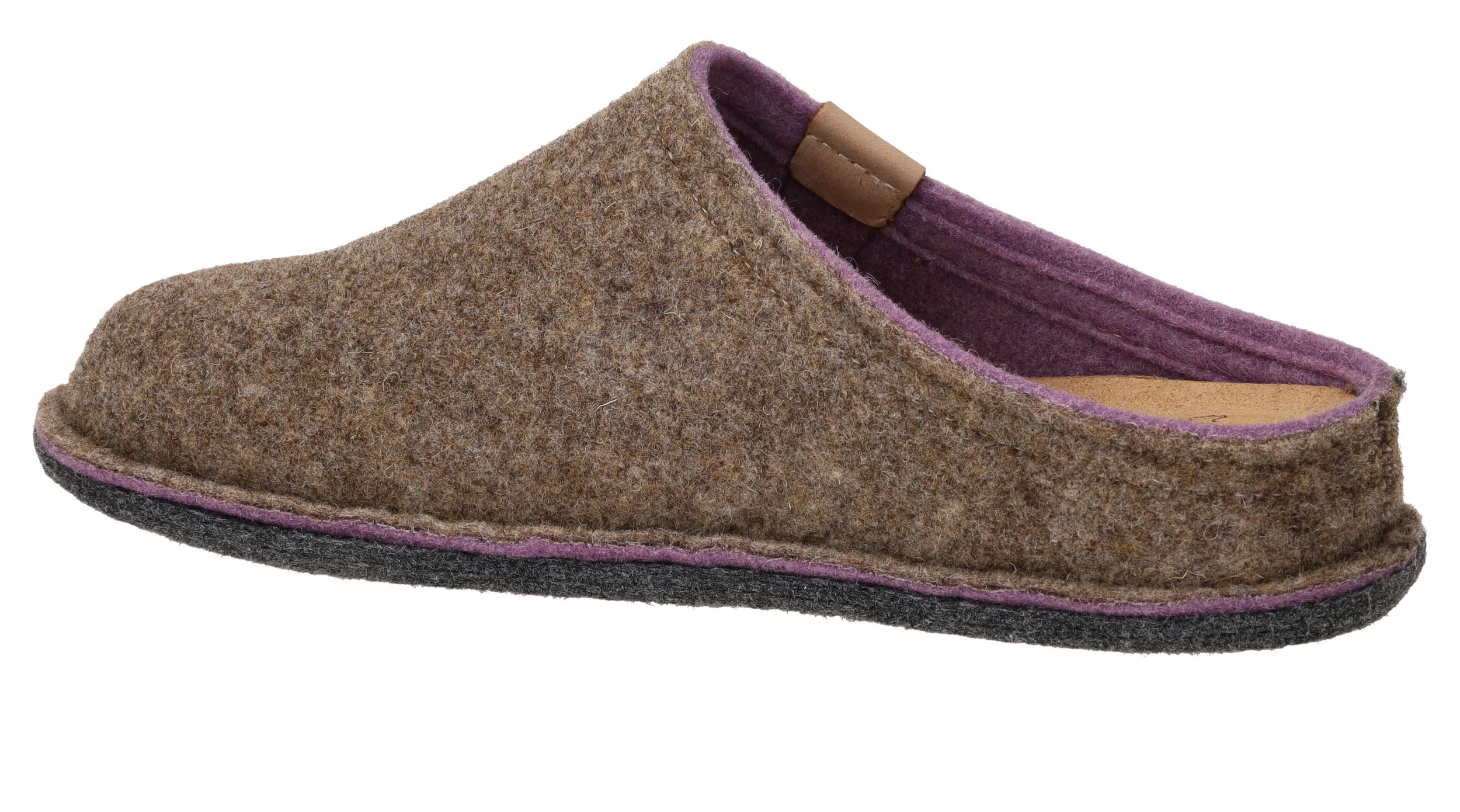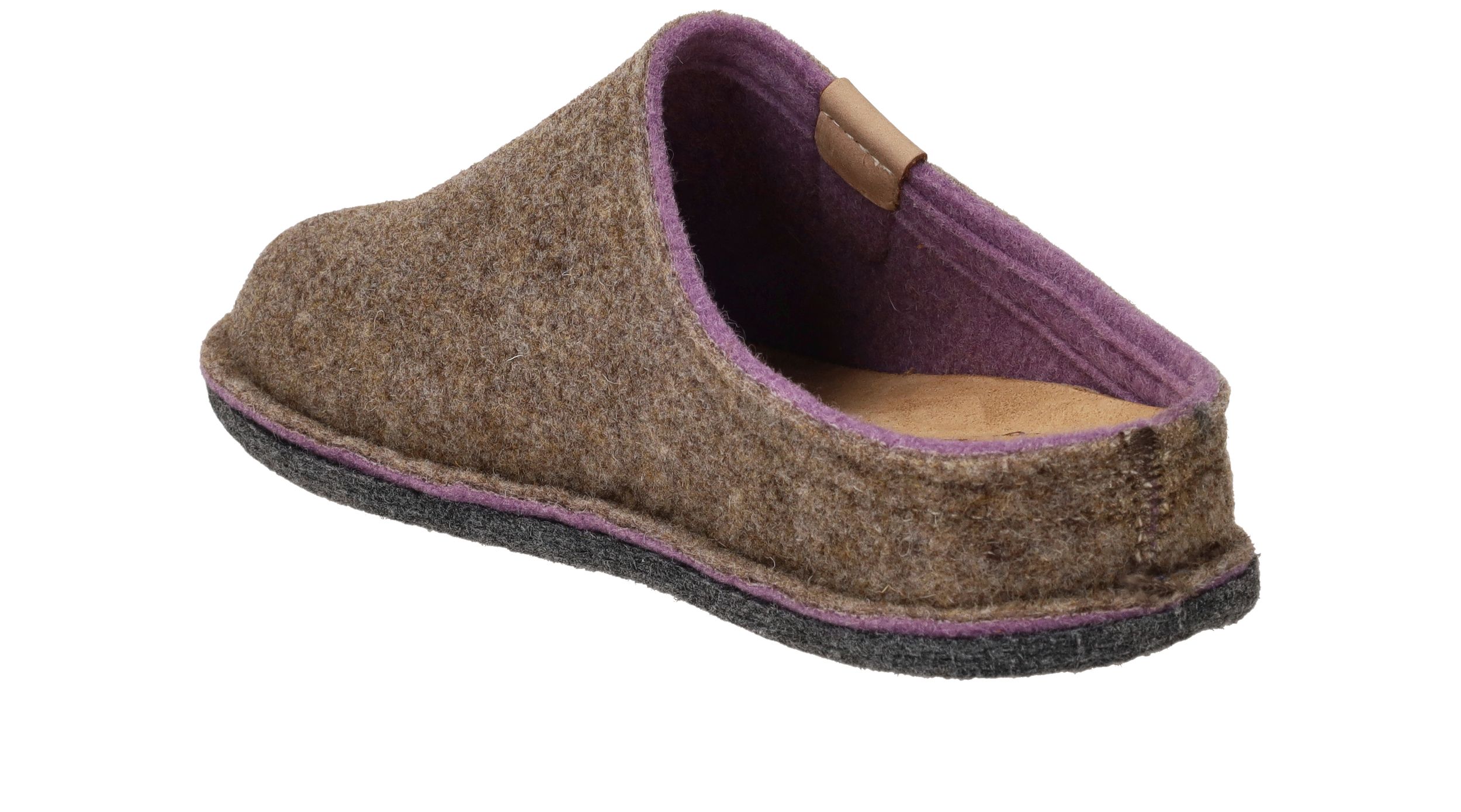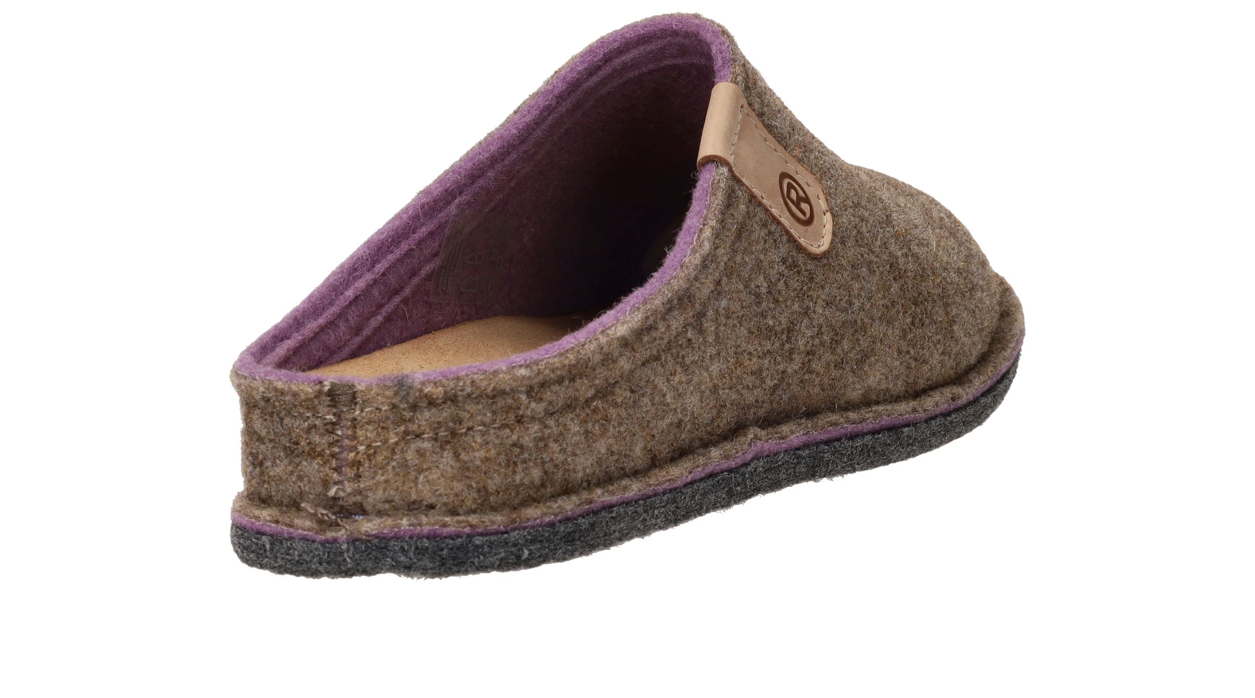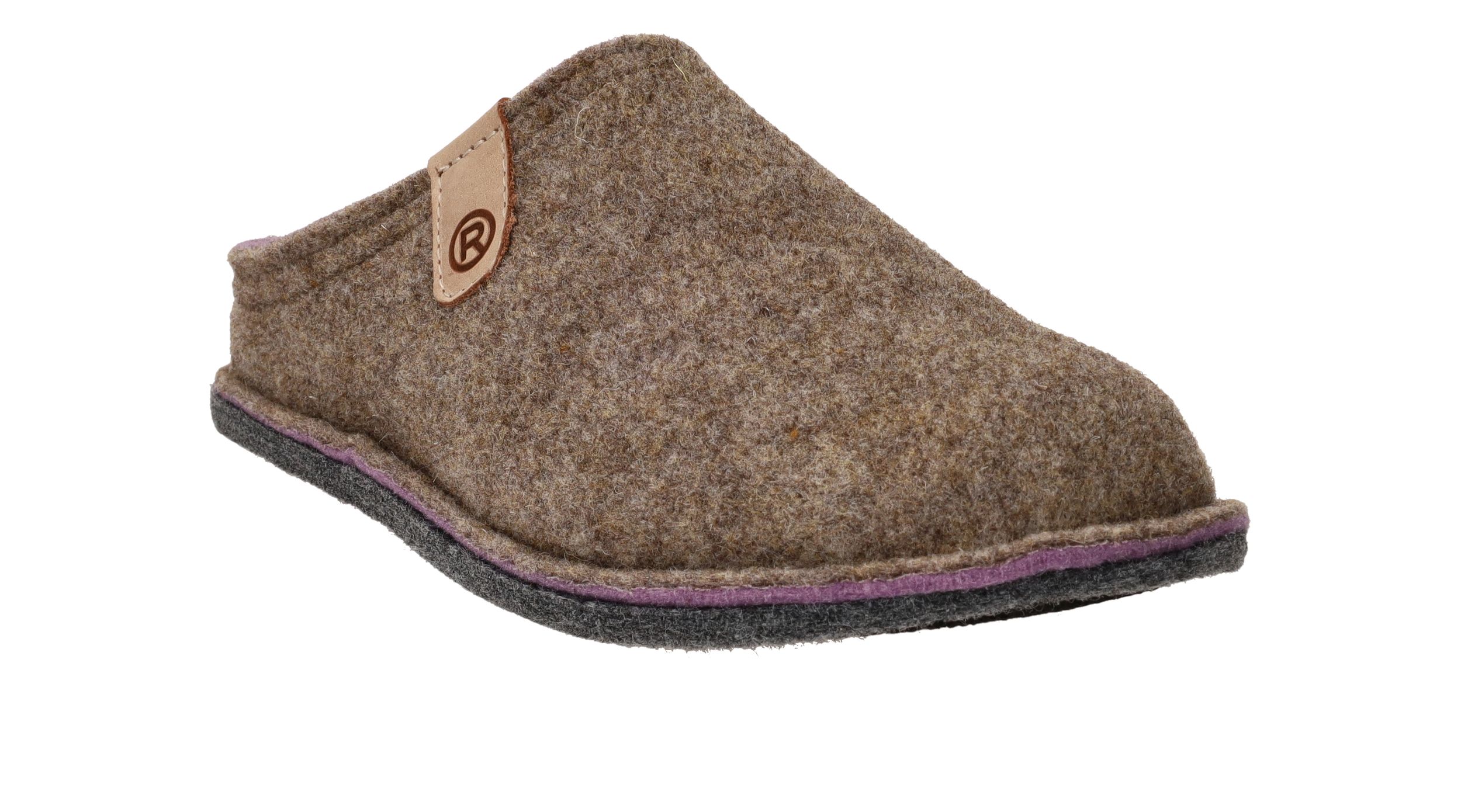 Fijne Rohde muil in het beige met vrolijke lila details. De muil heeft een uitneembaar voetbed gemaakt van leer en de zool is voorzien van een antislip laag.